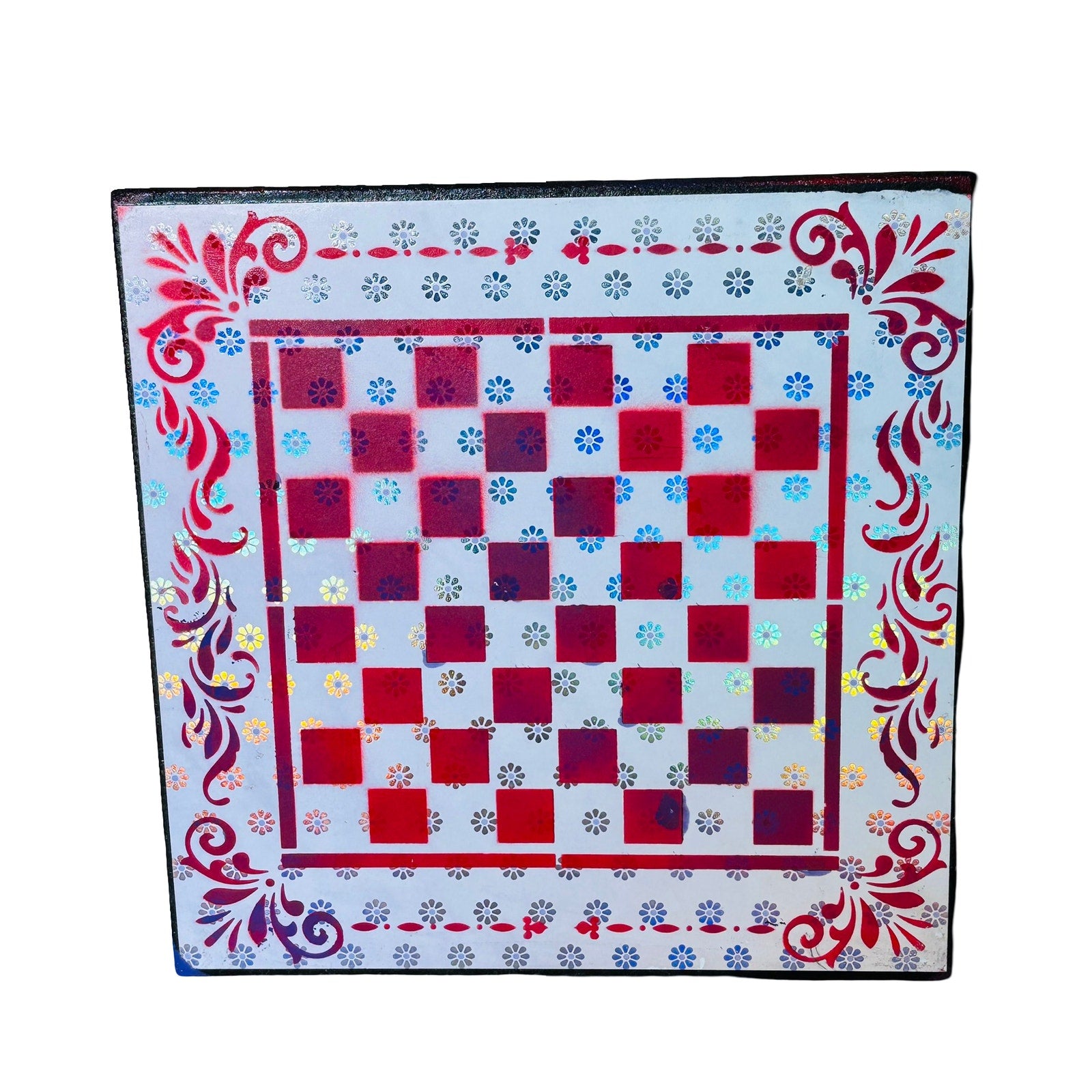 Red Chrome Flowers - Scrapbook Chess Board