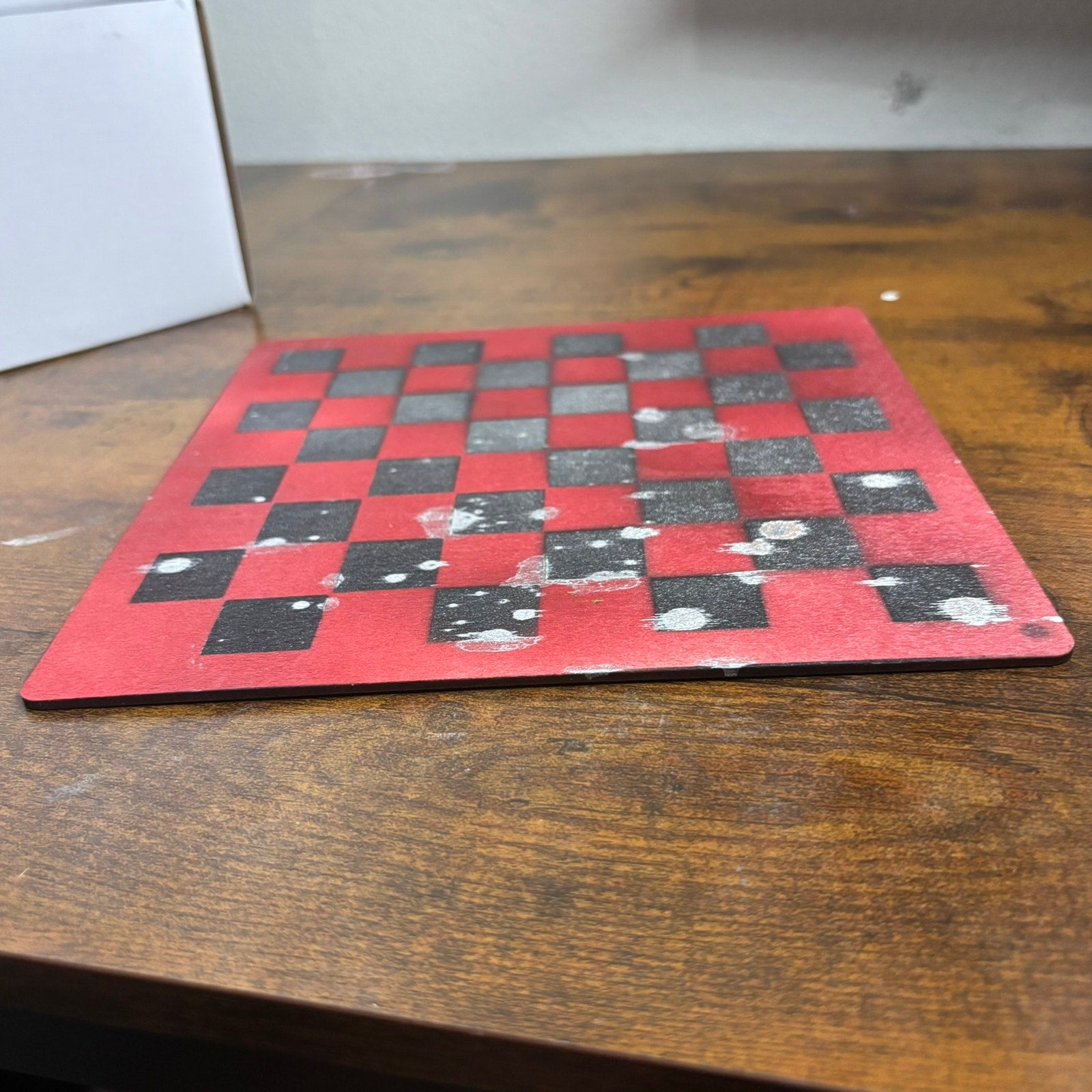 Red Chrome Silver - Painted Thin Wooden Chess Board