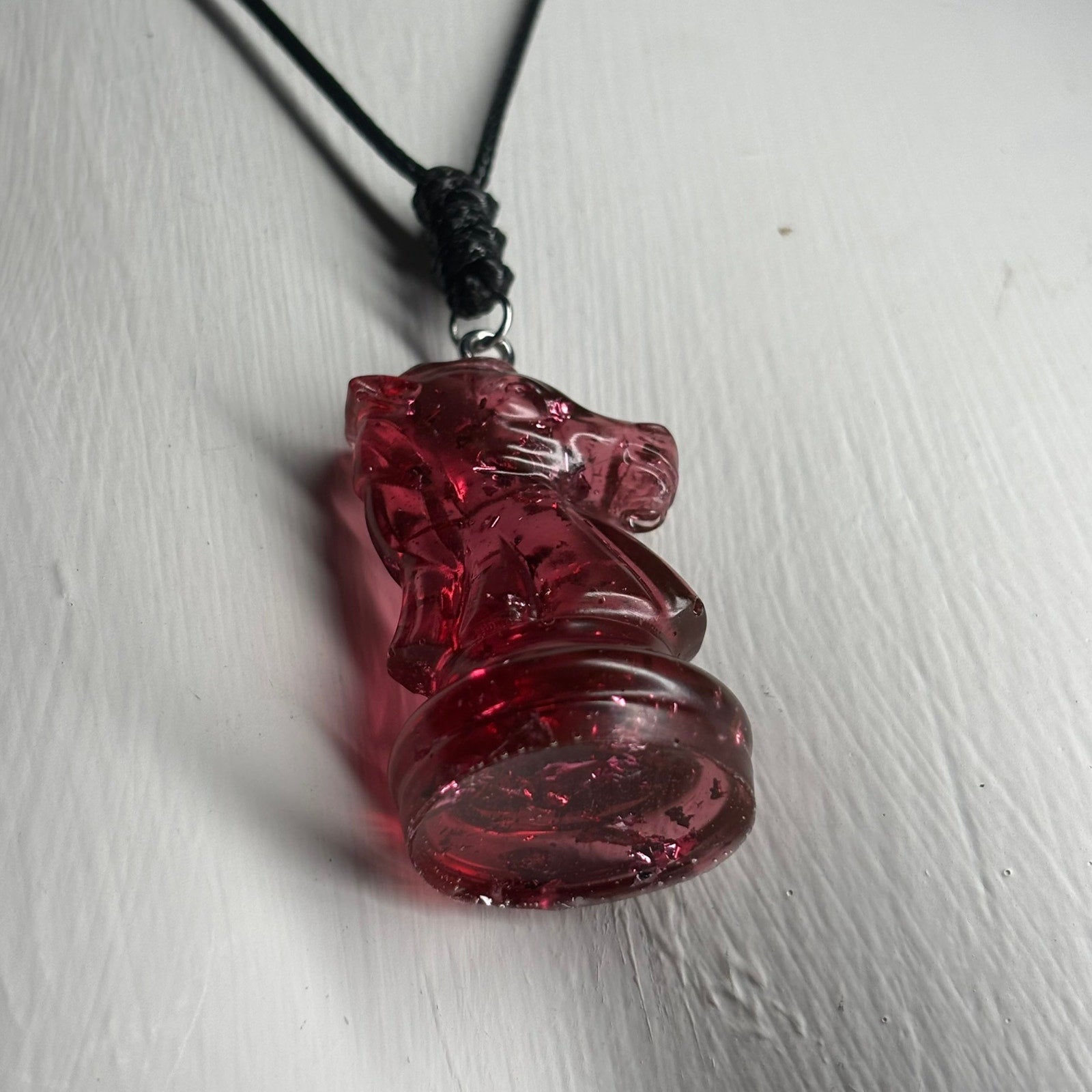 Red Crystal Knight - Handmade Resin Chess Necklace