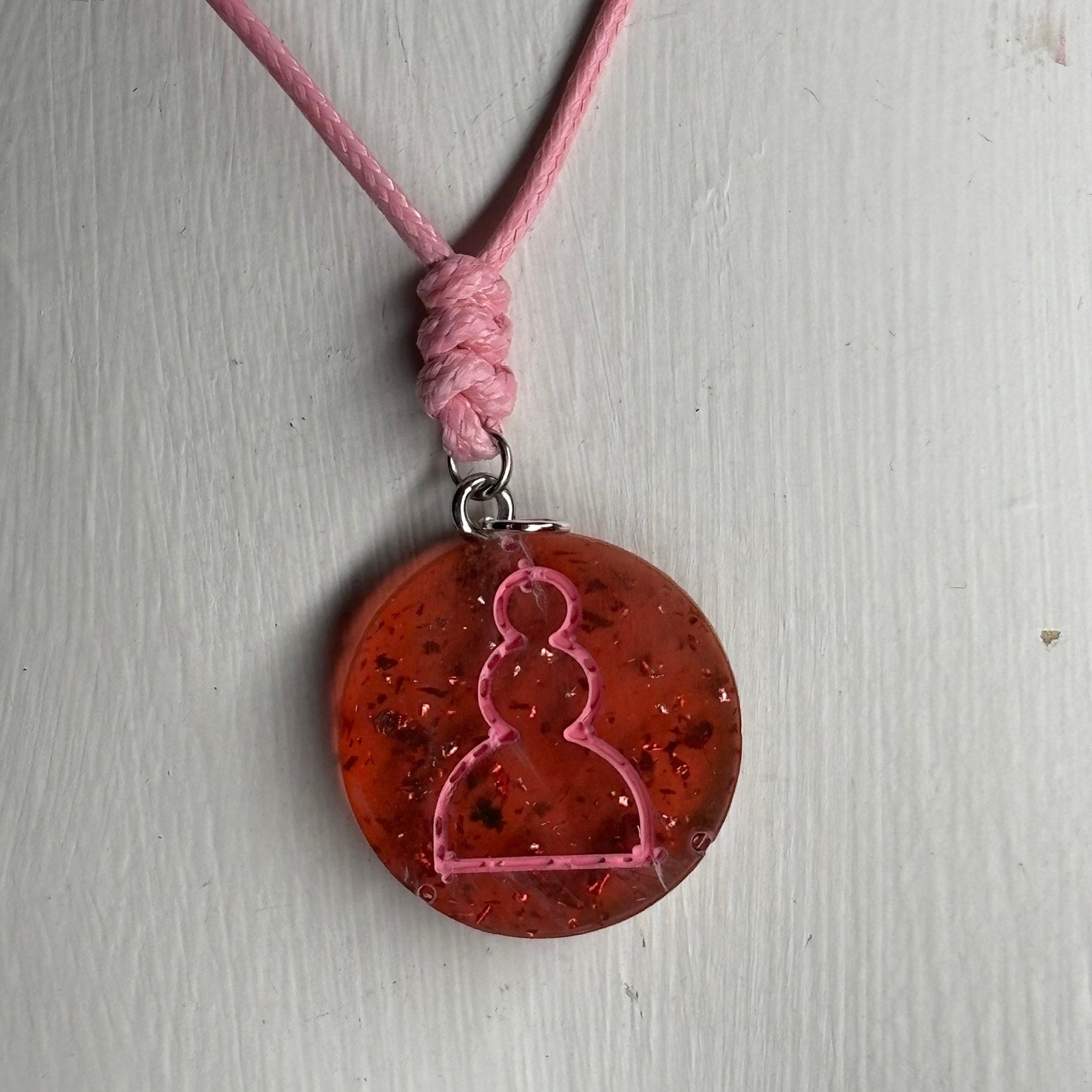 Red Crystal Pawn - Handmade Resin Chess Necklace