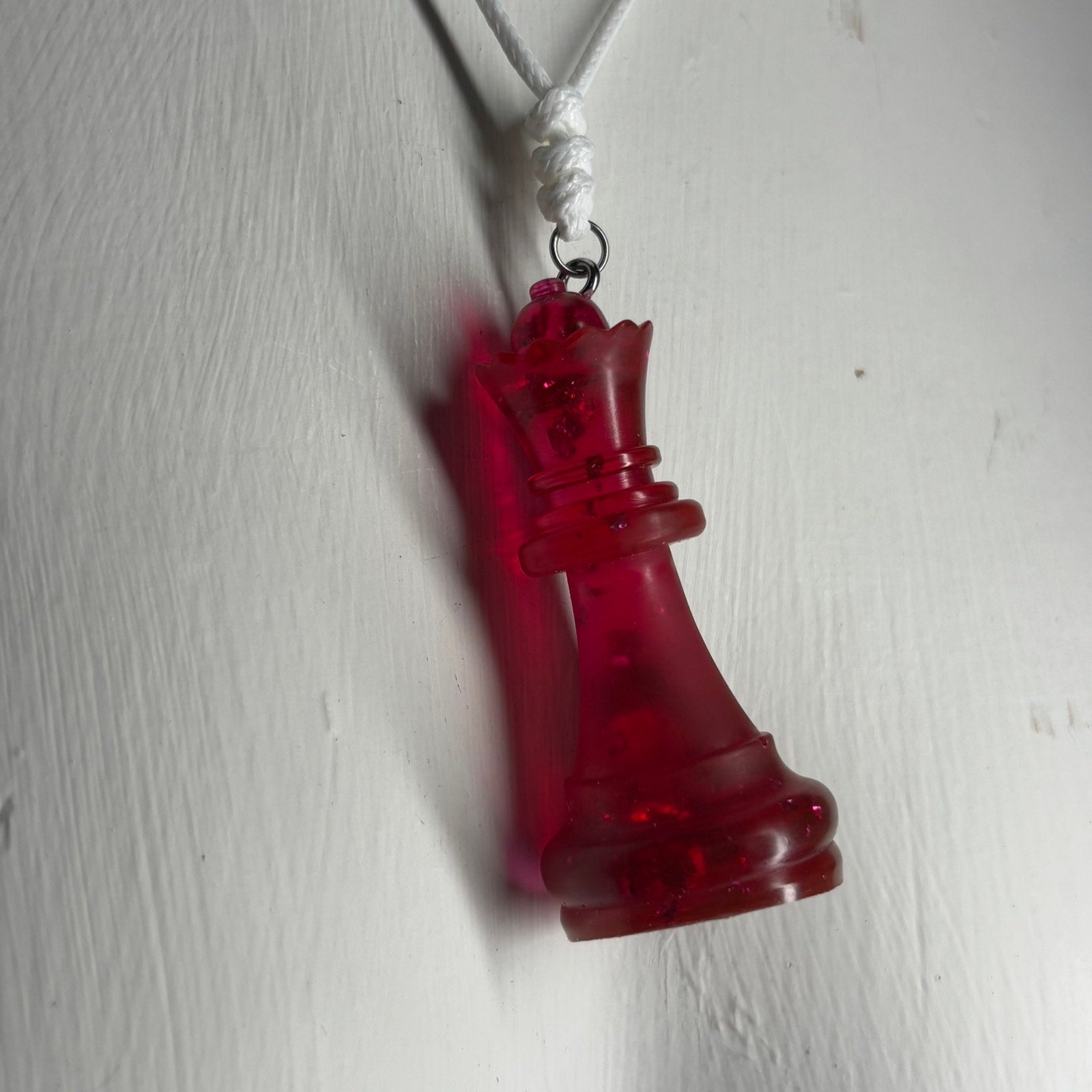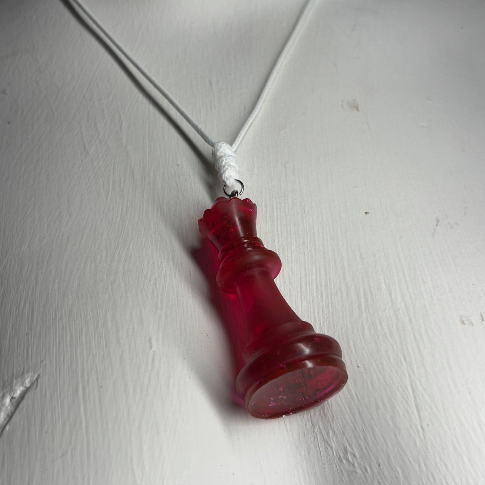 Red Crystal Queen - Handmade Resin Chess Necklace