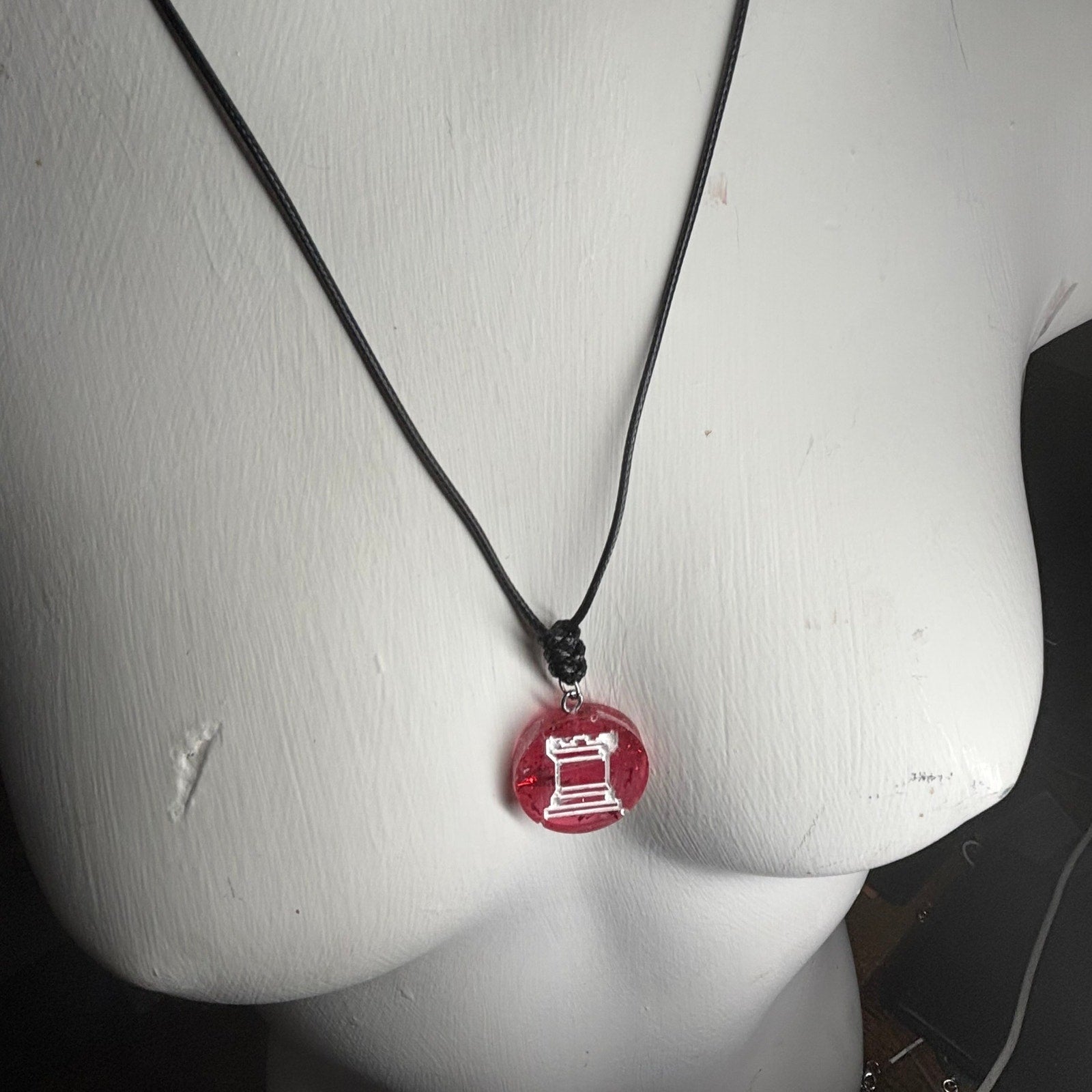 Red Crystal Rook - Handmade Resin Chess Necklace