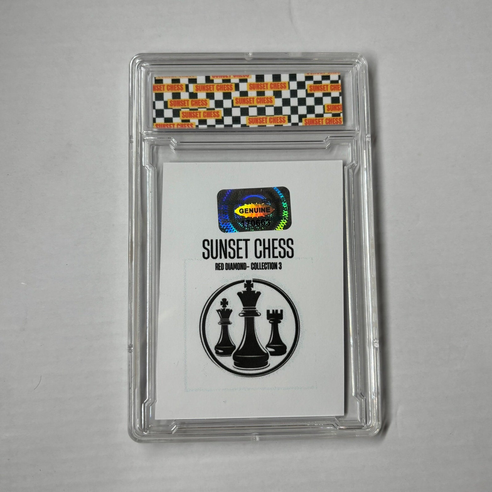 This card is chess-themed, making it a great addition for chess enthusiasts and collectors alike. With over 10,000 cards in the series, finding the perfectly cut card is part of the fun. Start your collection today and enjoy the thrill of the hunt!