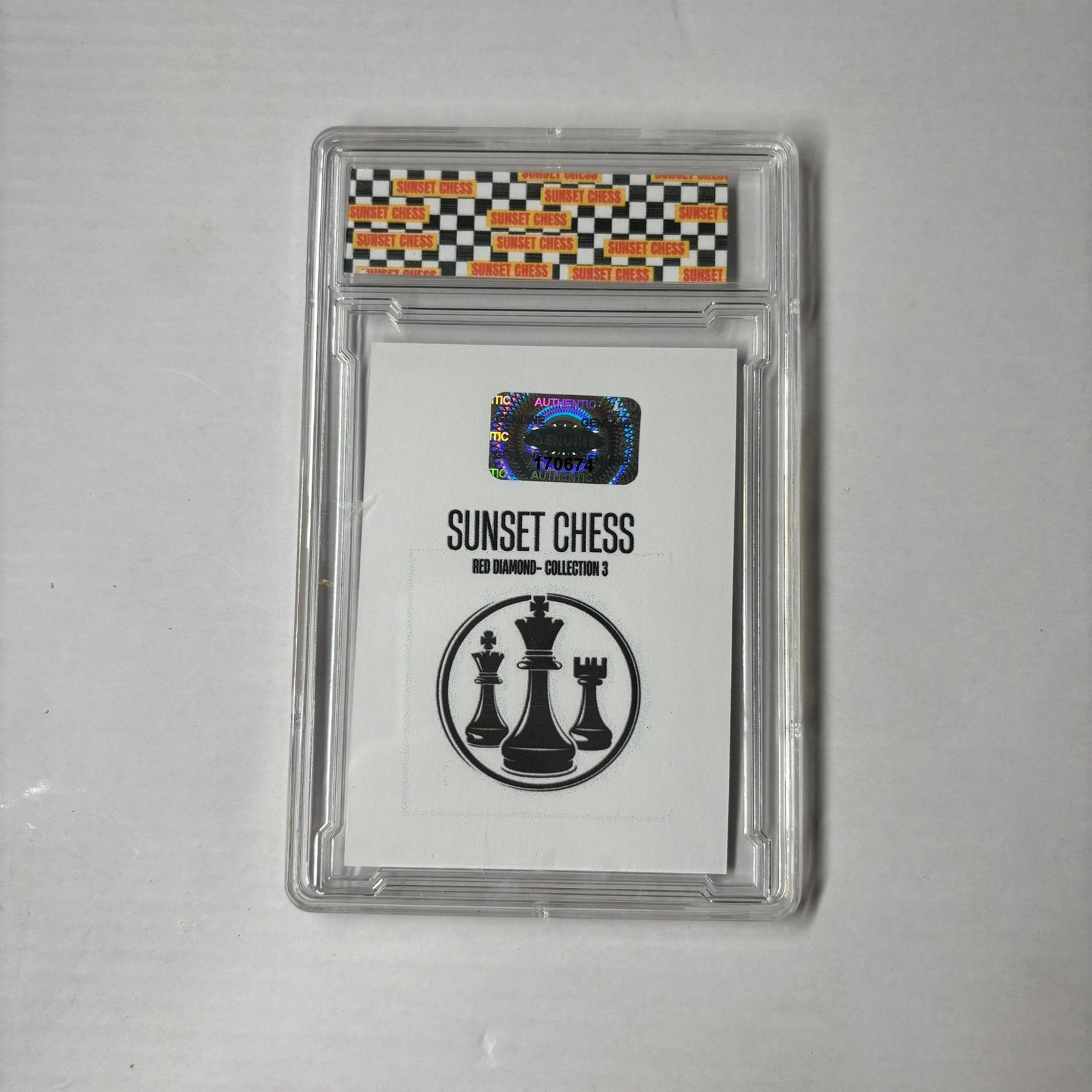This card is chess-themed, making it a great addition for chess enthusiasts and collectors alike. With over 10,000 cards in the series, finding the perfectly cut card is part of the fun. Start your collection today and enjoy the thrill of the hunt!