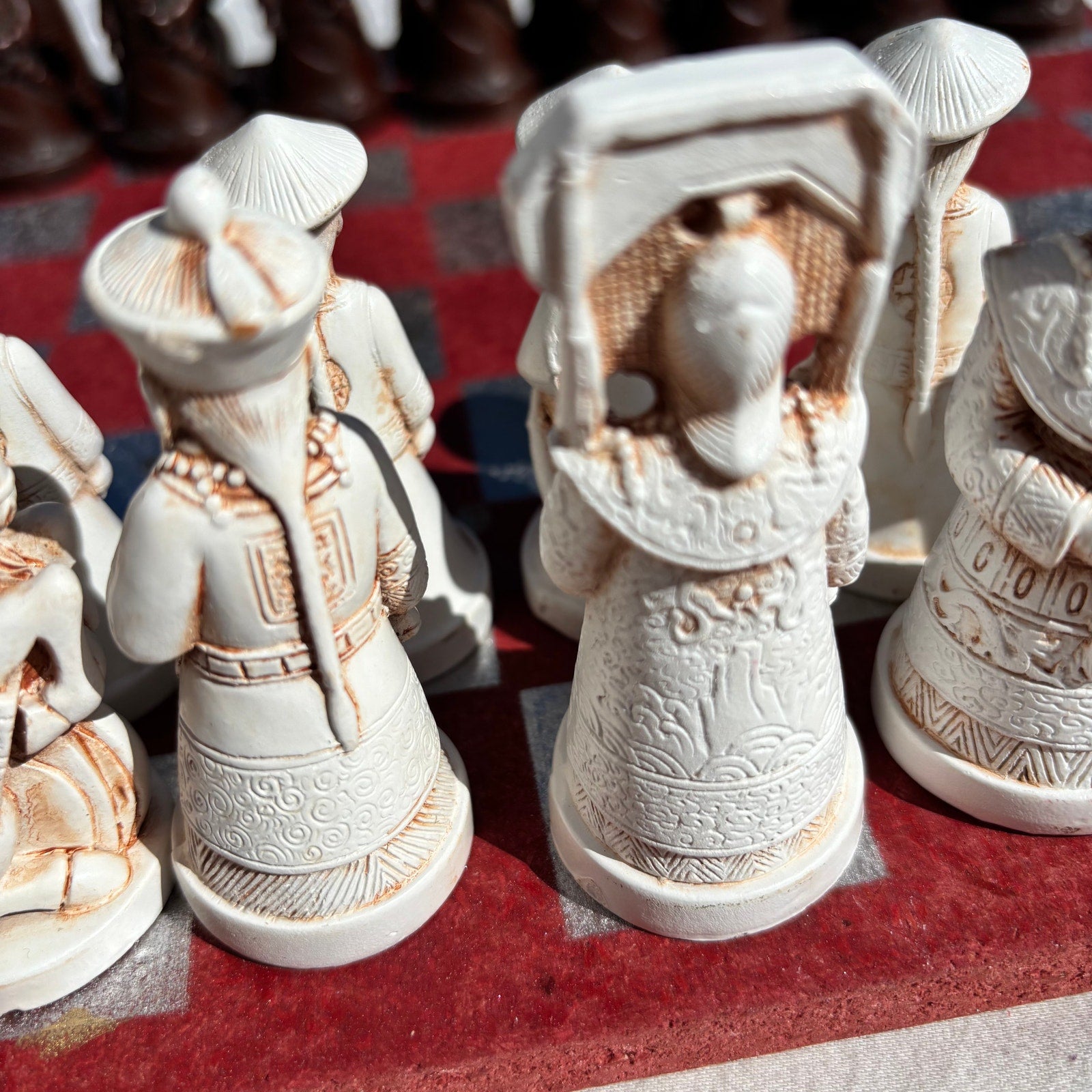 This set is not just a game; it's a work of art, perfect for collectors and chess enthusiasts alike. The attention to detail and craftsmanship makes it a standout piece. Whether you're looking for a beautiful display item or a functional chess set for play, this hand-painted creation is sure to impress. The unique design and quality materials make it a valuable addition to any collection.