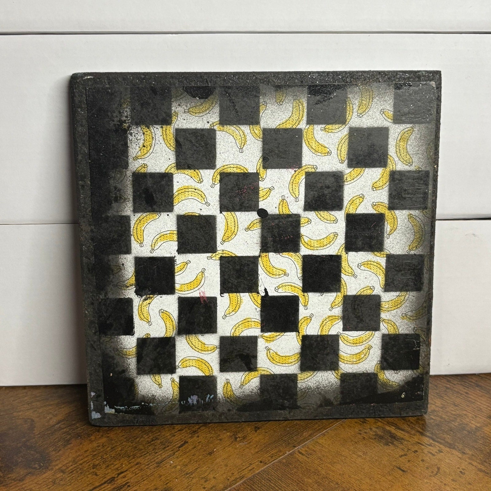 This is a one-of-a-kind, hand-painted chess board that will add a touch of artistry to your game. These are spray painted particle boards and have a double side. One side is painted and the backside is lined with scrapbook paper and has a different design. (The Scrapbook paper part is not meant to be played on but you can!)