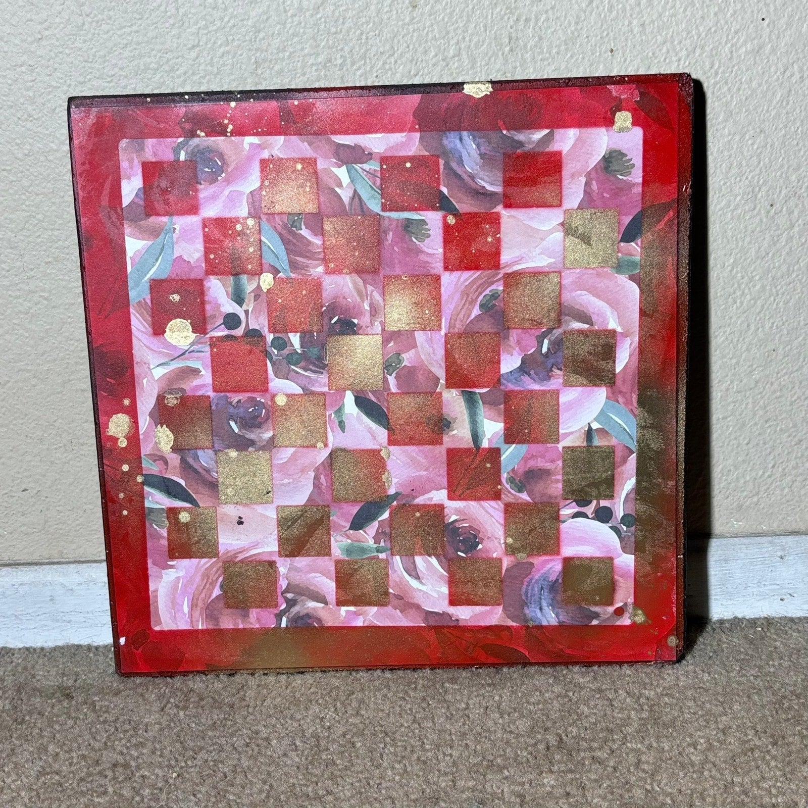 Each board features a layer of beautifully Scrapbook Paper Fused/Glued with particle board to give it a unique pretty pattern. We then paint squares onto the board to make them into fabulous chess boards. Made with a sturdy particle board base and smooth, beveled edges, this board is stunning.