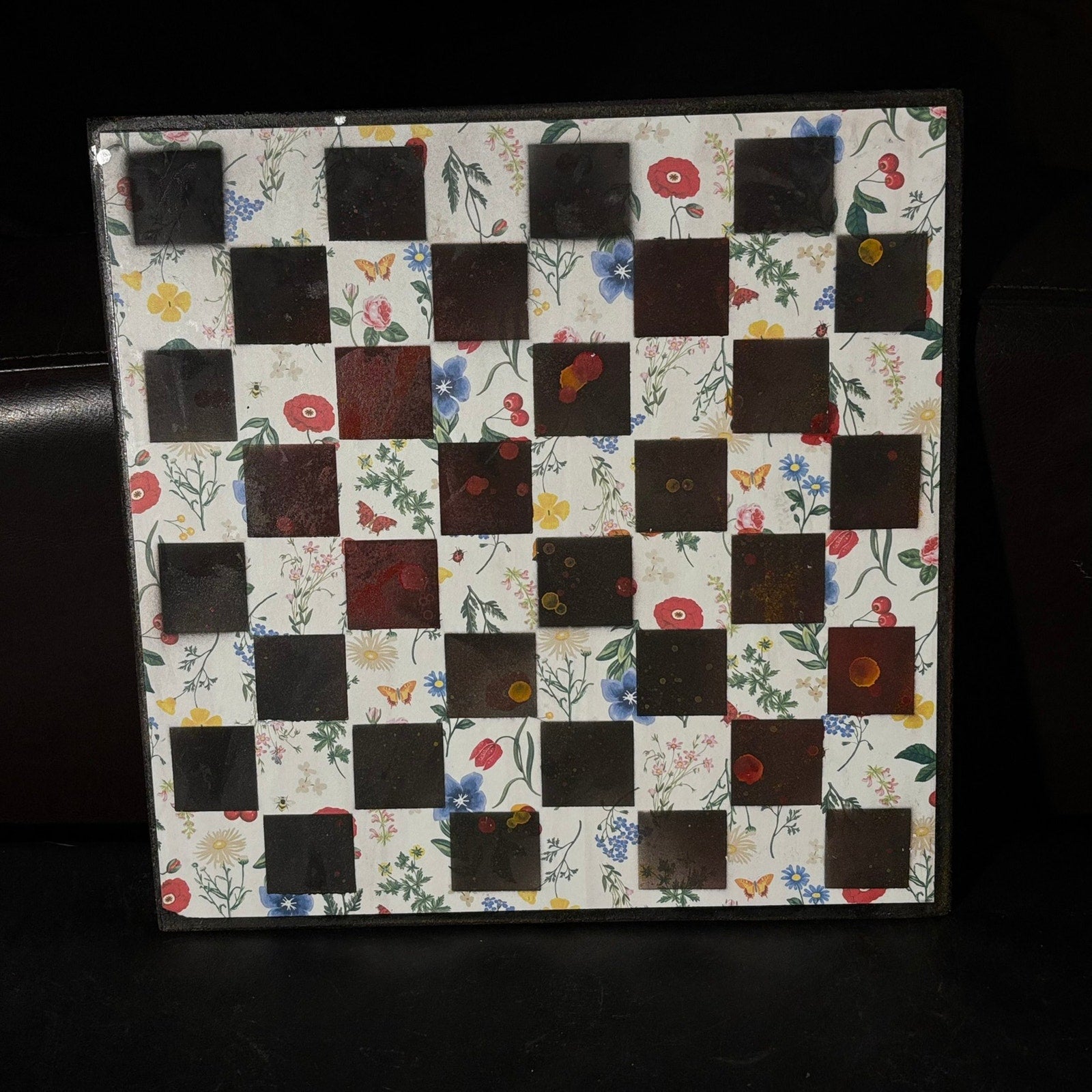 Each board features a layer of beautifully Scrapbook Paper Fused/Glued with particle board to give it a unique pretty pattern. We then paint squares onto the board to make them into fabulous chess boards. Made with a sturdy particle board base and smooth, beveled edges, this board is stunning.