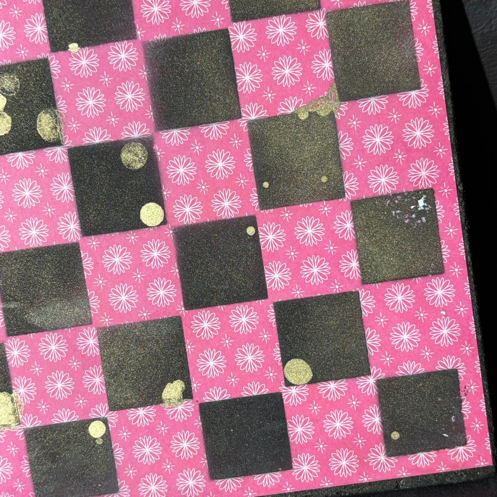 Each board features a layer of beautifully Scrapbook Paper Fused/Glued with particle board to give it a unique pretty pattern. We then paint squares onto the board to make them into fabulous chess boards. Made with a sturdy particle board base and smooth, beveled edges, this board is stunning.