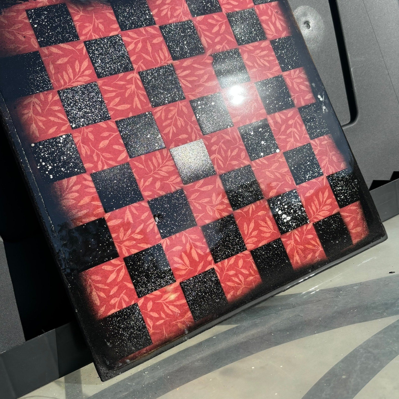 Red Sprinkled Chrome - Resin Coated Chess Board