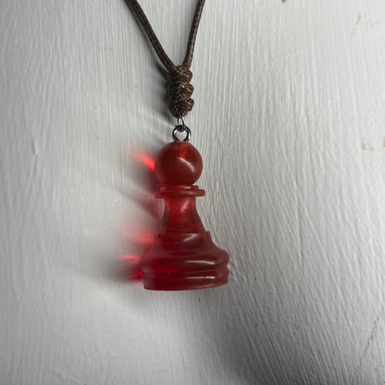 Red Translucent Pawn - Handmade Resin Chess Necklace