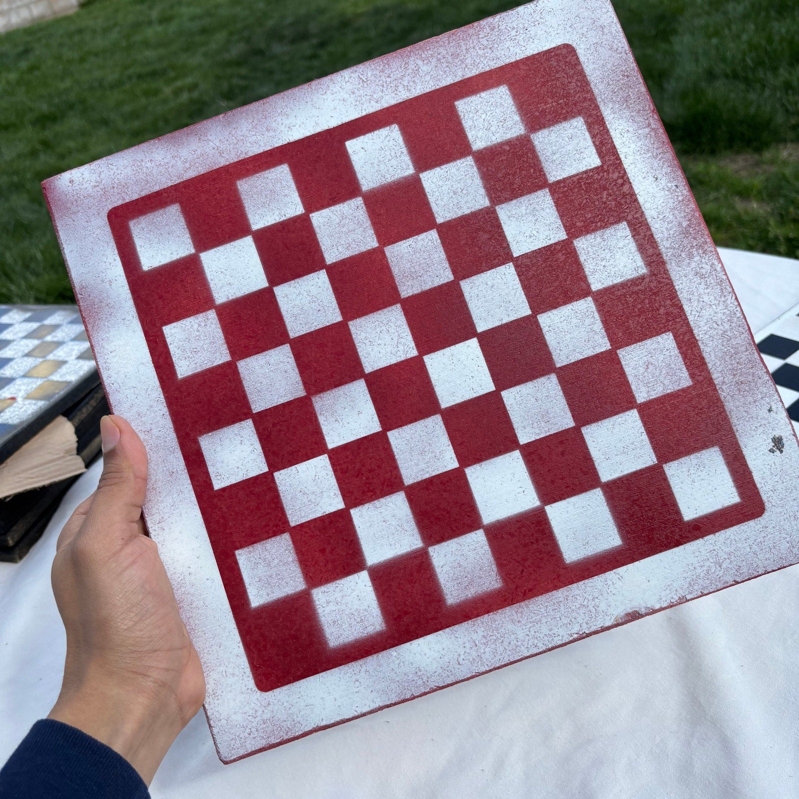 Red & White - Painted Chess Set