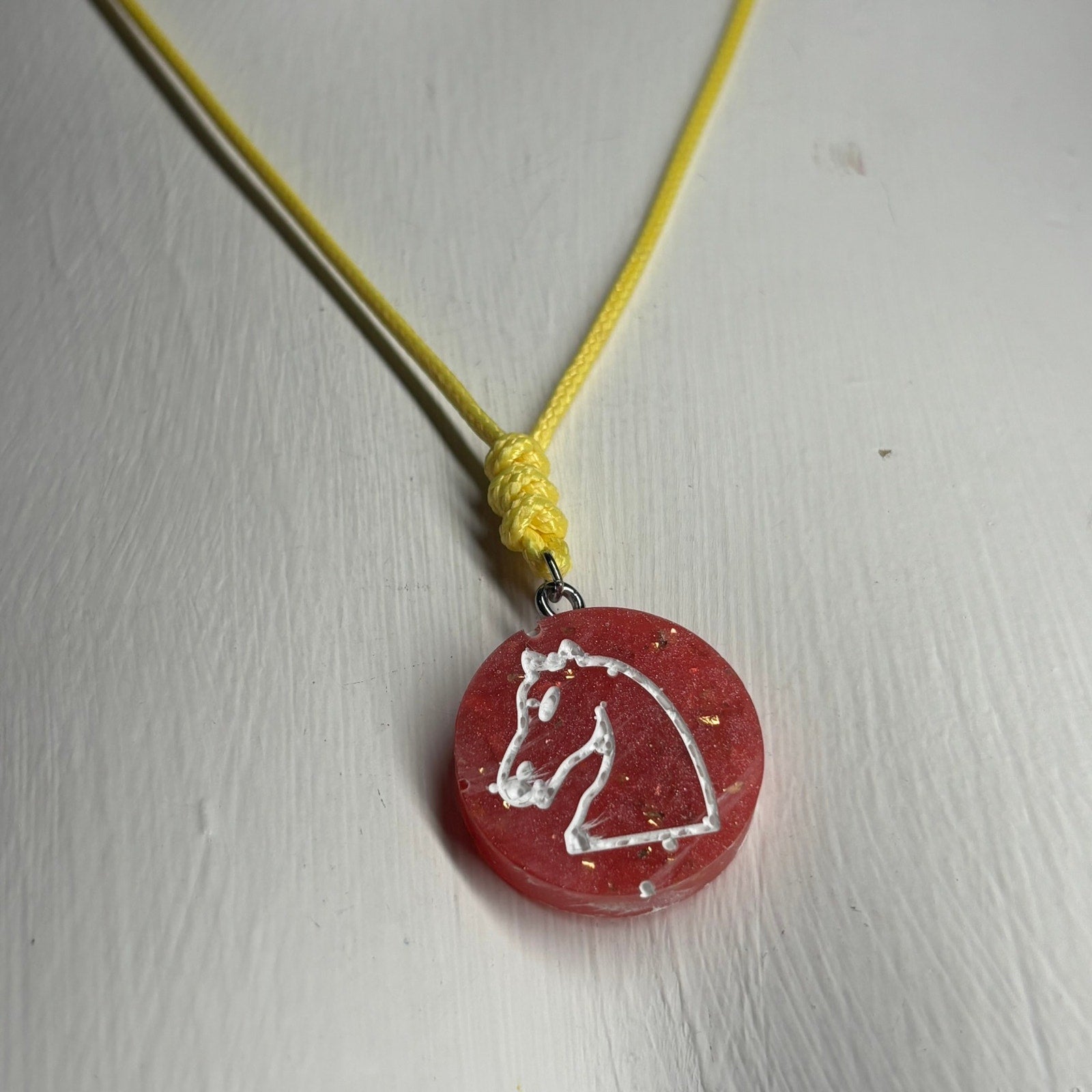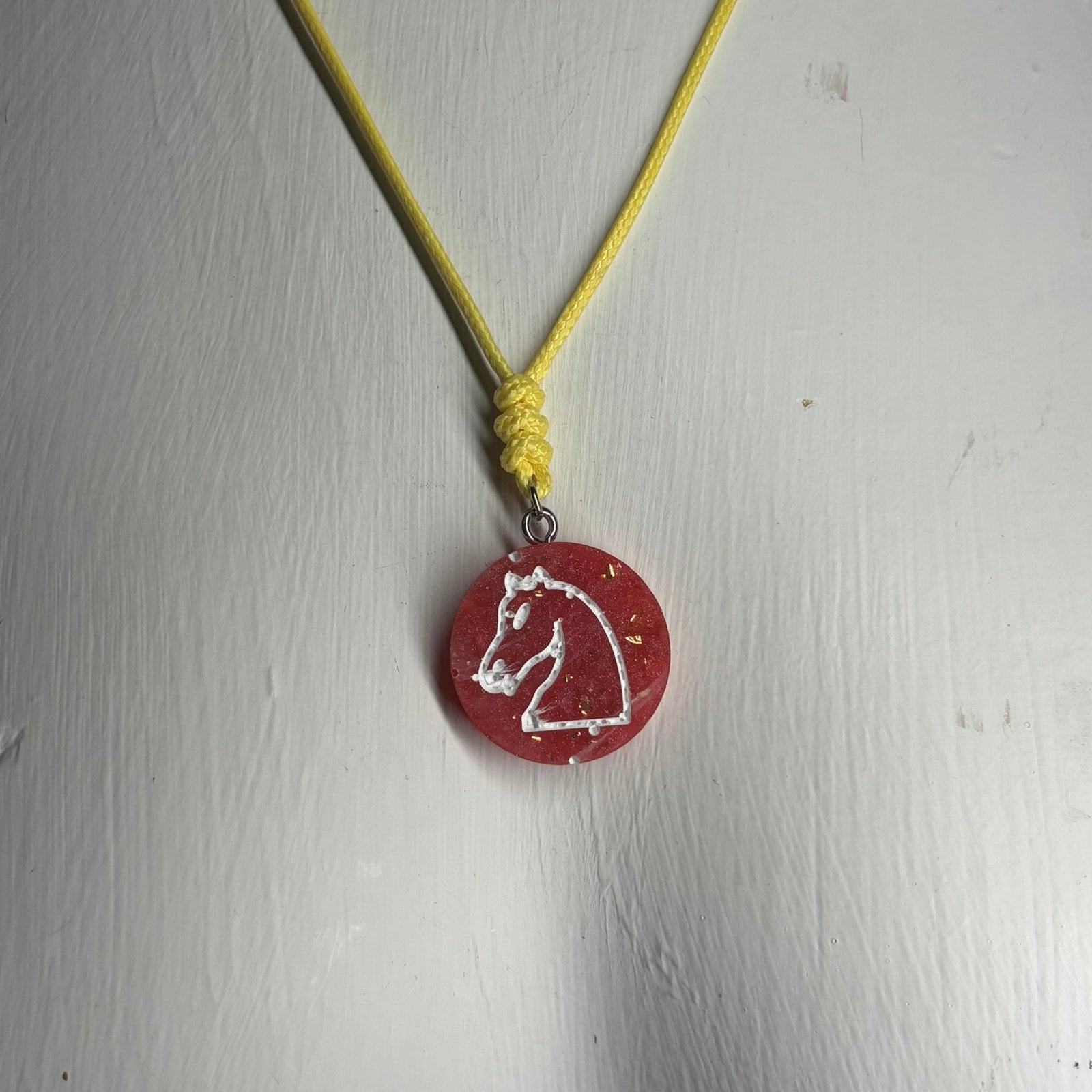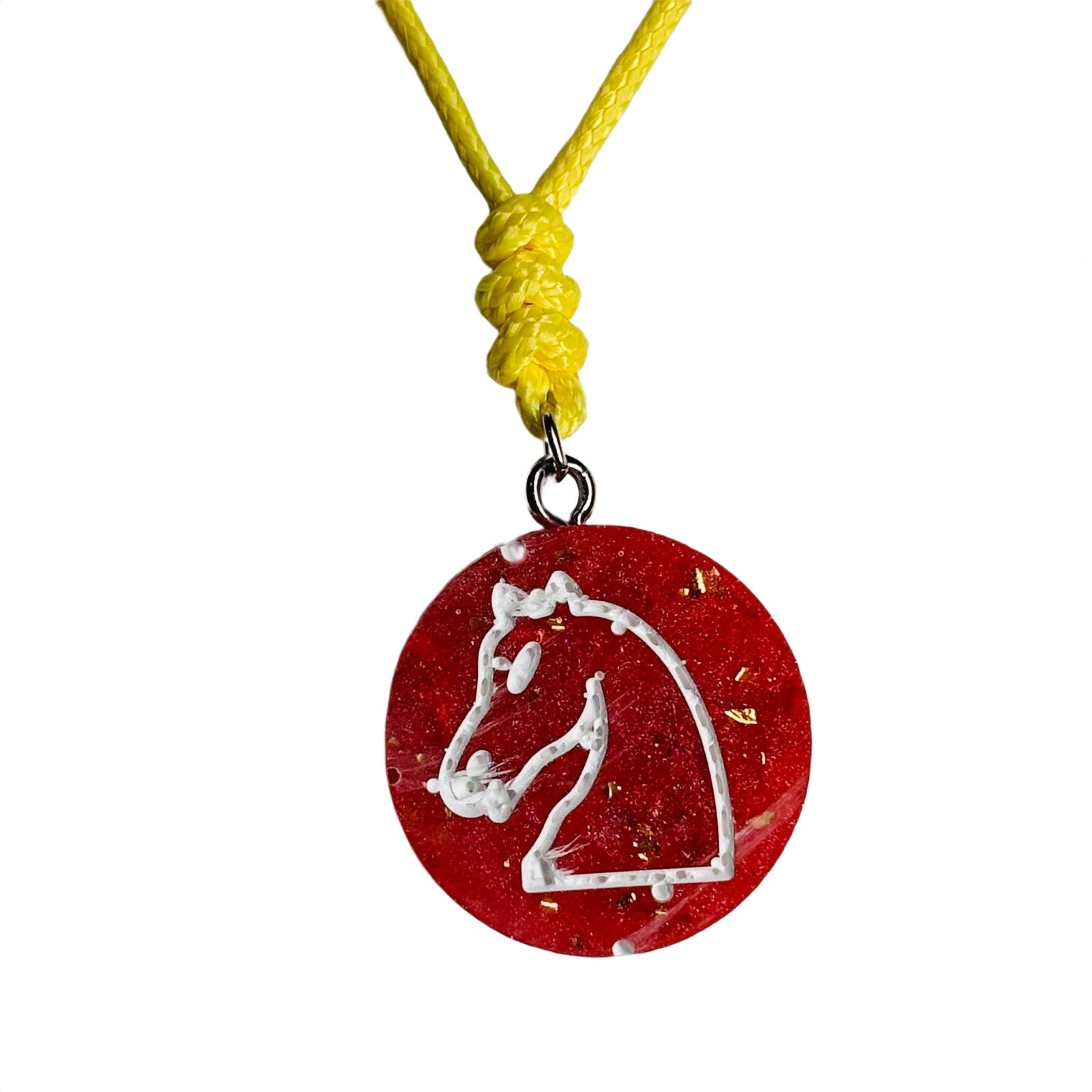 Red Yellow Knight - Handmade Resin Chess Necklace