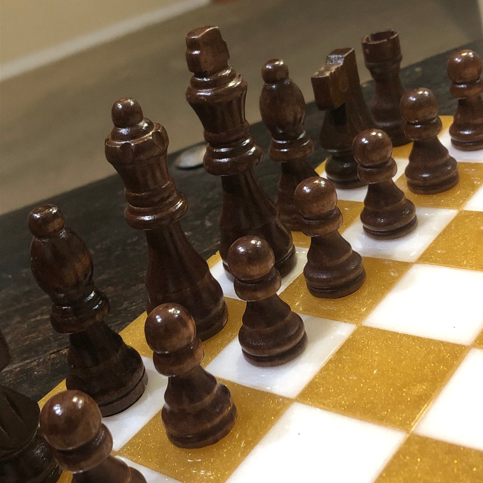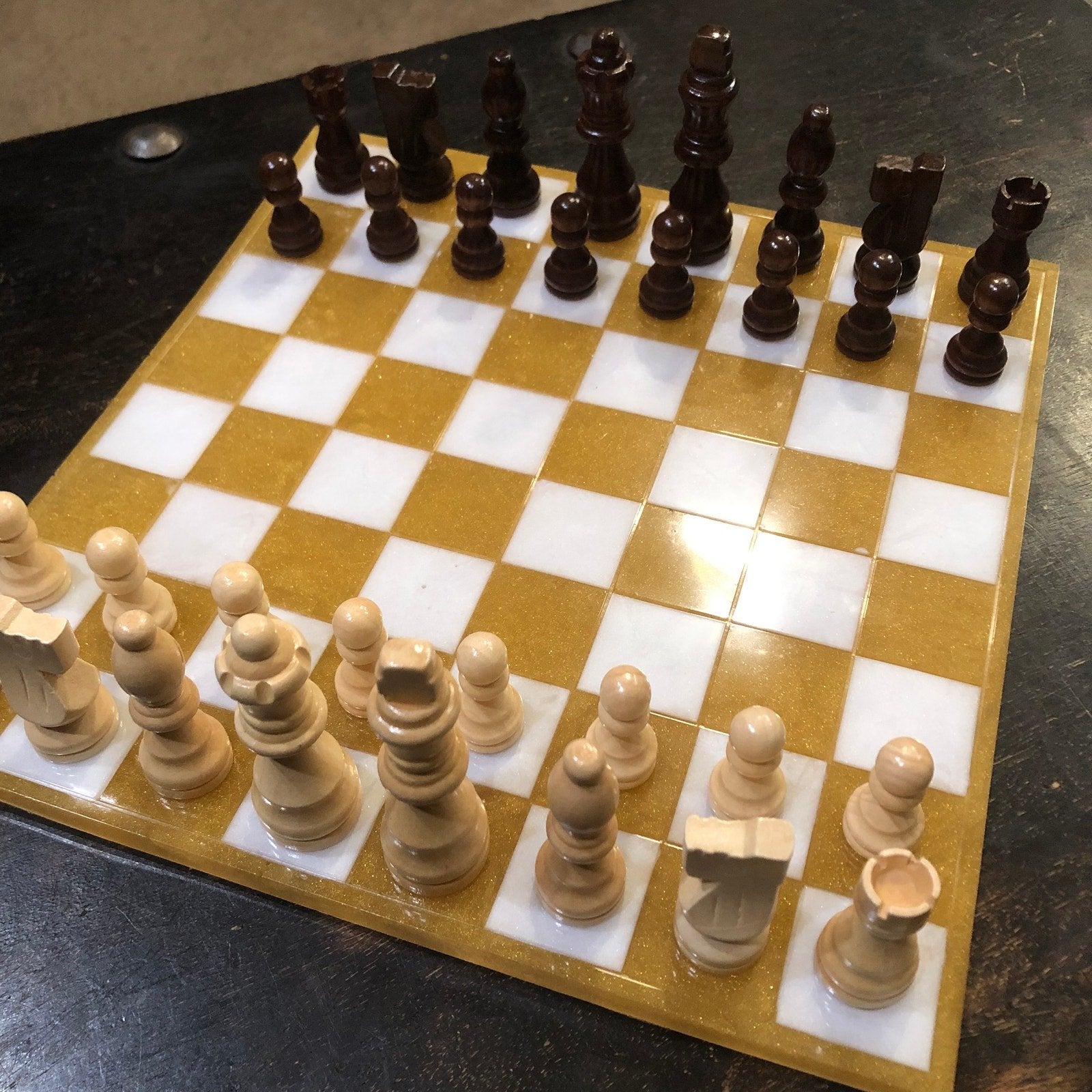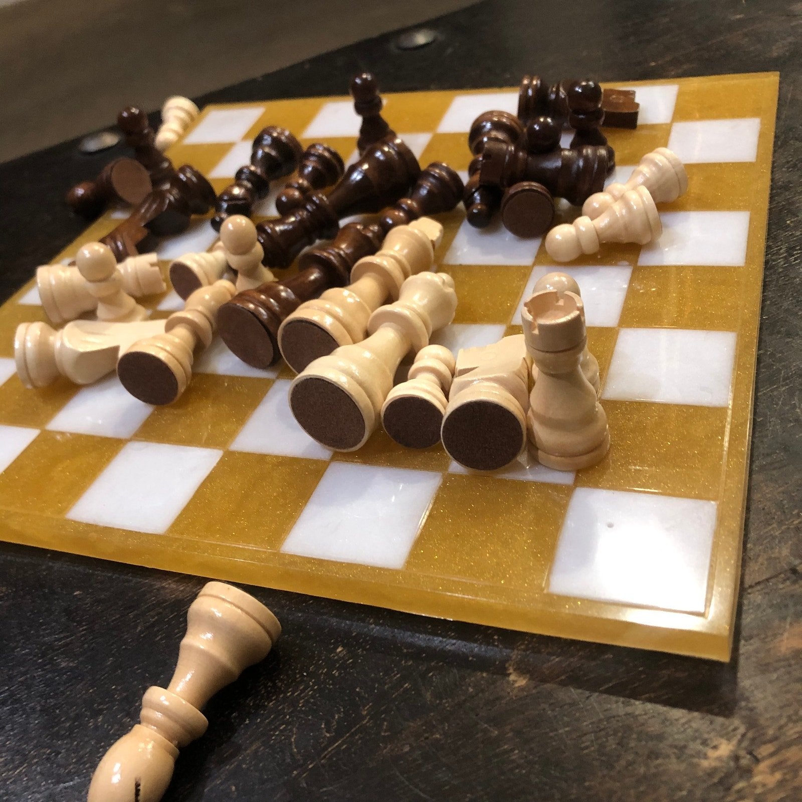 Introducing our exclusive Handcrafted Epoxy Resin Chess Set, meticulously designed with precision and care. Measuring 10 inches by 10 inches, this chess set features a beautifully Epoxy Resin poured board that doubles as a work of art. Each set is a unique, one-of-a-kind creation, crafted by hand to ensure that no two sets are alike. Elevate your gaming experience with this exceptional chess set that combines vibrant design with the touch of artisan craftsmanship. This chess board comes with chess pieces.
