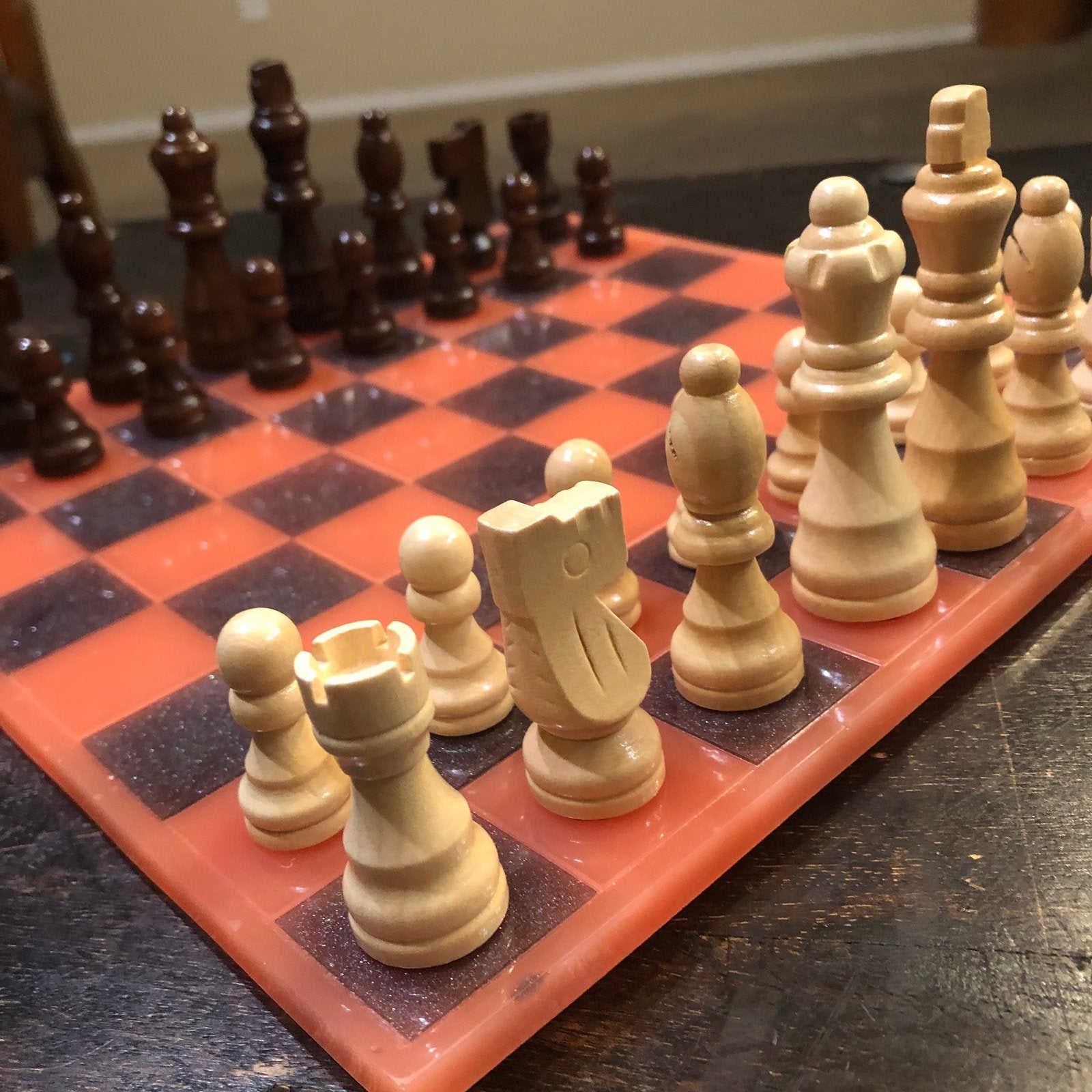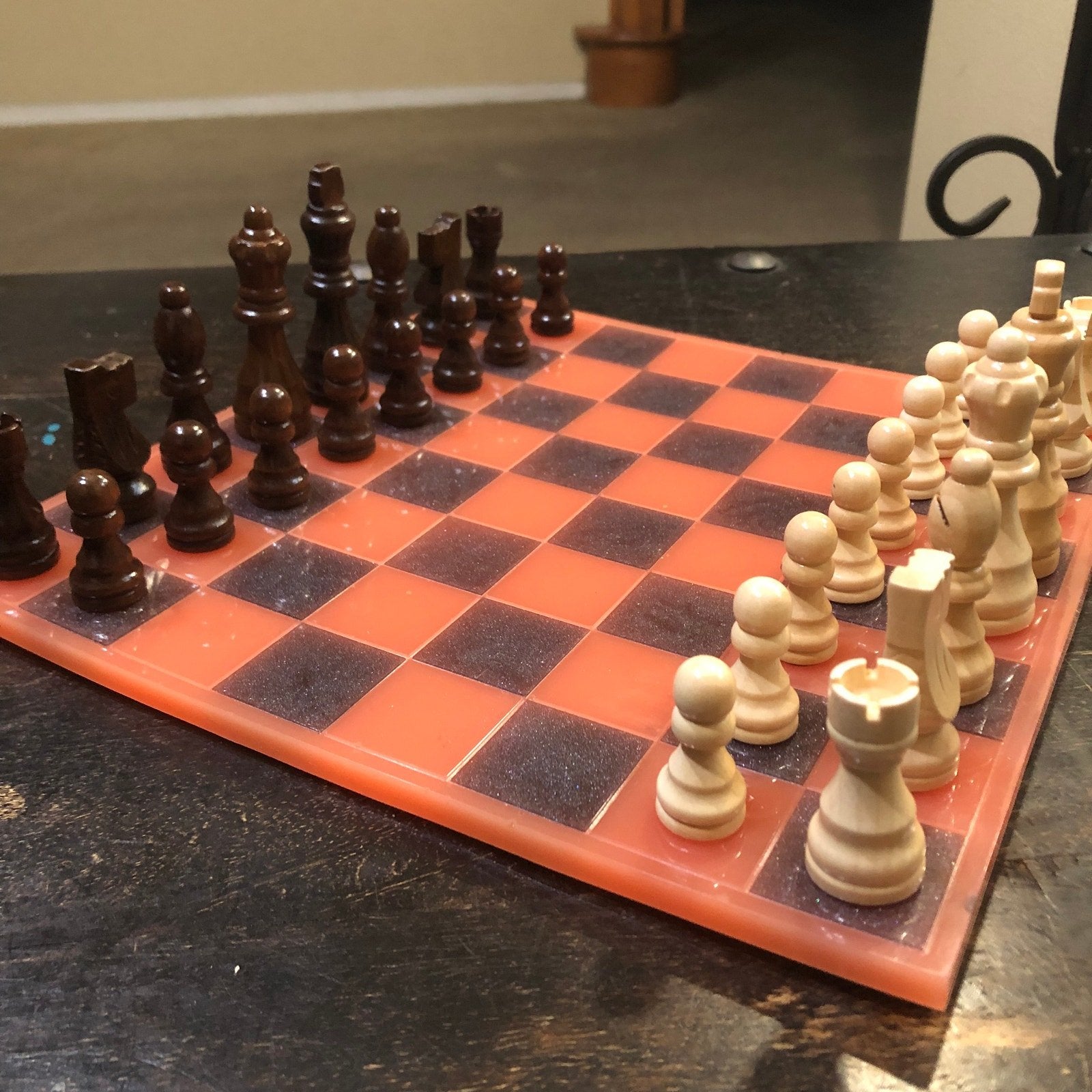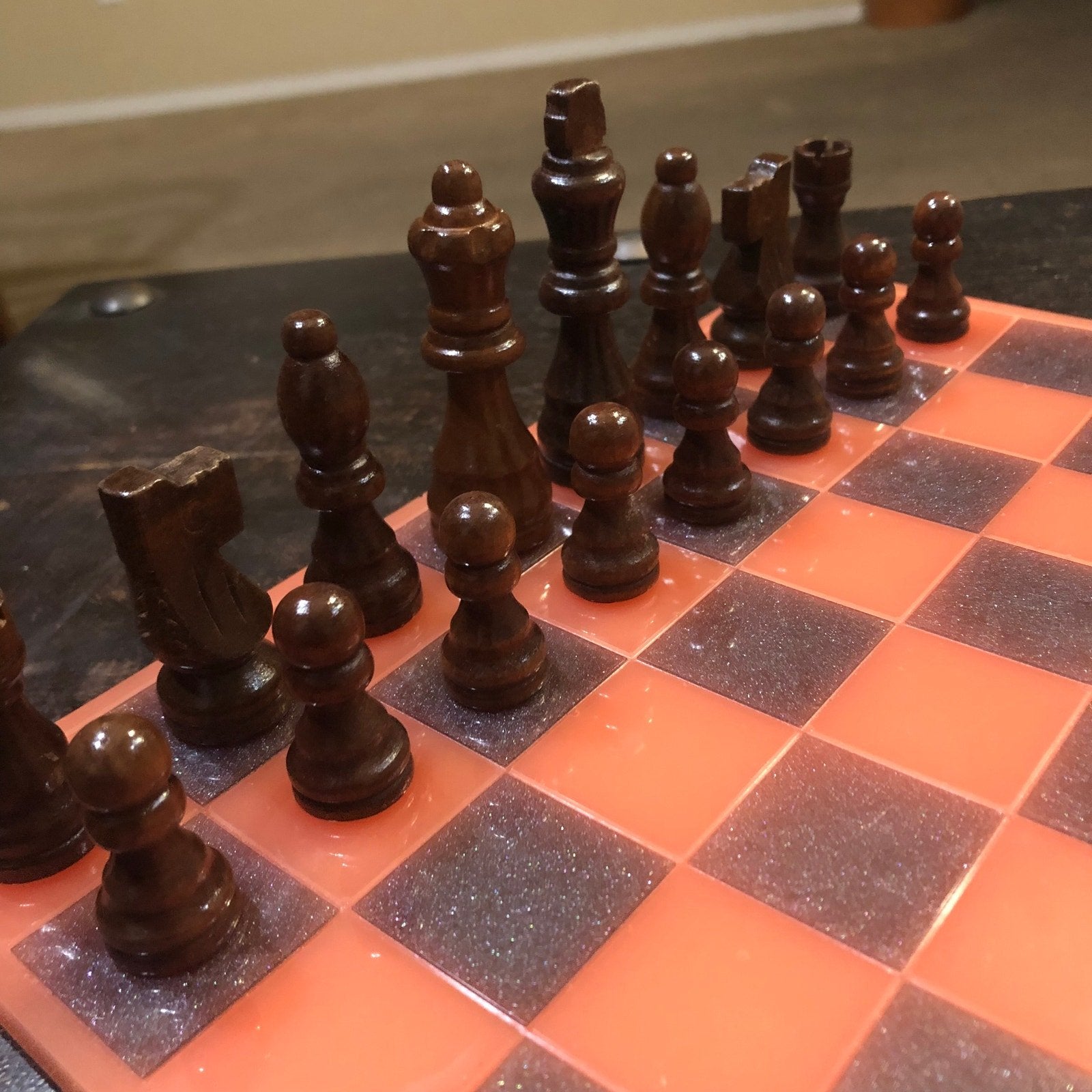 Introducing our exclusive Handcrafted Epoxy Resin Chess Set, meticulously designed with precision and care. Measuring 10 inches by 10 inches, this chess set features a beautifully Epoxy Resin poured board that doubles as a work of art. Each set is a unique, one-of-a-kind creation, crafted by hand to ensure that no two sets are alike. Elevate your gaming experience with this exceptional chess set that combines vibrant design with the touch of artisan craftsmanship. This chess board comes with chess pieces.