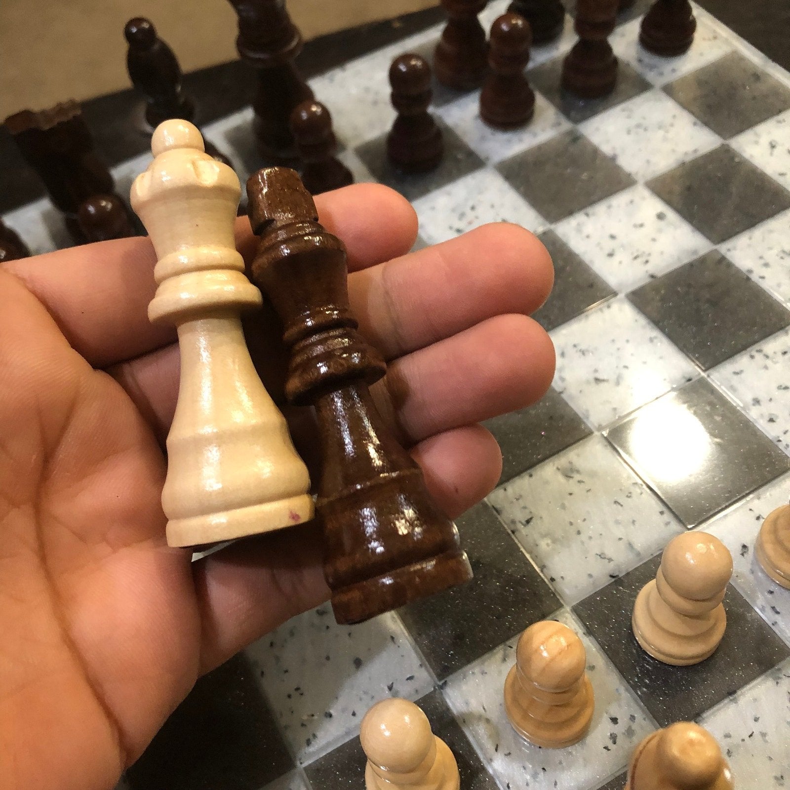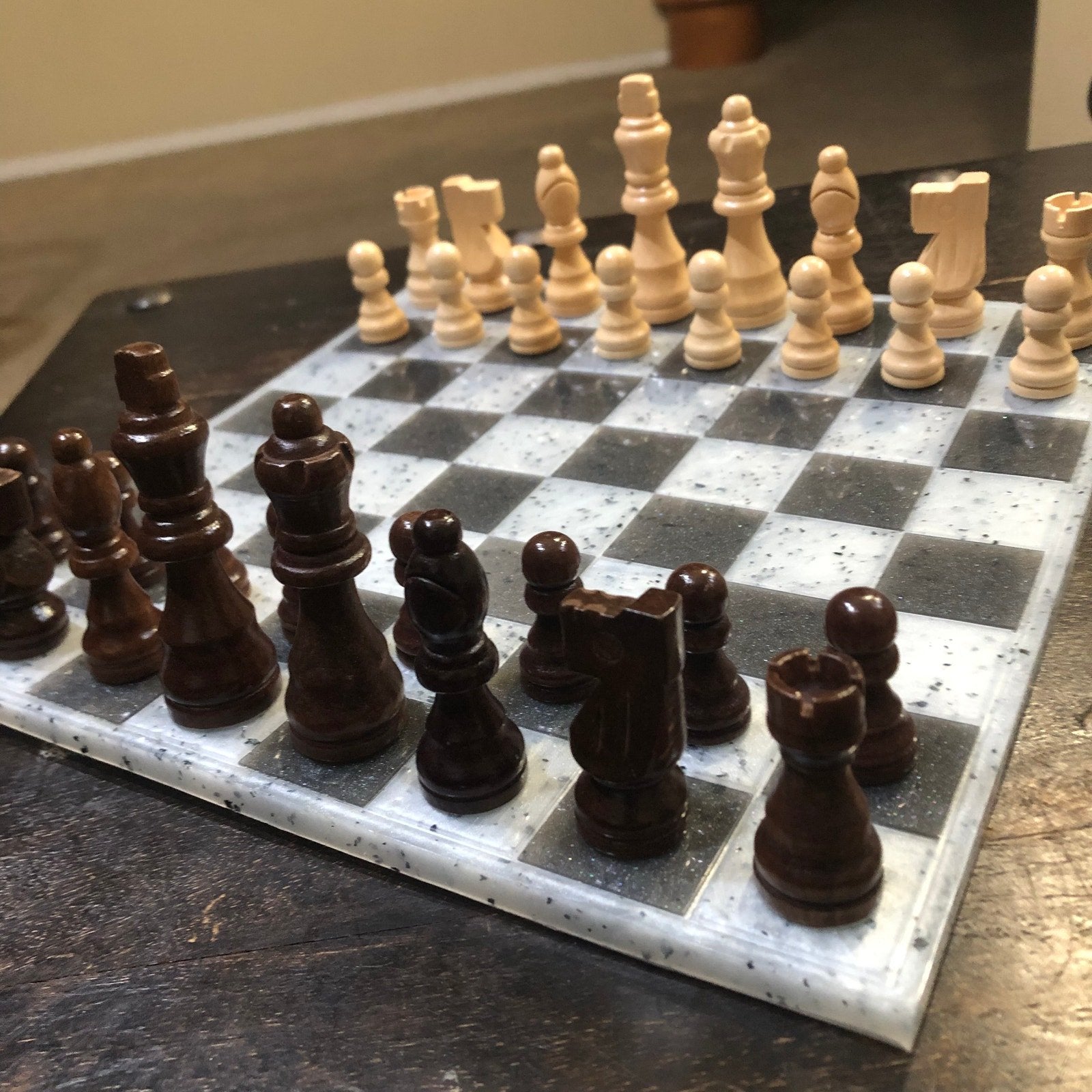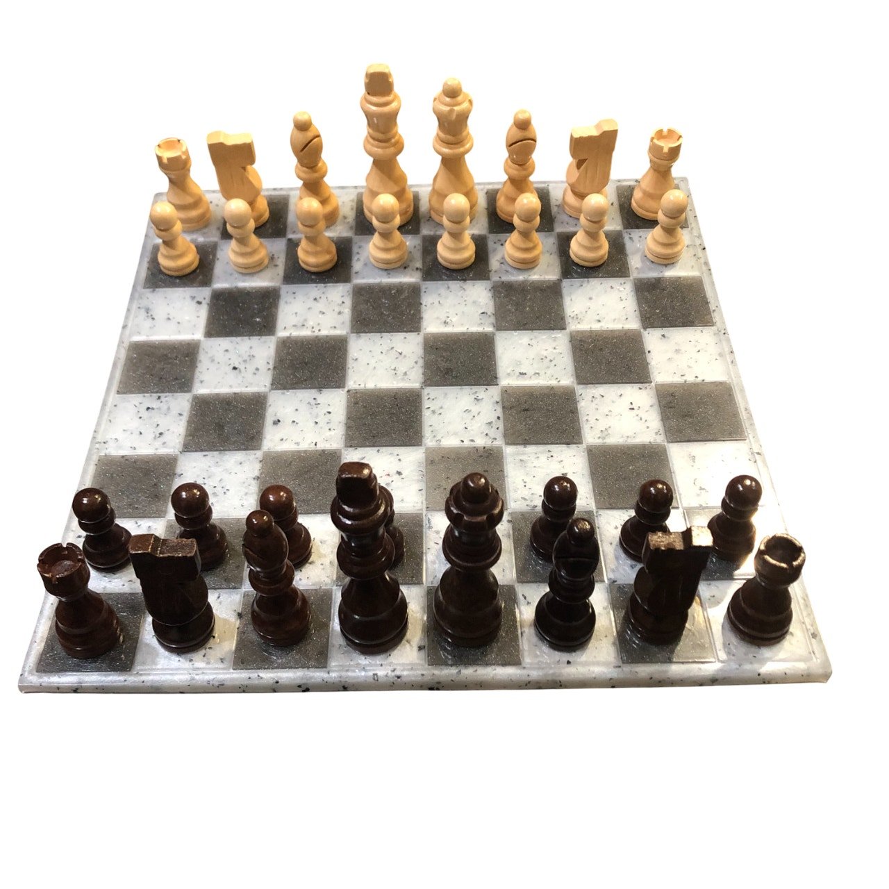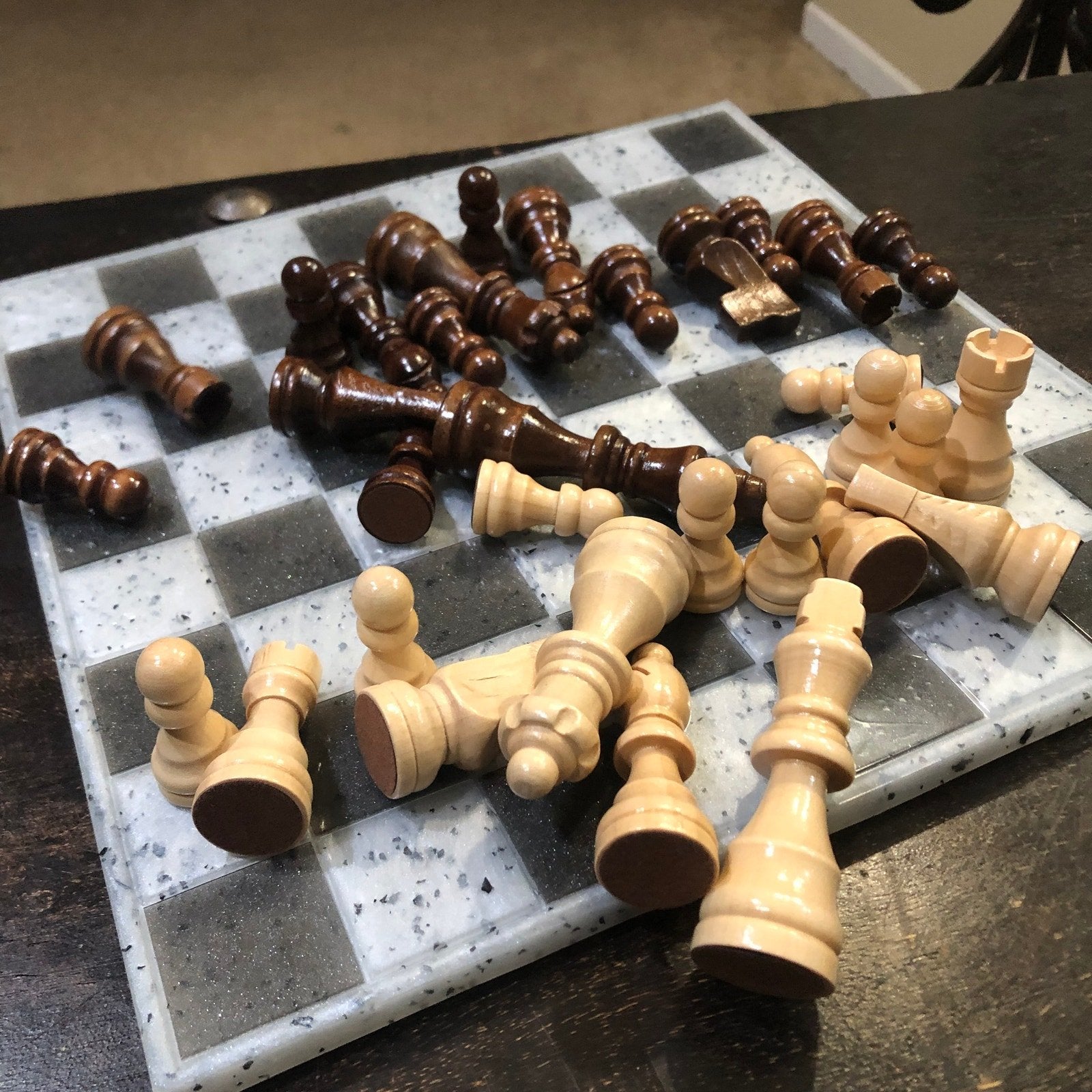 Resin Chess Set - Tattered Black & White (Wood Pieces)