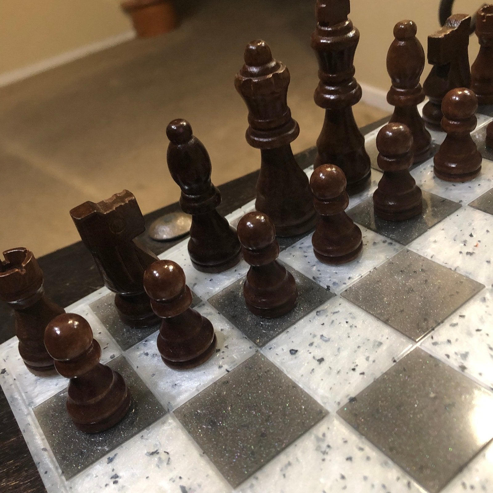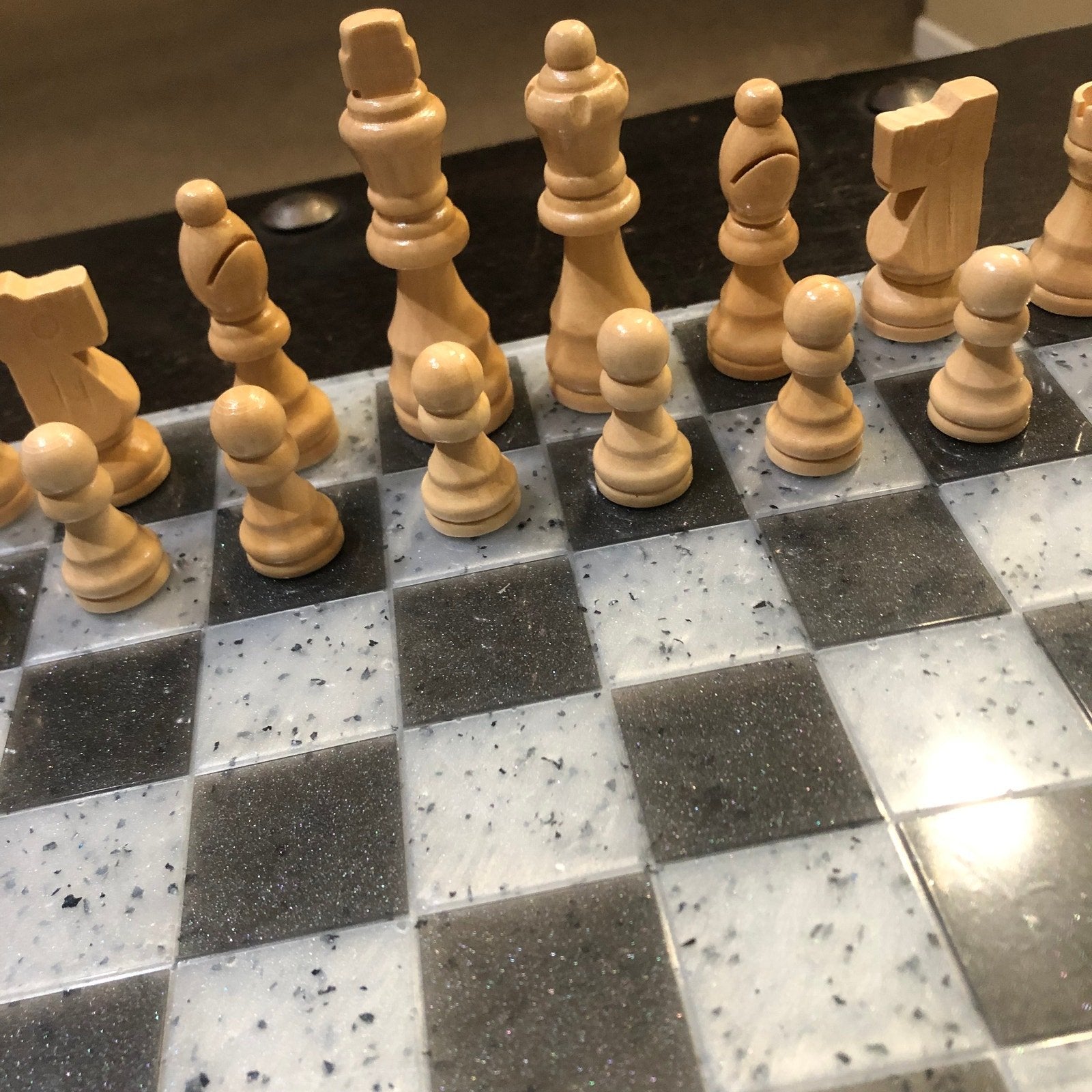 Introducing our exclusive Handcrafted Epoxy Resin Chess Set, meticulously designed with precision and care. Measuring 10 inches by 10 inches, this chess set features a beautifully Epoxy Resin poured board that doubles as a work of art. Each set is a unique, one-of-a-kind creation, crafted by hand to ensure that no two sets are alike. Elevate your gaming experience with this exceptional chess set that combines vibrant design with the touch of artisan craftsmanship. This chess board comes with chess pieces.