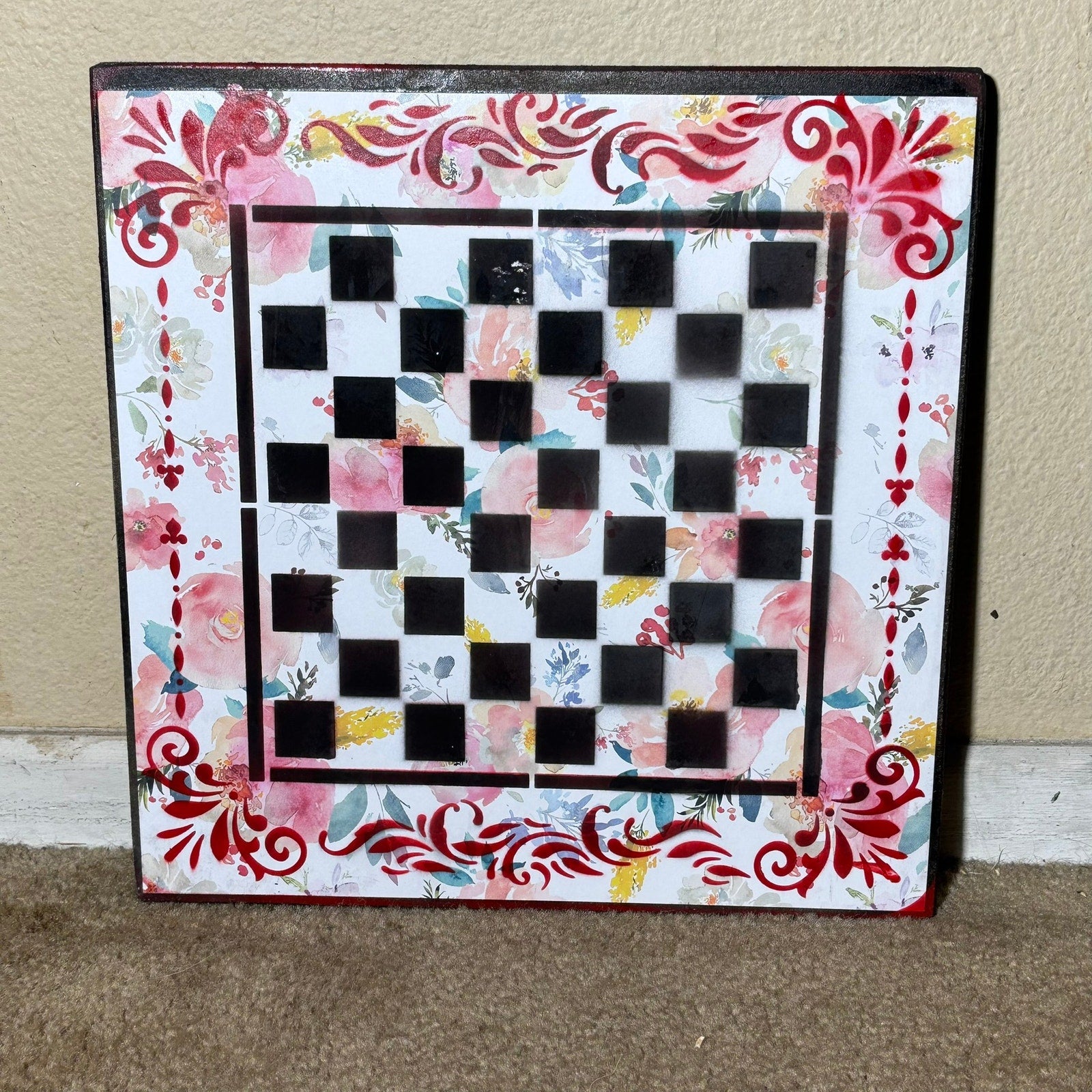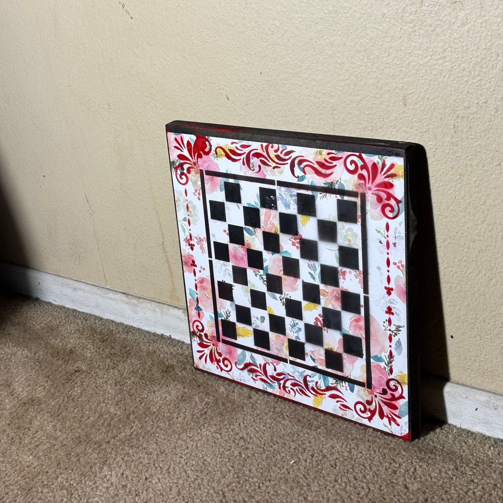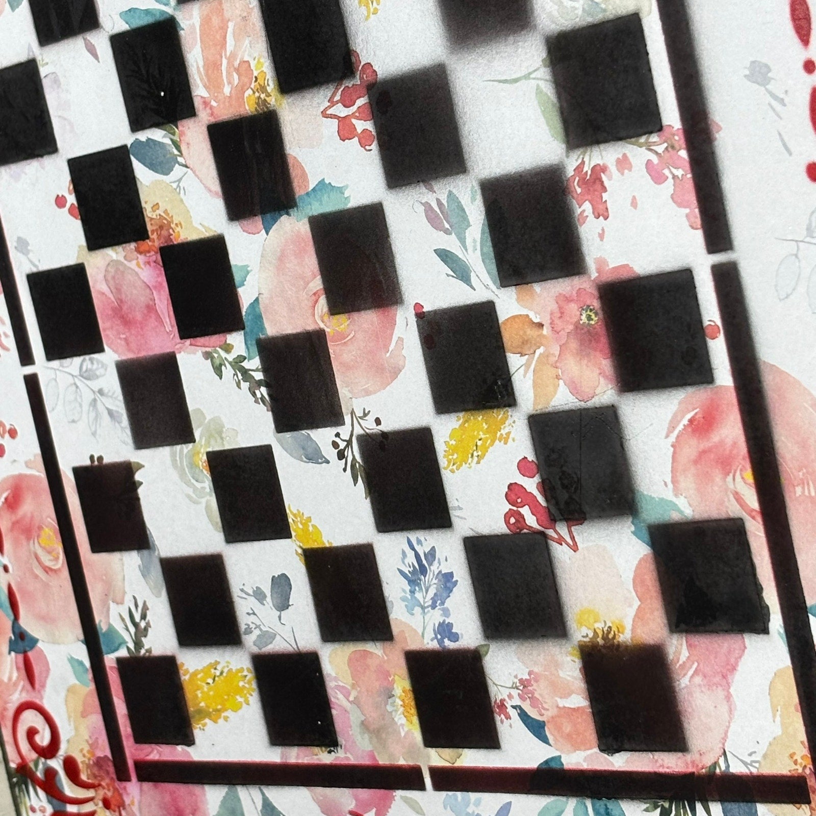Each board features a layer of beautifully Scrapbook Paper Fused/Glued with particle board to give it a unique pretty pattern. We then paint squares onto the board to make them into fabulous chess boards. Made with a sturdy particle board base and smooth, beveled edges, this board is stunning.