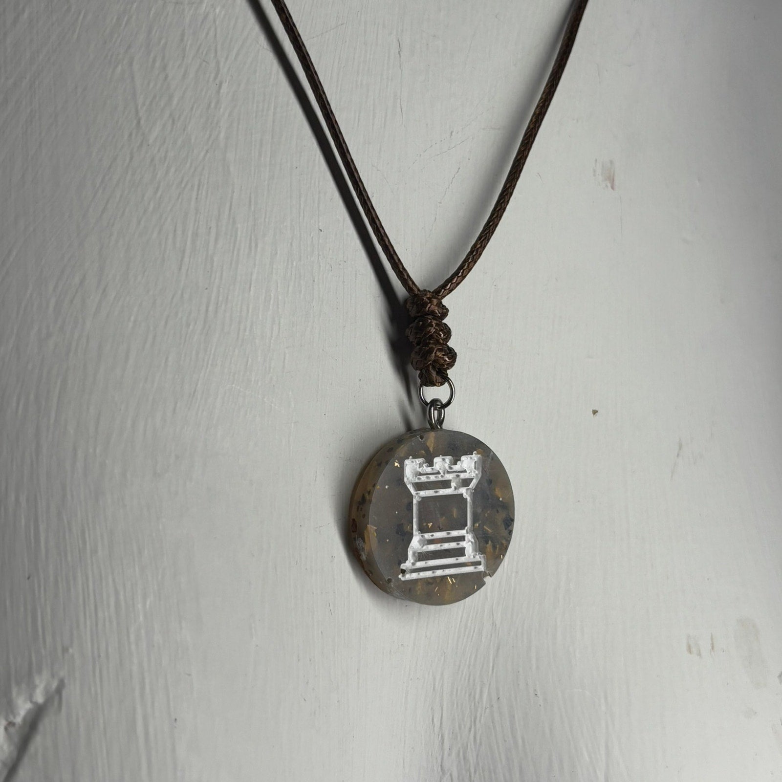 Royal Brown Rook - Handmade Resin Chess Necklace