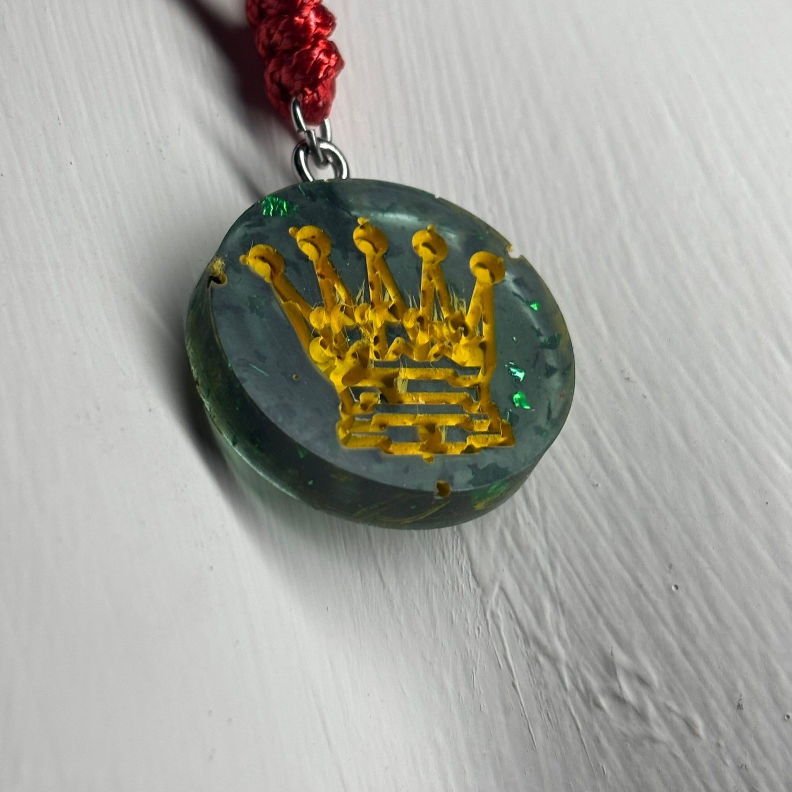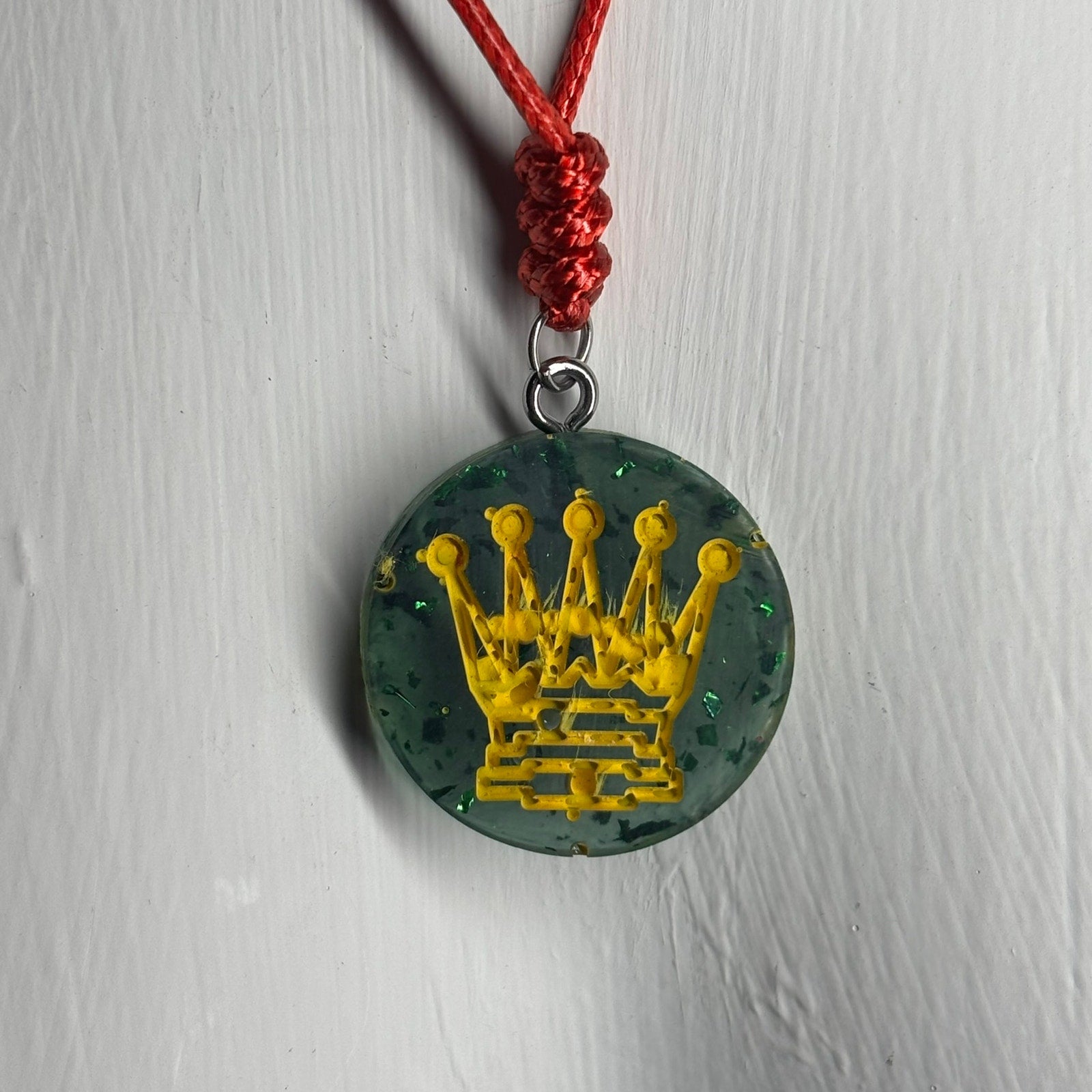 Royal Green/Yellow Queen - Handmade Resin Chess Necklace