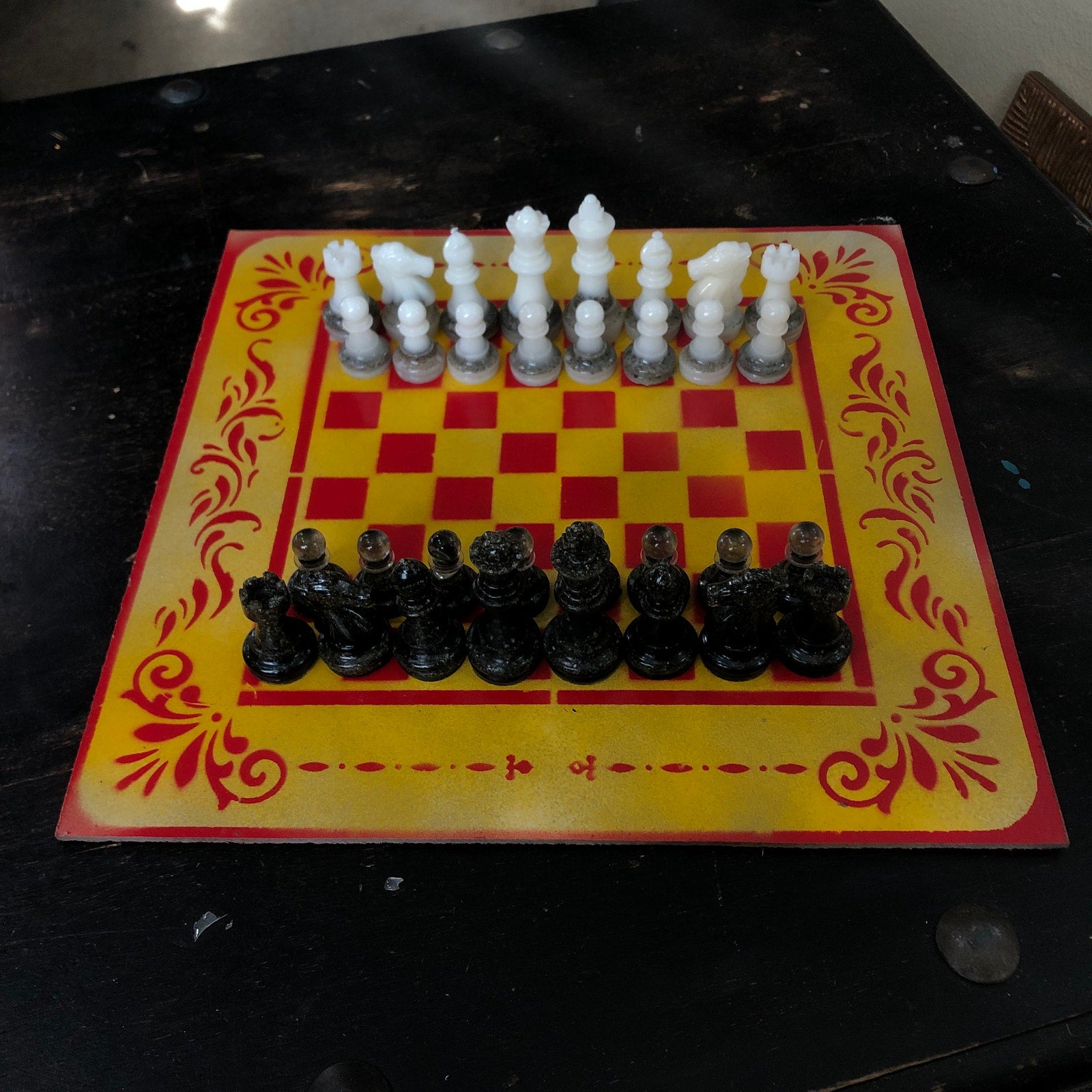 Introducing our exclusive Handcrafted Hardboard Chess Set, meticulously designed with precision and care. Measuring 12 inches by 12 inches, this chess set features a beautifully painted hardwood board that doubles as a work of art. Each set is a unique, one-of-a-kind creation, crafted by hand to ensure that no two sets are alike. Elevate your gaming experience with this exceptional chess set that combines vibrant design with the touch of artisan craftsmanship.