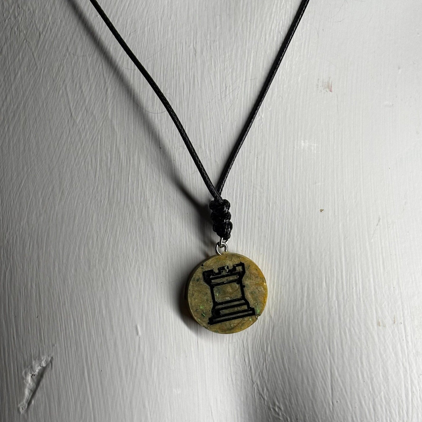 Add a touch of strategy and style to your look with this unique, handcrafted chess pendant necklace! Each necklace features a resin chess piece pendant, lovingly handmade to ensure quality and individuality.