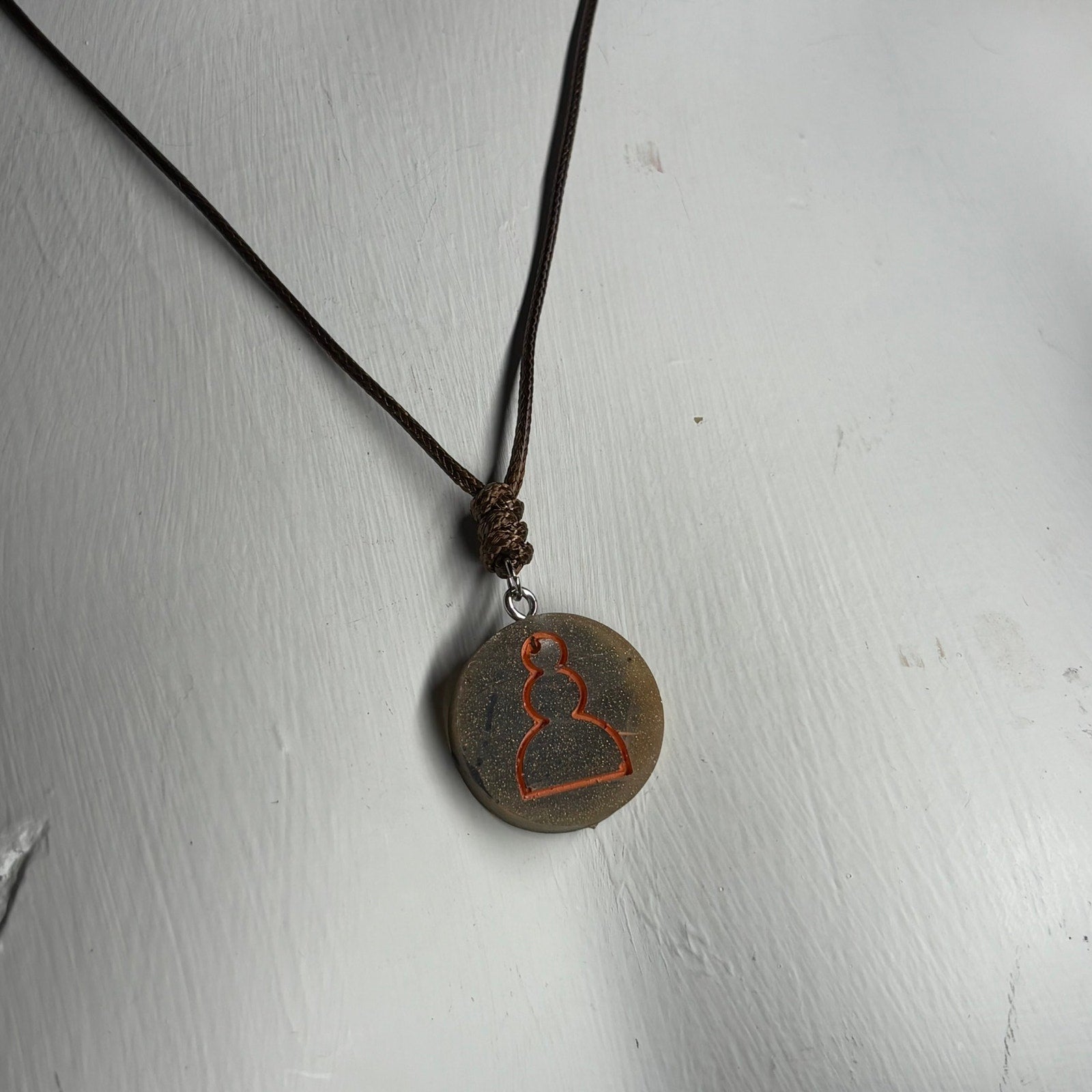 Rustic Orange Pawn - Handmade Resin Chess Necklace