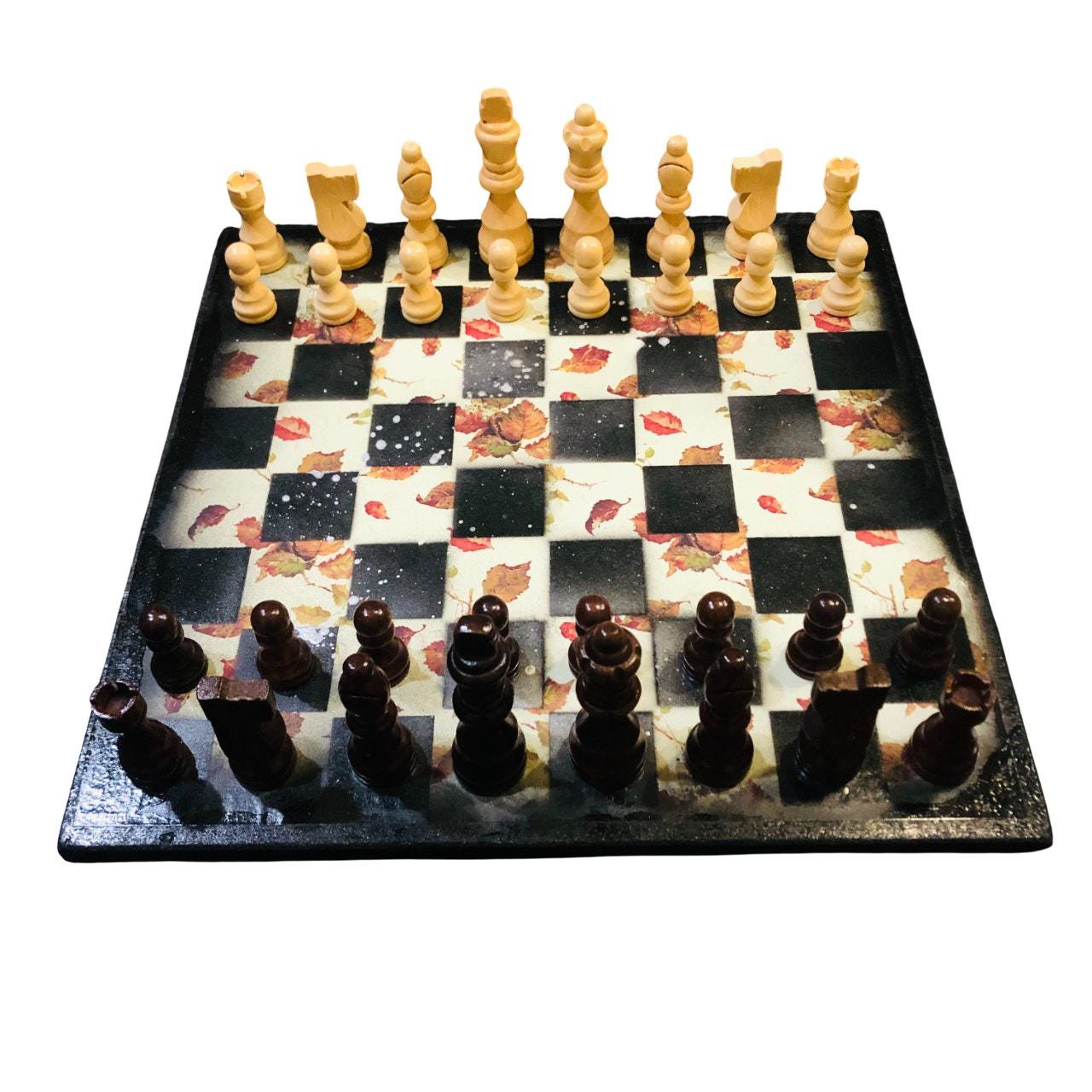 Introducing our exclusive Handcrafted Wooden Chess Set, meticulously designed with precision and care. Measuring 12 inches by 12 inches, this chess set features a beautifully painted particle board layered with a sheet of scrapbook paper board that doubles as a work of art. Each set is a unique, one-of-a-kind creation, crafted by hand to ensure that no two sets are alike. Elevate your gaming experience with this exceptional chess set that combines vibrant design with the touch of artisan craftsmanship. This chess board comes with chess pieces and is handcrafted as a one of one
