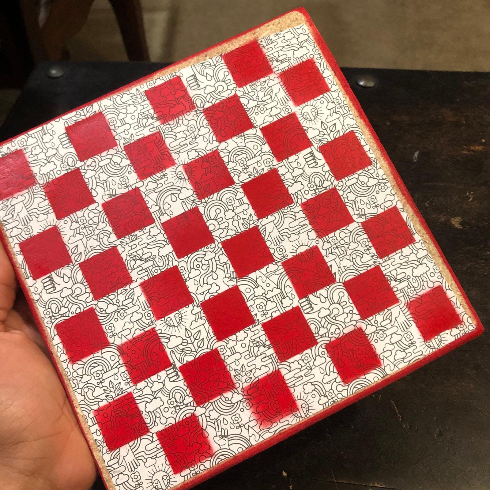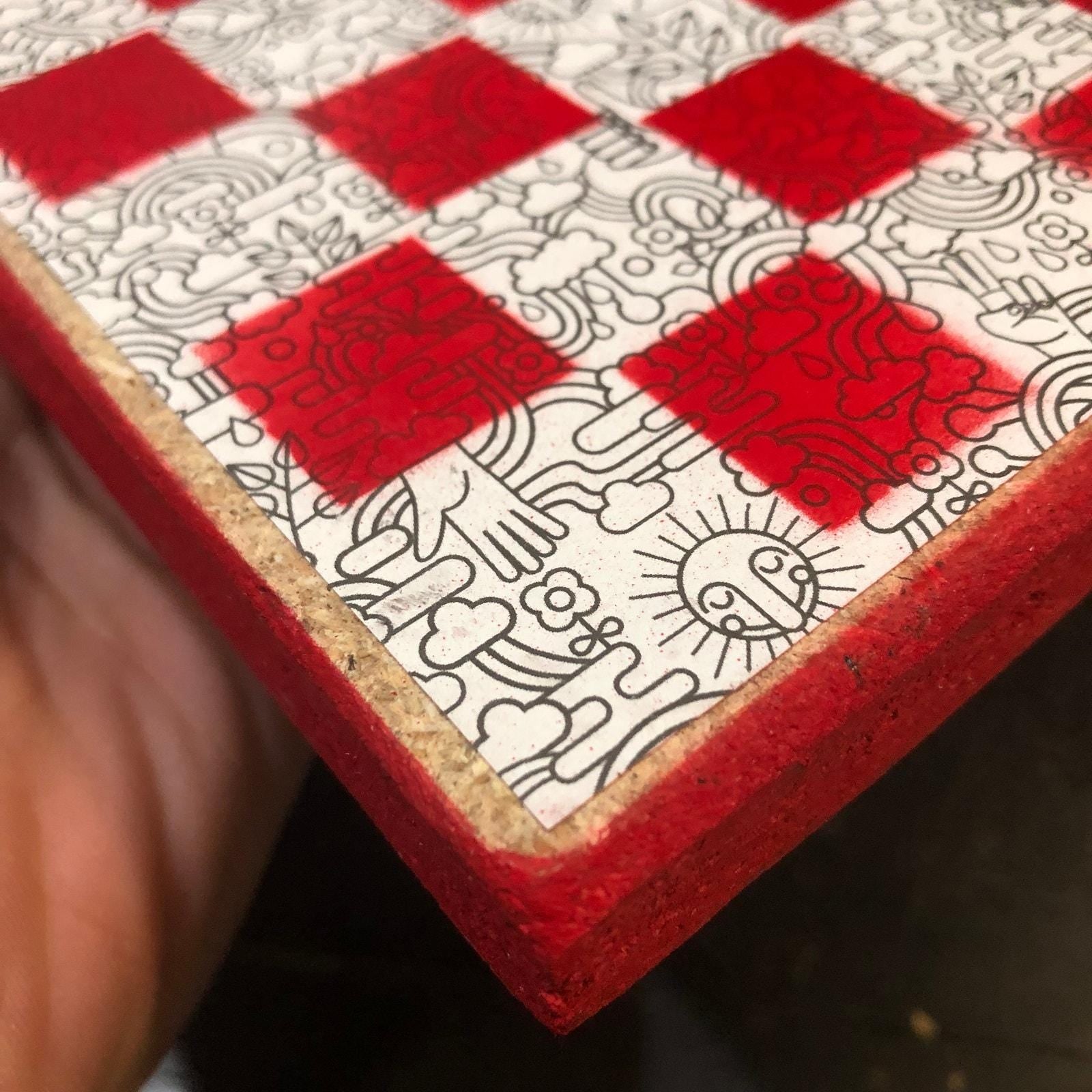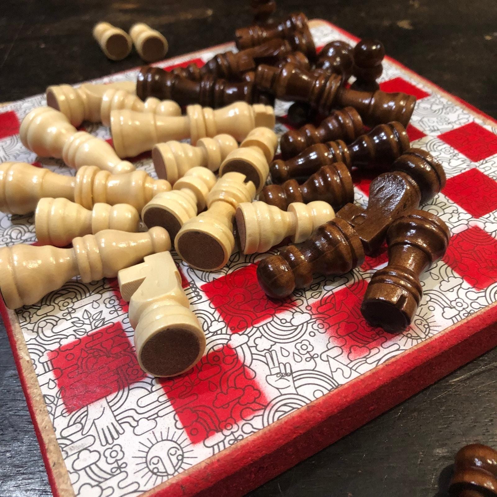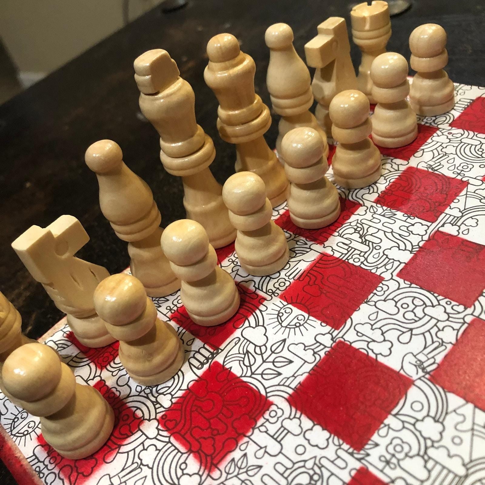Introducing our exclusive Handcrafted Wooden Chess Set, meticulously designed with precision and care. Measuring 8 inches by 8 inches, this chess set features a beautifully painted particle board layered with a sheet of scrapbook paper board that doubles as a work of art. Each set is a unique, one-of-a-kind creation, crafted by hand to ensure that no two sets are alike. Elevate your gaming experience with this exceptional chess set that combines vibrant design with the touch of artisan craftsmanship. This chess board comes with chess pieces and is handcrafted as a one of one