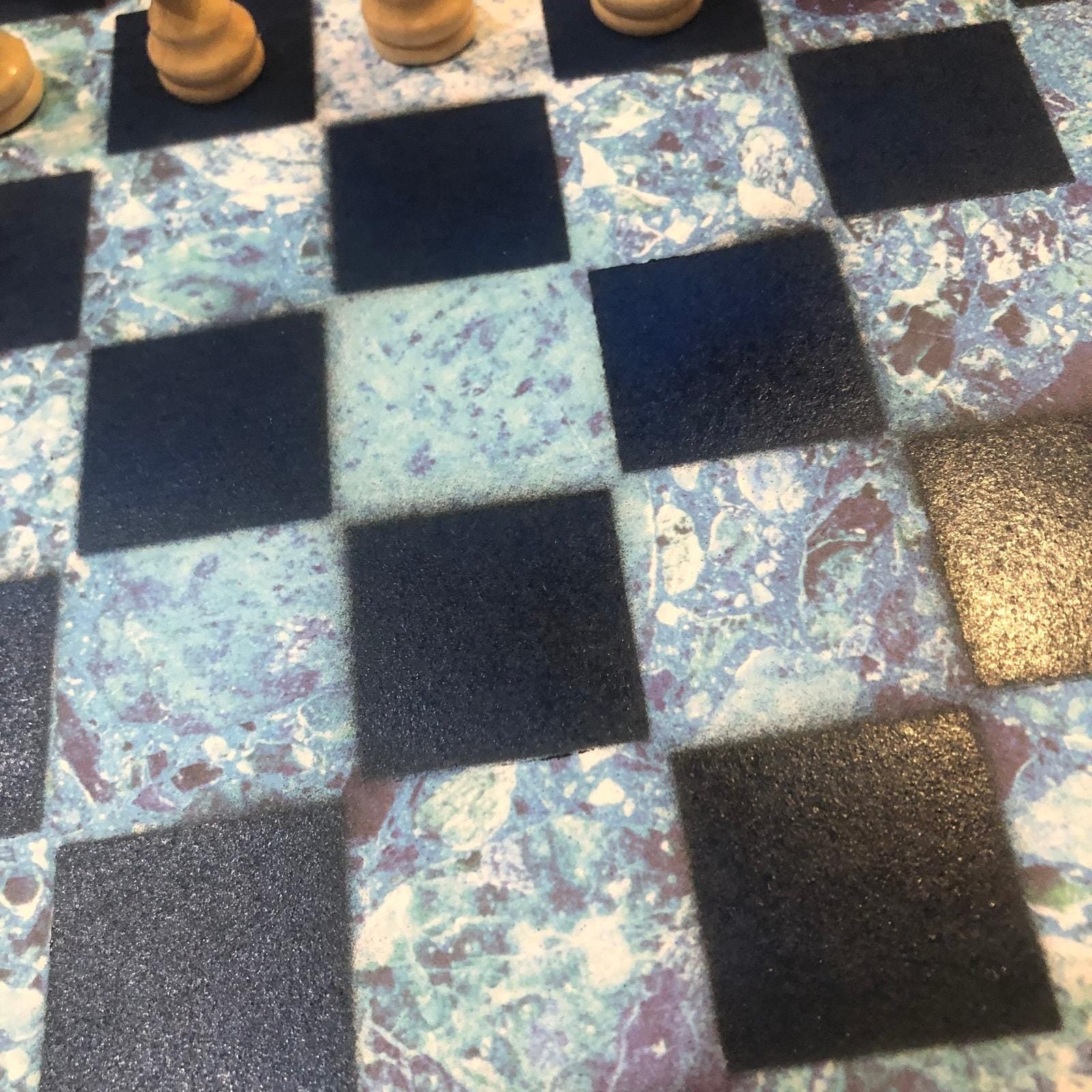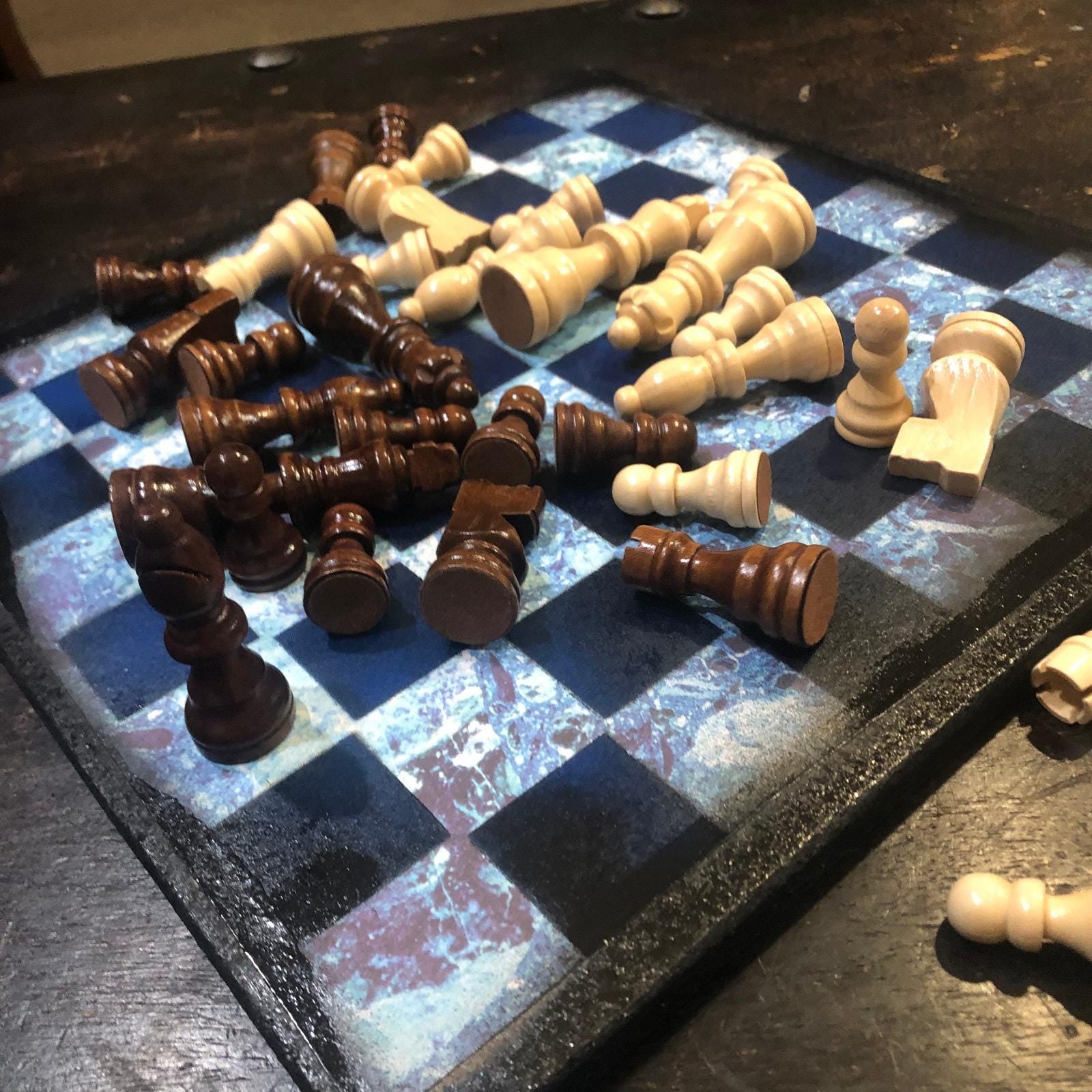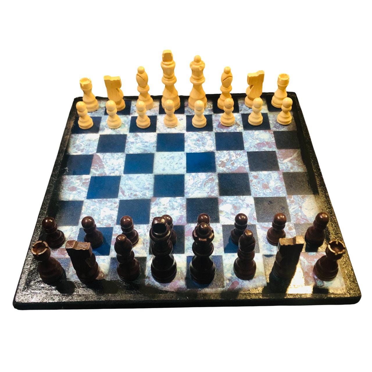 Introducing our exclusive Handcrafted Wooden Chess Set, meticulously designed with precision and care. Measuring 12 inches by 12 inches, this chess set features a beautifully painted particle board layered with a sheet of scrapbook paper board that doubles as a work of art. Each set is a unique, one-of-a-kind creation, crafted by hand to ensure that no two sets are alike. Elevate your gaming experience with this exceptional chess set that combines vibrant design with the touch of artisan craftsmanship. This chess board comes with chess pieces and is handcrafted as a one of one