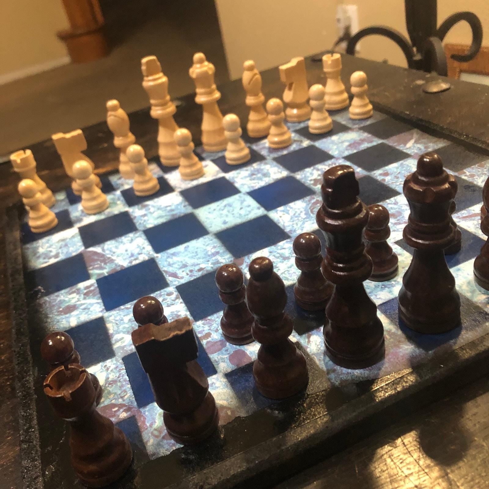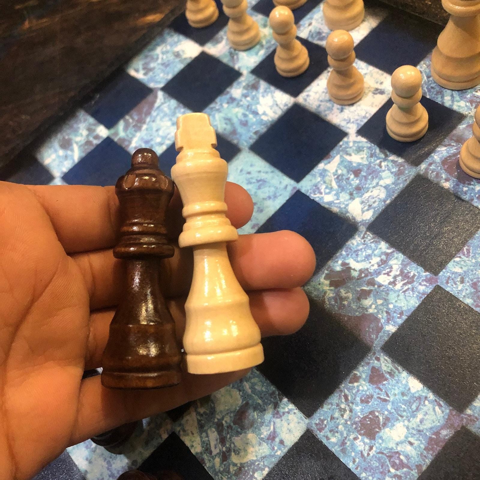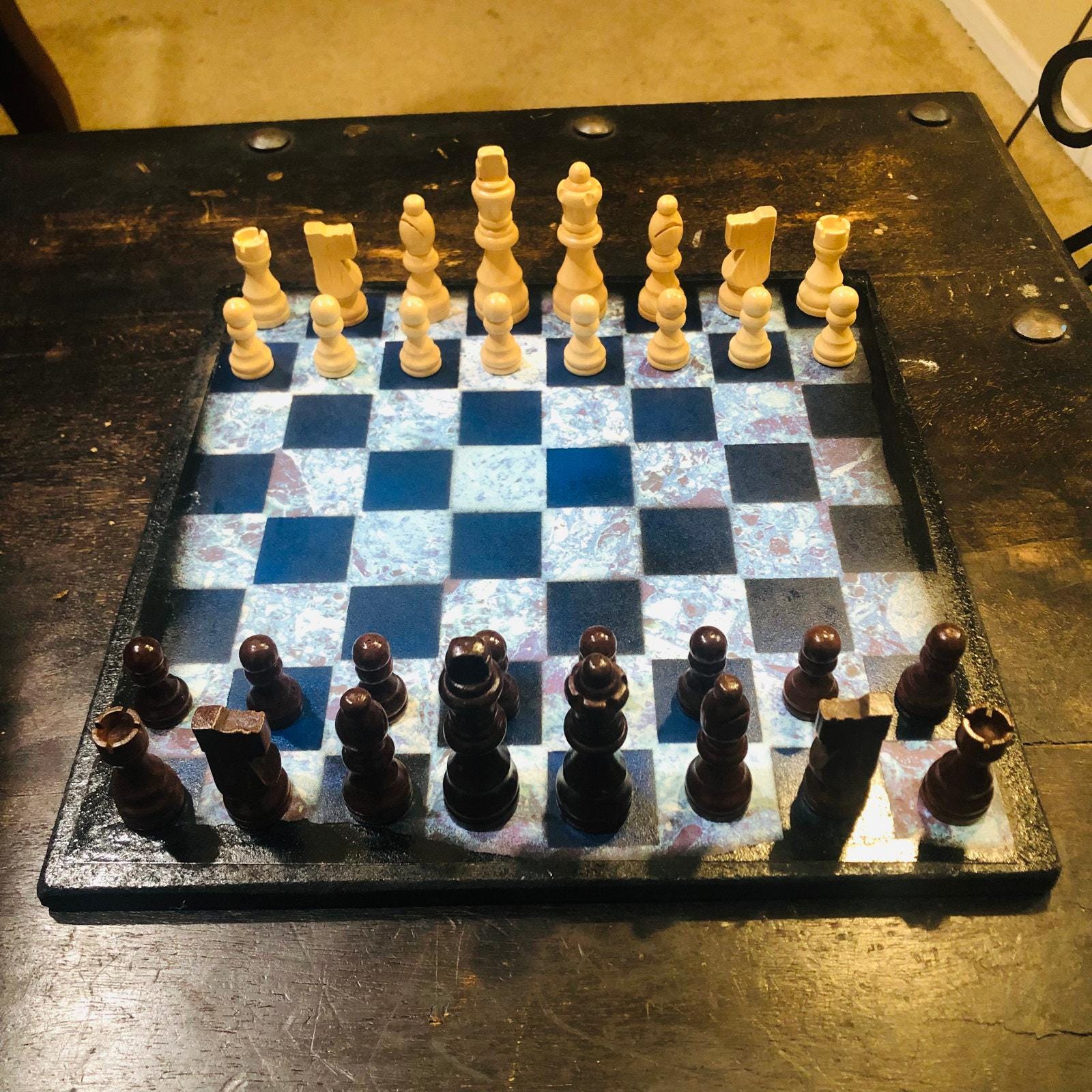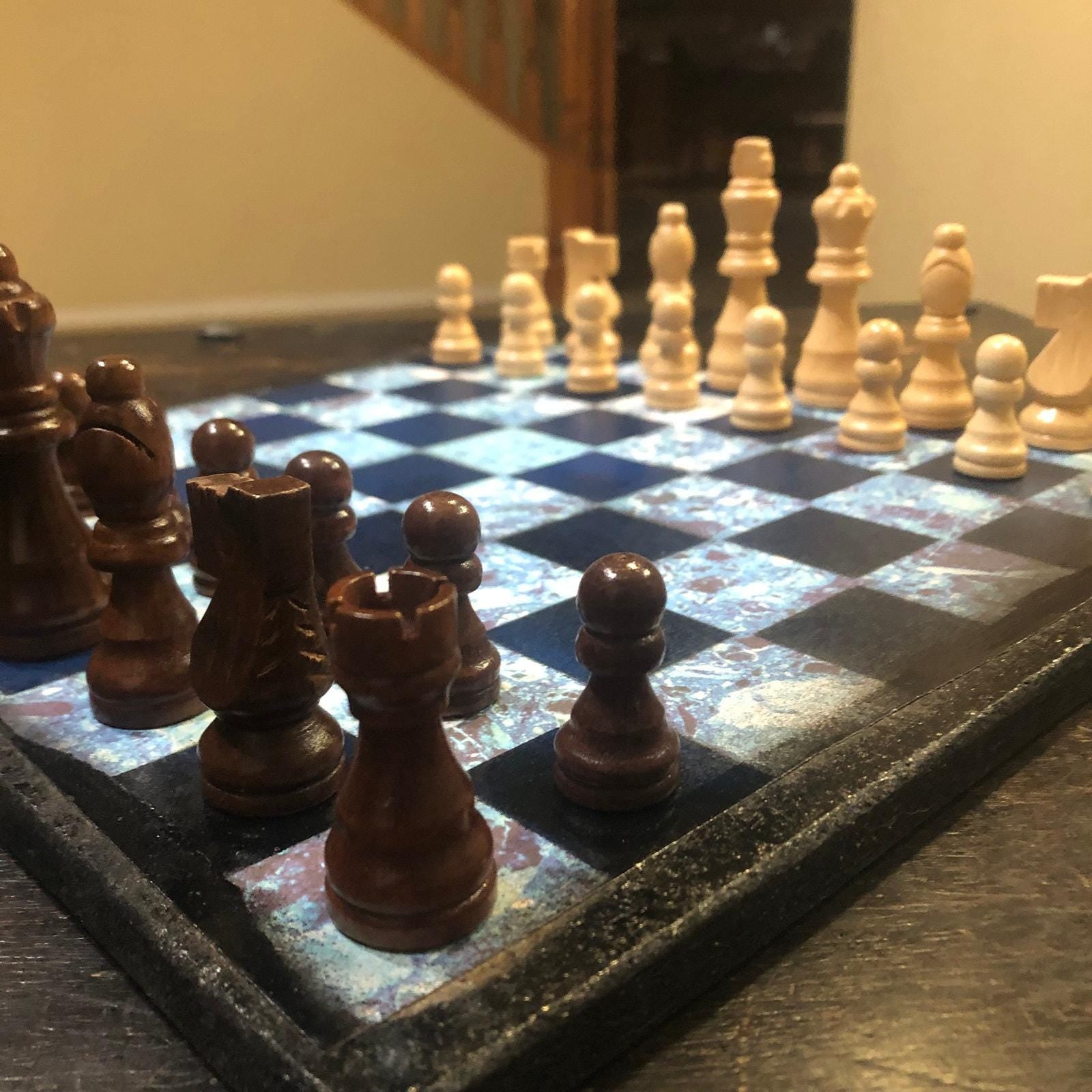Introducing our exclusive Handcrafted Wooden Chess Set, meticulously designed with precision and care. Measuring 12 inches by 12 inches, this chess set features a beautifully painted particle board layered with a sheet of scrapbook paper board that doubles as a work of art. Each set is a unique, one-of-a-kind creation, crafted by hand to ensure that no two sets are alike. Elevate your gaming experience with this exceptional chess set that combines vibrant design with the touch of artisan craftsmanship. This chess board comes with chess pieces and is handcrafted as a one of one