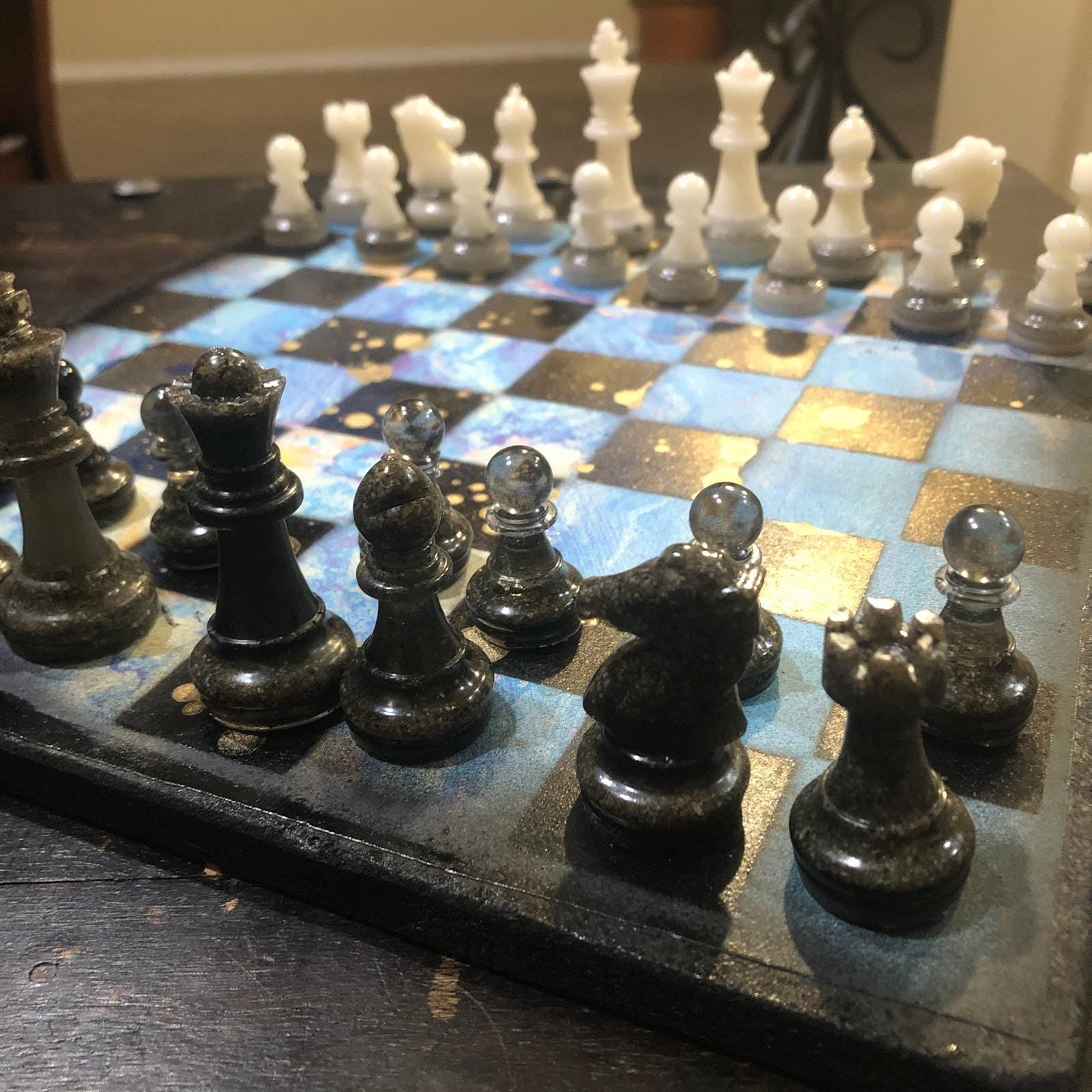 Scrapbook Chess Set - Blue Crystal Gold (Resin Pieces)