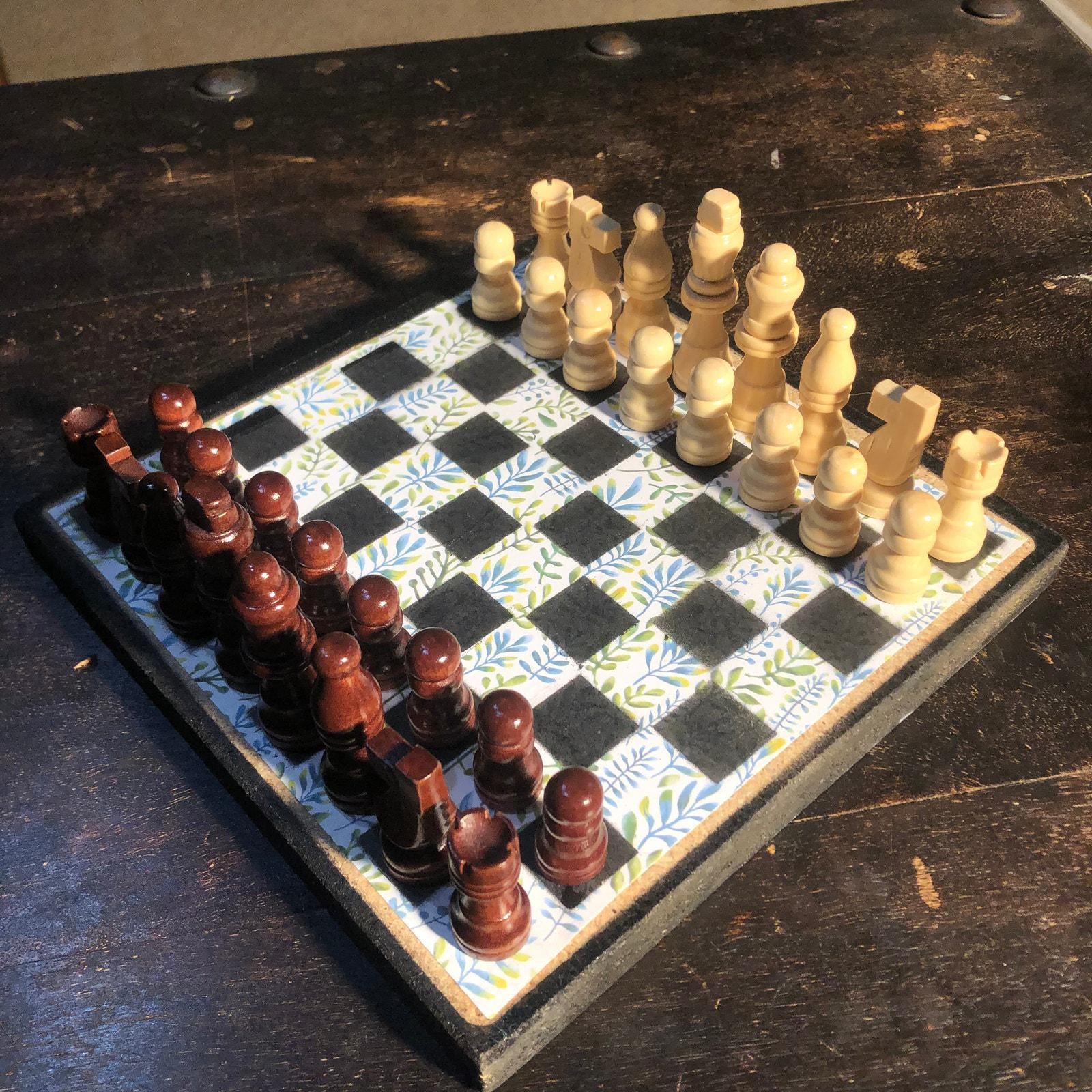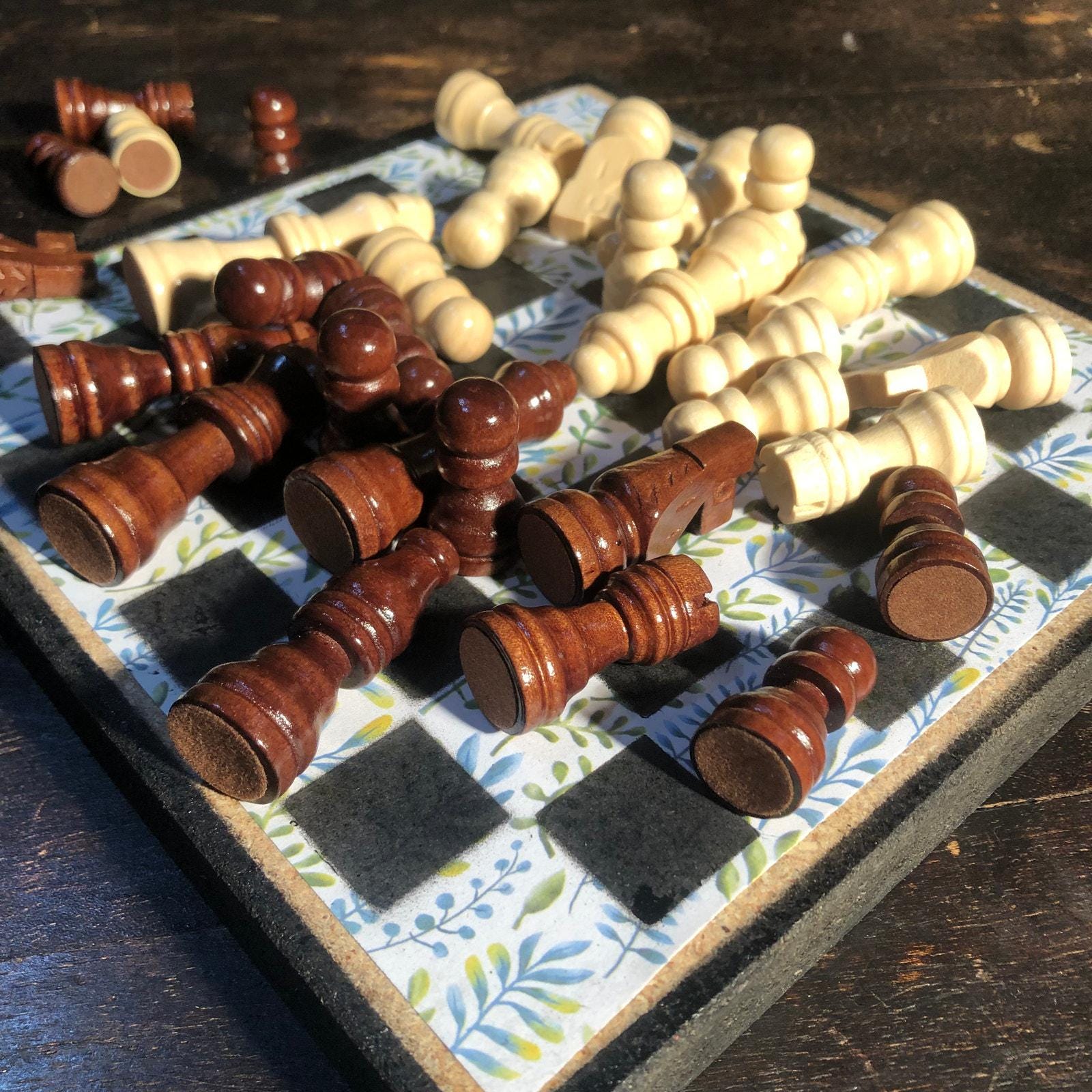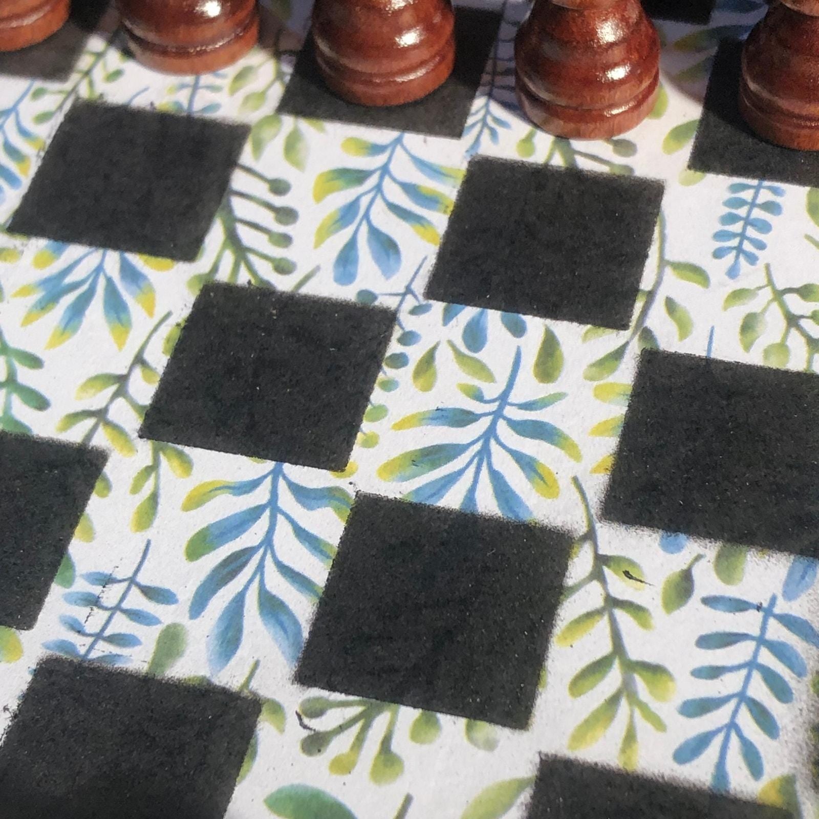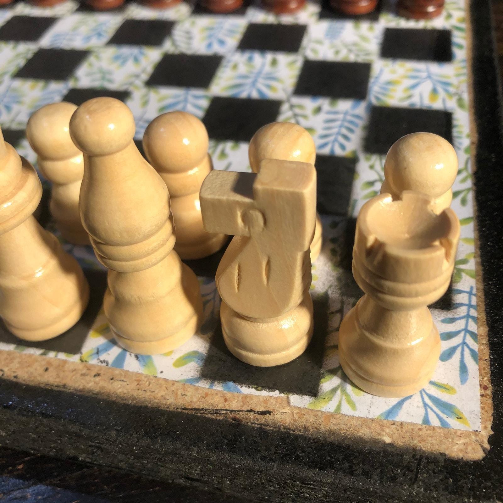 Introducing our exclusive Handcrafted Wooden Chess Set, meticulously designed with precision and care. Measuring 8 inches by 8 inches, this chess set features a beautifully painted particle board layered with a sheet of scrapbook paper board that doubles as a work of art. Each set is a unique, one-of-a-kind creation, crafted by hand to ensure that no two sets are alike. Elevate your gaming experience with this exceptional chess set that combines vibrant design with the touch of artisan craftsmanship. This chess board comes with chess pieces and is handcrafted as a one of one