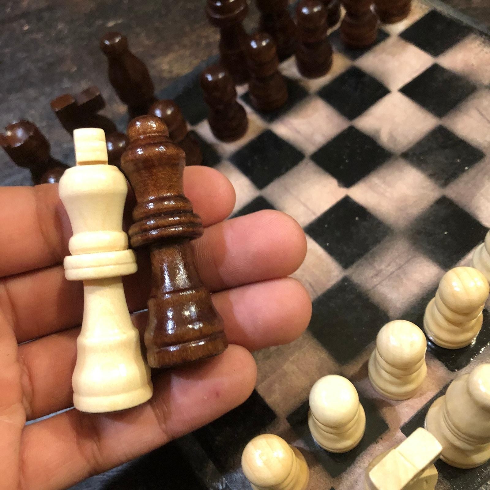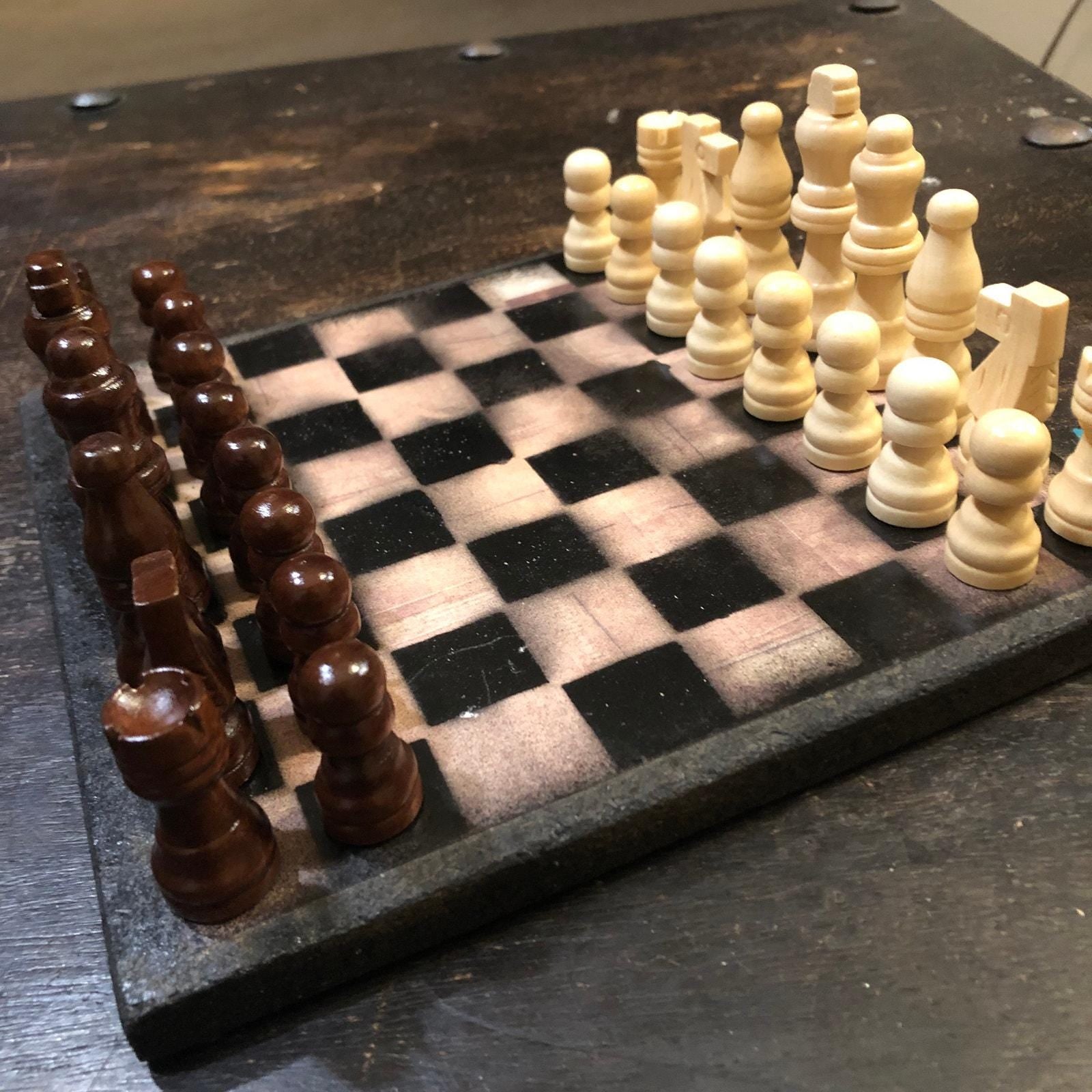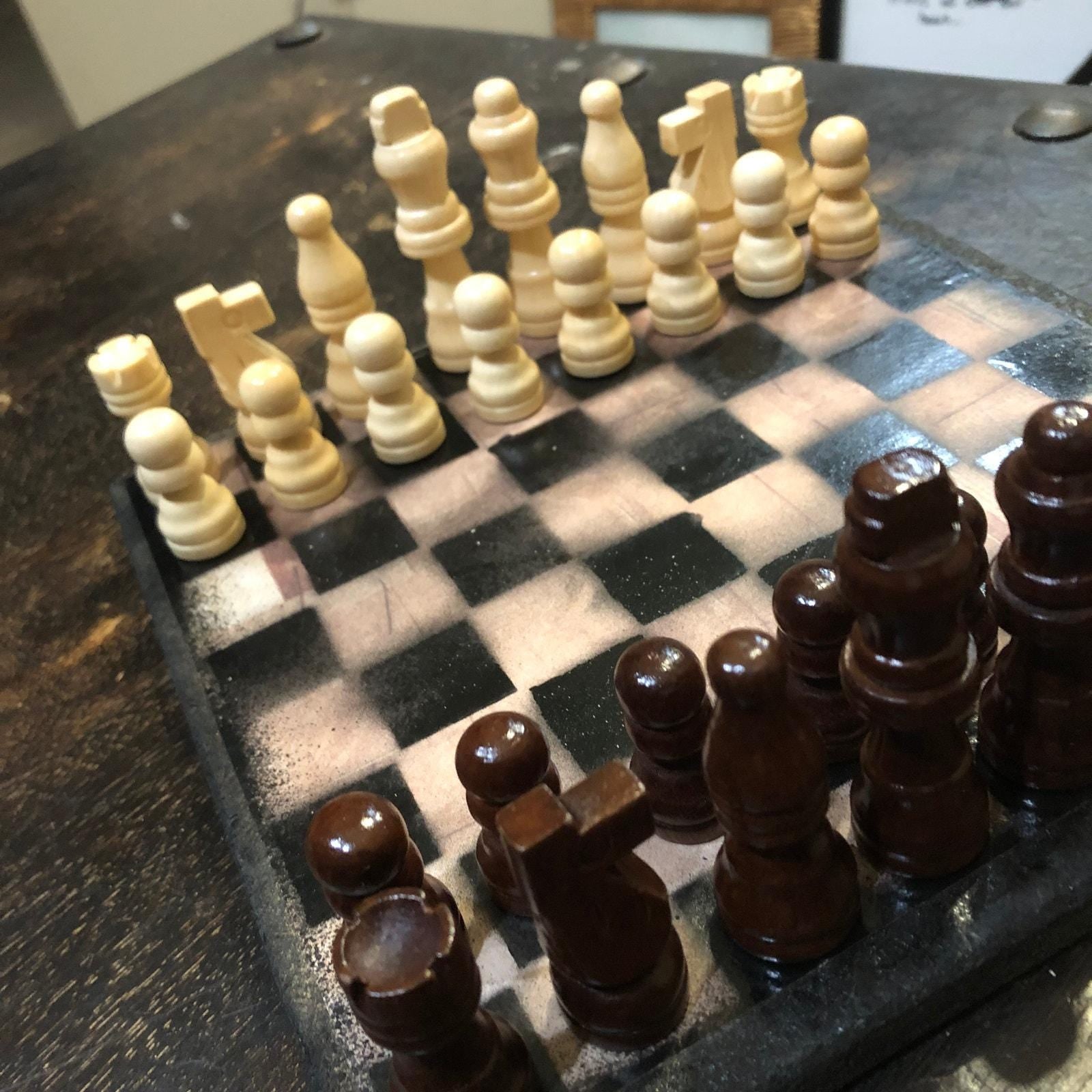 Introducing our exclusive Handcrafted Wooden Chess Set, meticulously designed with precision and care. Measuring 8 inches by 8 inches, this chess set features a beautifully painted particle board layered with a sheet of scrapbook paper board that doubles as a work of art. Each set is a unique, one-of-a-kind creation, crafted by hand to ensure that no two sets are alike. Elevate your gaming experience with this exceptional chess set that combines vibrant design with the touch of artisan craftsmanship. This chess board comes with chess pieces and is handcrafted as a one of one