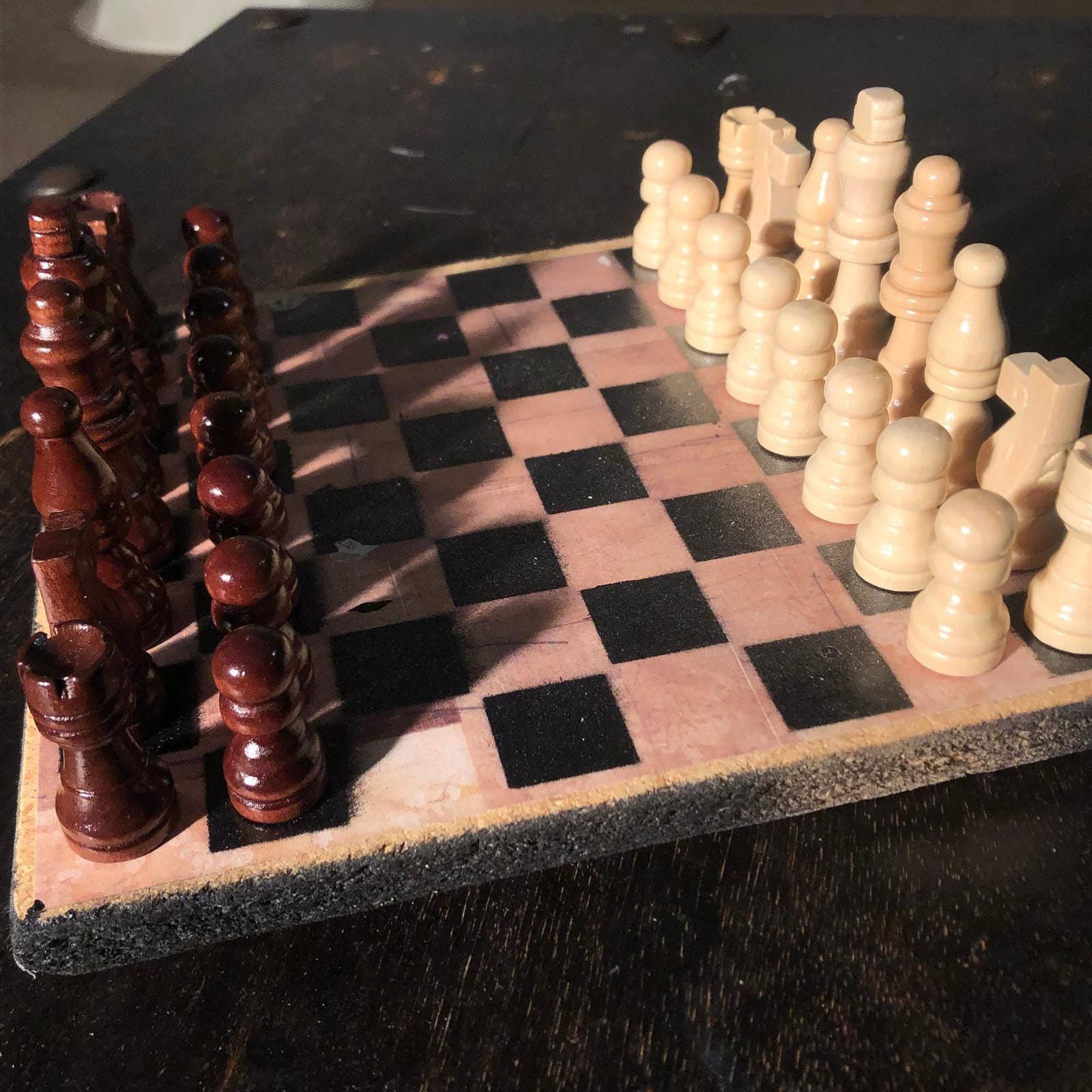 Introducing our exclusive Handcrafted Wooden Chess Set, meticulously designed with precision and care. Measuring 8 inches by 8 inches, this chess set features a beautifully painted particle board layered with a sheet of scrapbook paper board that doubles as a work of art. Each set is a unique, one-of-a-kind creation, crafted by hand to ensure that no two sets are alike. Elevate your gaming experience with this exceptional chess set that combines vibrant design with the touch of artisan craftsmanship. This chess board comes with chess pieces and is handcrafted as a one of one