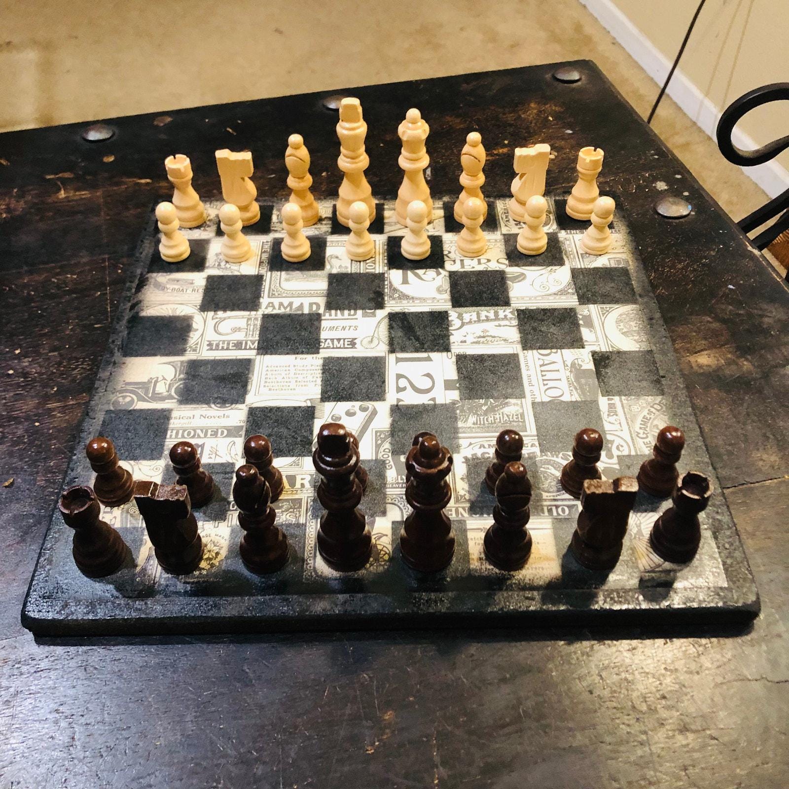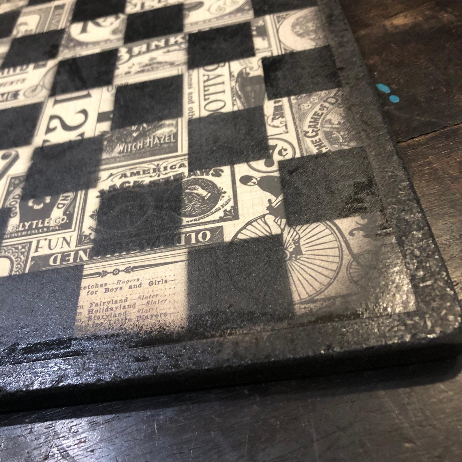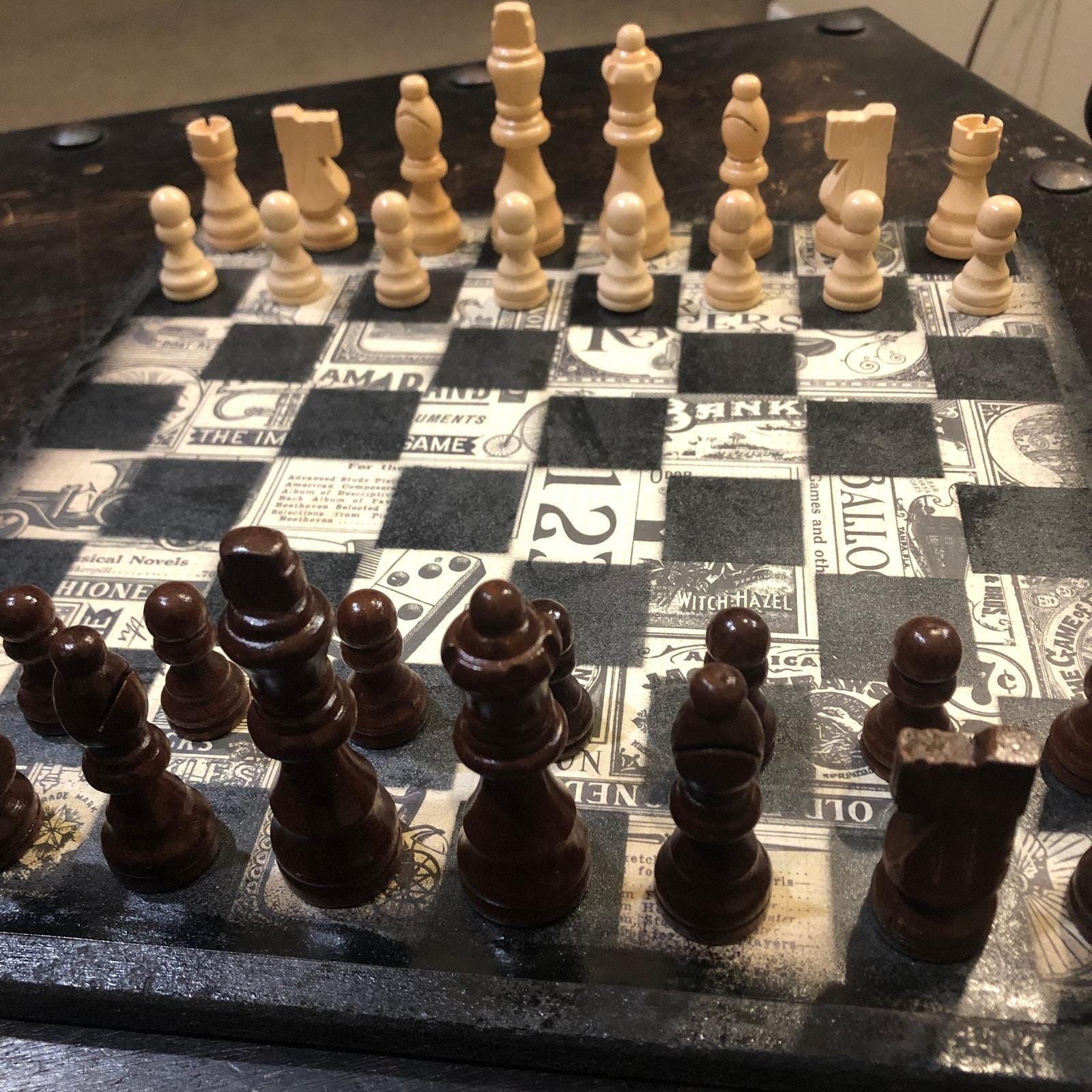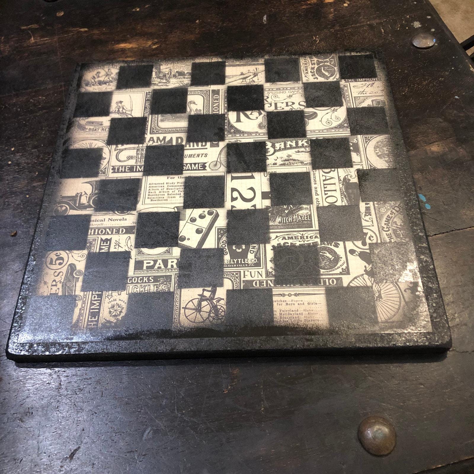 Introducing our exclusive Handcrafted Wooden Chess Set, meticulously designed with precision and care. Measuring 12 inches by 12 inches, this chess set features a beautifully painted particle board layered with a sheet of scrapbook paper board that doubles as a work of art. Each set is a unique, one-of-a-kind creation, crafted by hand to ensure that no two sets are alike. Elevate your gaming experience with this exceptional chess set that combines vibrant design with the touch of artisan craftsmanship. This chess board comes with chess pieces and is handcrafted as a one of one