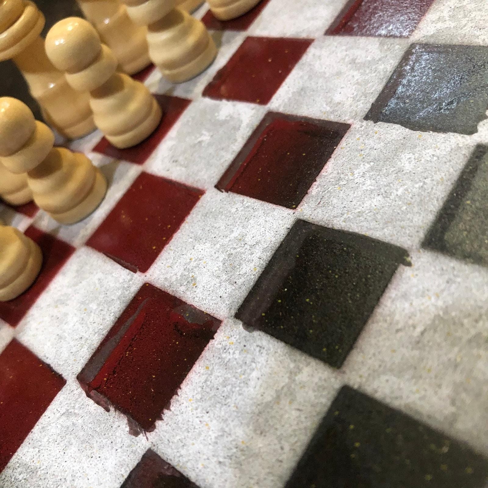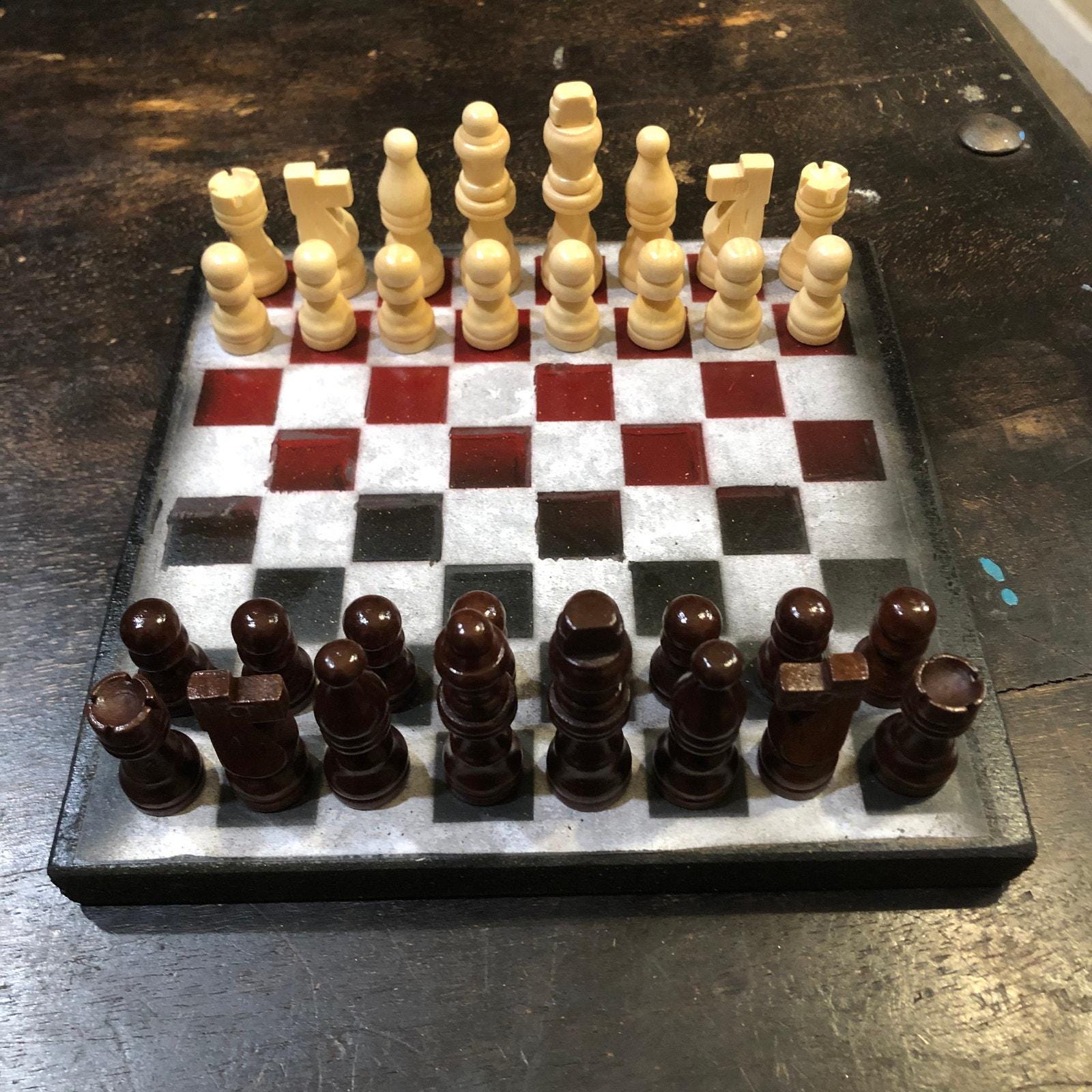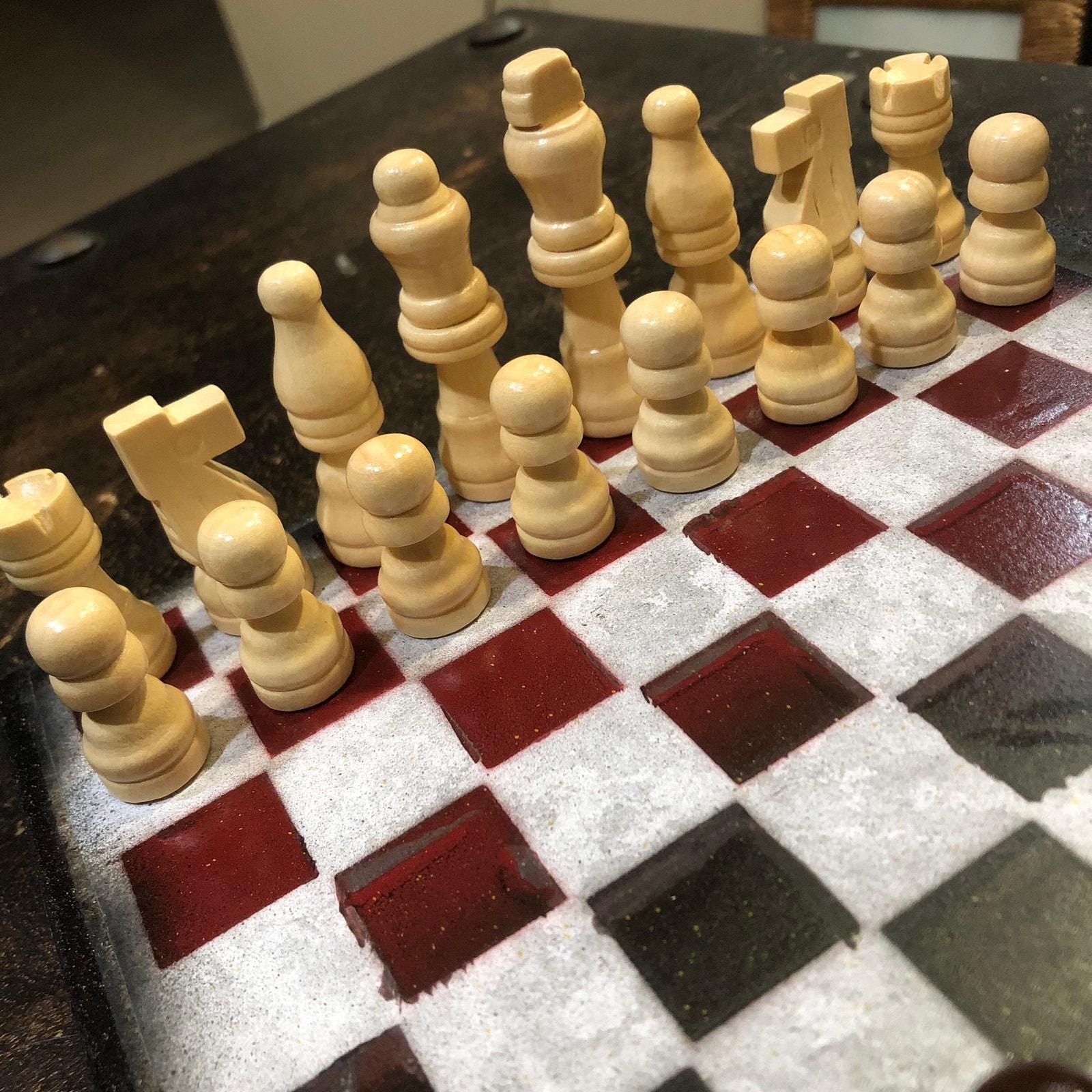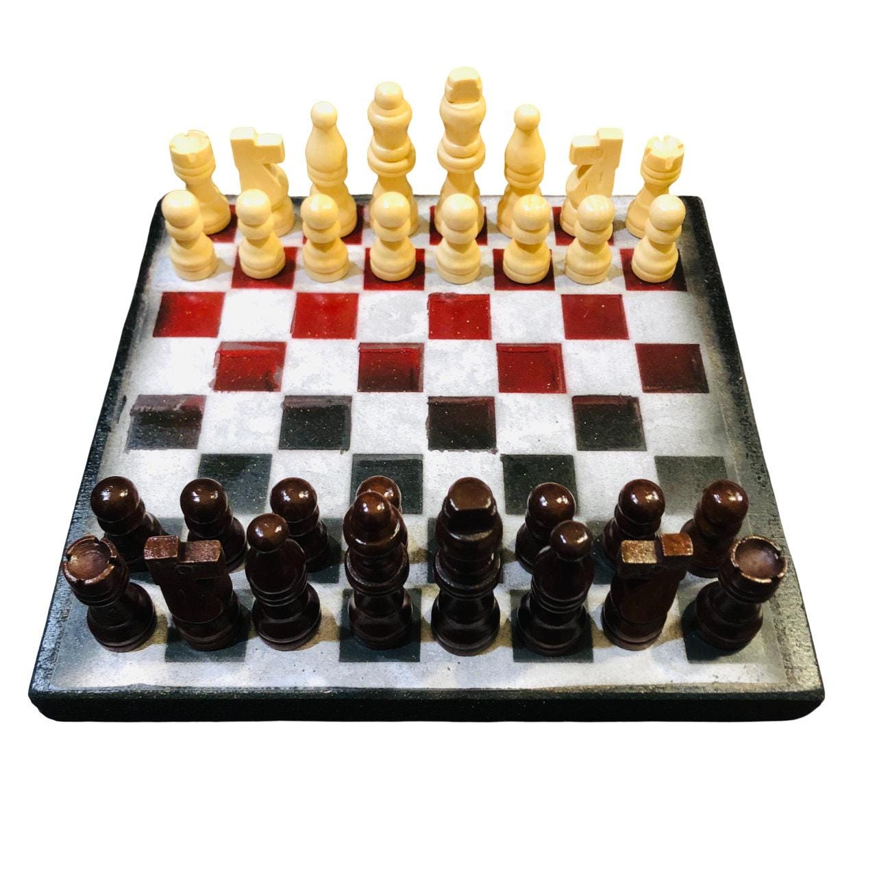 Introducing our exclusive Handcrafted Wooden Chess Set, meticulously designed with precision and care. Measuring 8 inches by 8 inches, this chess set features a beautifully painted particle board layered with a sheet of scrapbook paper board that doubles as a work of art. Each set is a unique, one-of-a-kind creation, crafted by hand to ensure that no two sets are alike. Elevate your gaming experience with this exceptional chess set that combines vibrant design with the touch of artisan craftsmanship. This chess board comes with chess pieces and is handcrafted as a one of one