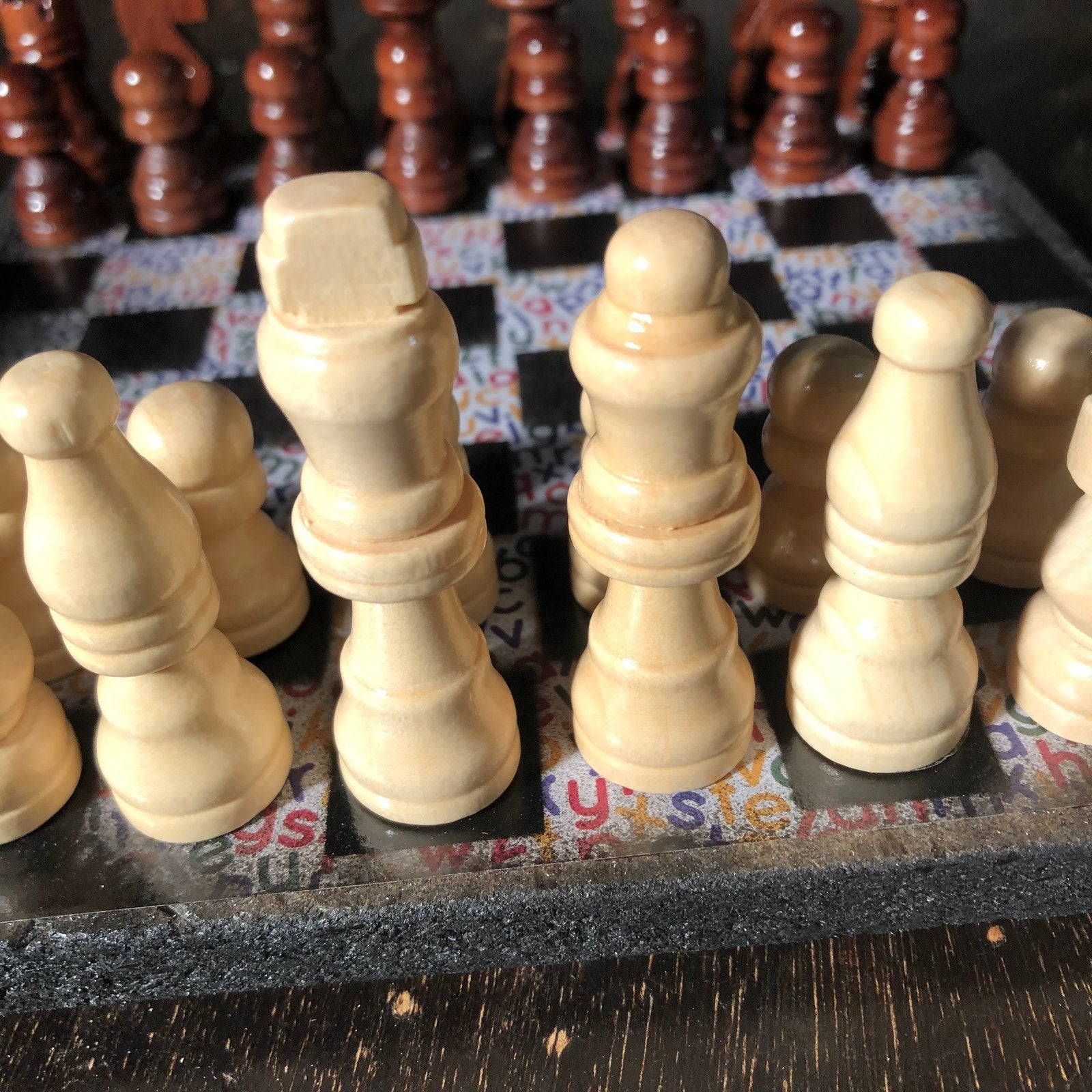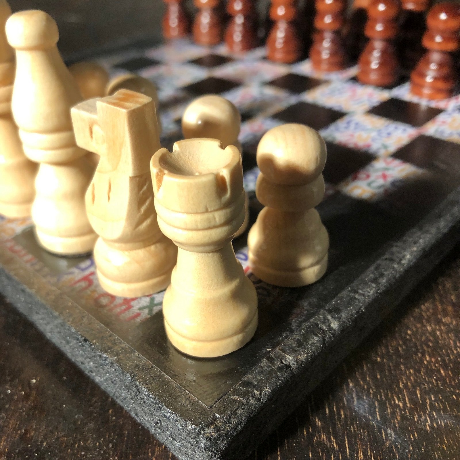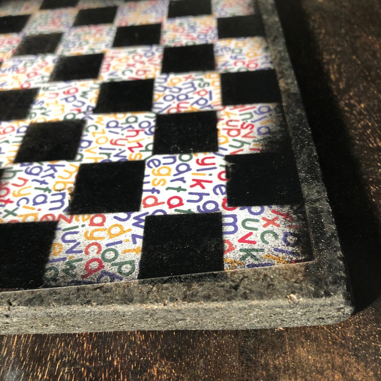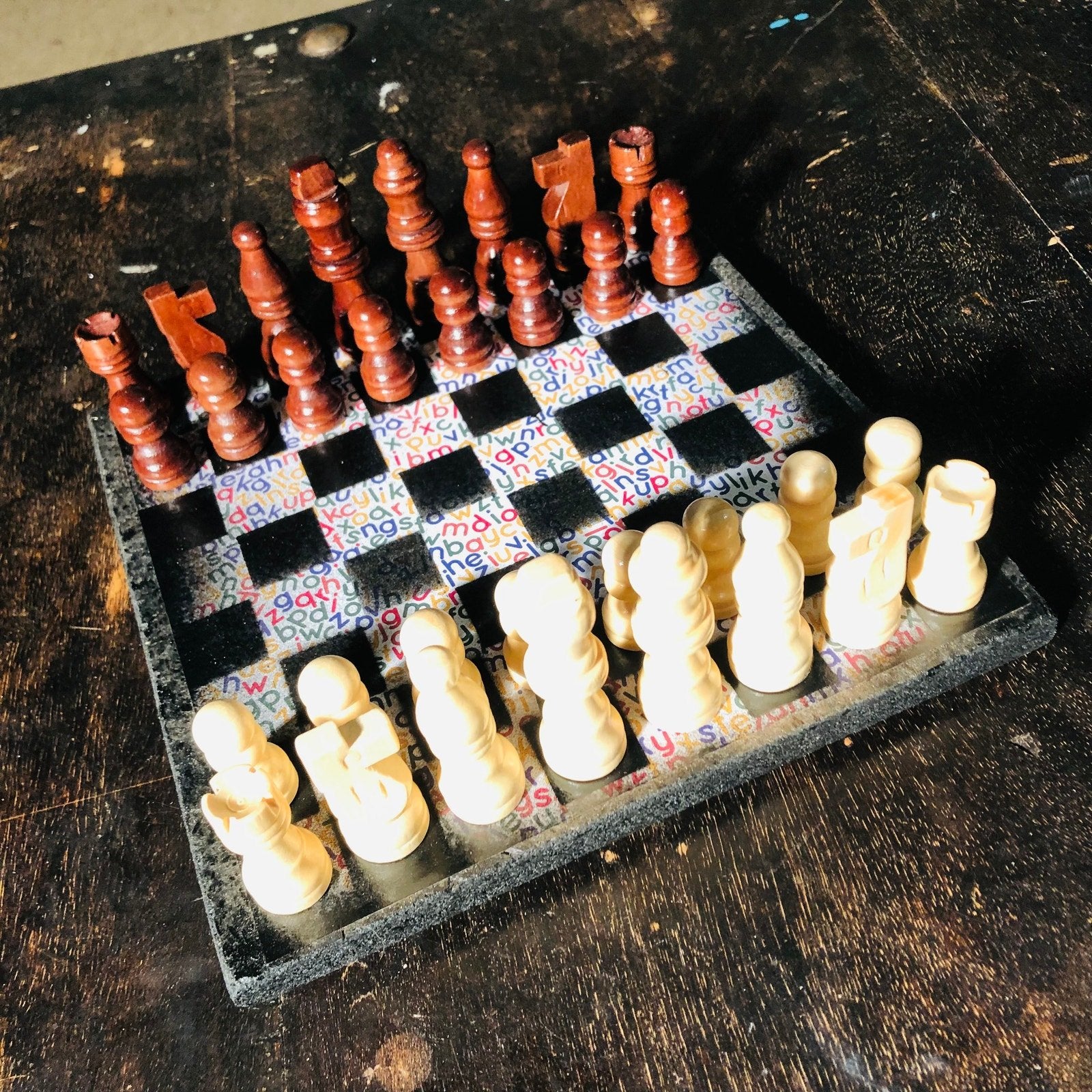 Introducing our exclusive Handcrafted Wooden Chess Set, meticulously designed with precision and care. Measuring 8 inches by 8 inches, this chess set features a beautifully painted particle board layered with a sheet of scrapbook paper board that doubles as a work of art. Each set is a unique, one-of-a-kind creation, crafted by hand to ensure that no two sets are alike. Elevate your gaming experience with this exceptional chess set that combines vibrant design with the touch of artisan craftsmanship. This chess board comes with chess pieces and is handcrafted as a one of one
