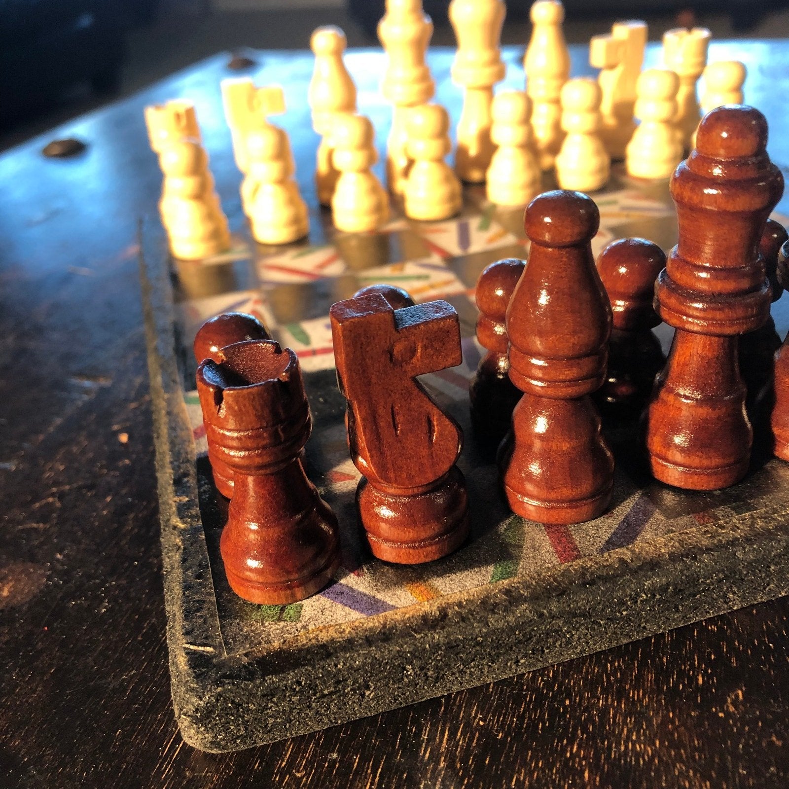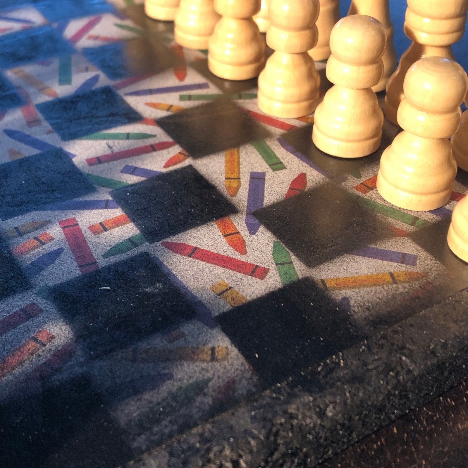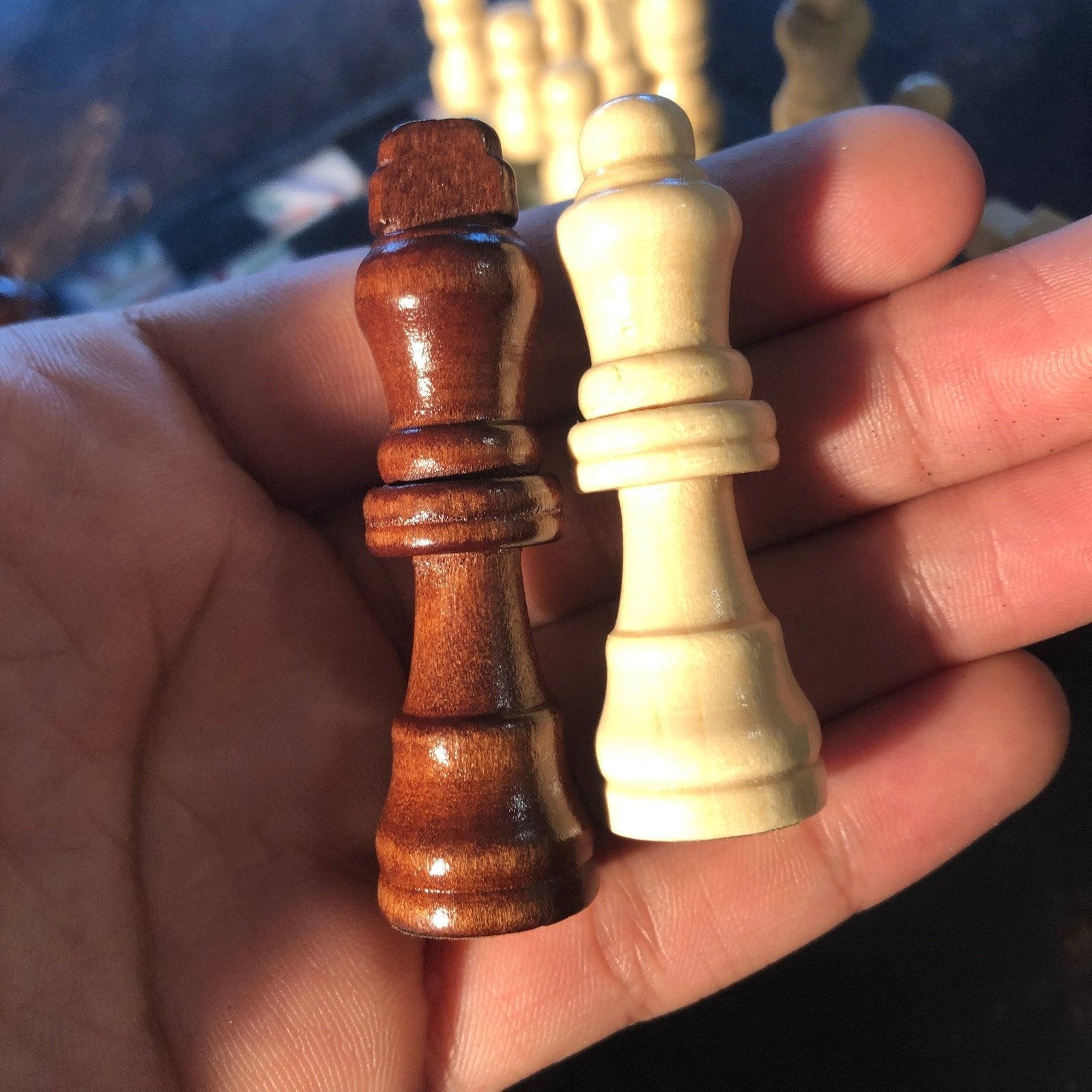 Introducing our exclusive Handcrafted Wooden Chess Set, meticulously designed with precision and care. Measuring 8 inches by 8 inches, this chess set features a beautifully painted particle board layered with a sheet of scrapbook paper board that doubles as a work of art. Each set is a unique, one-of-a-kind creation, crafted by hand to ensure that no two sets are alike. Elevate your gaming experience with this exceptional chess set that combines vibrant design with the touch of artisan craftsmanship. This chess board comes with chess pieces and is handcrafted as a one of one