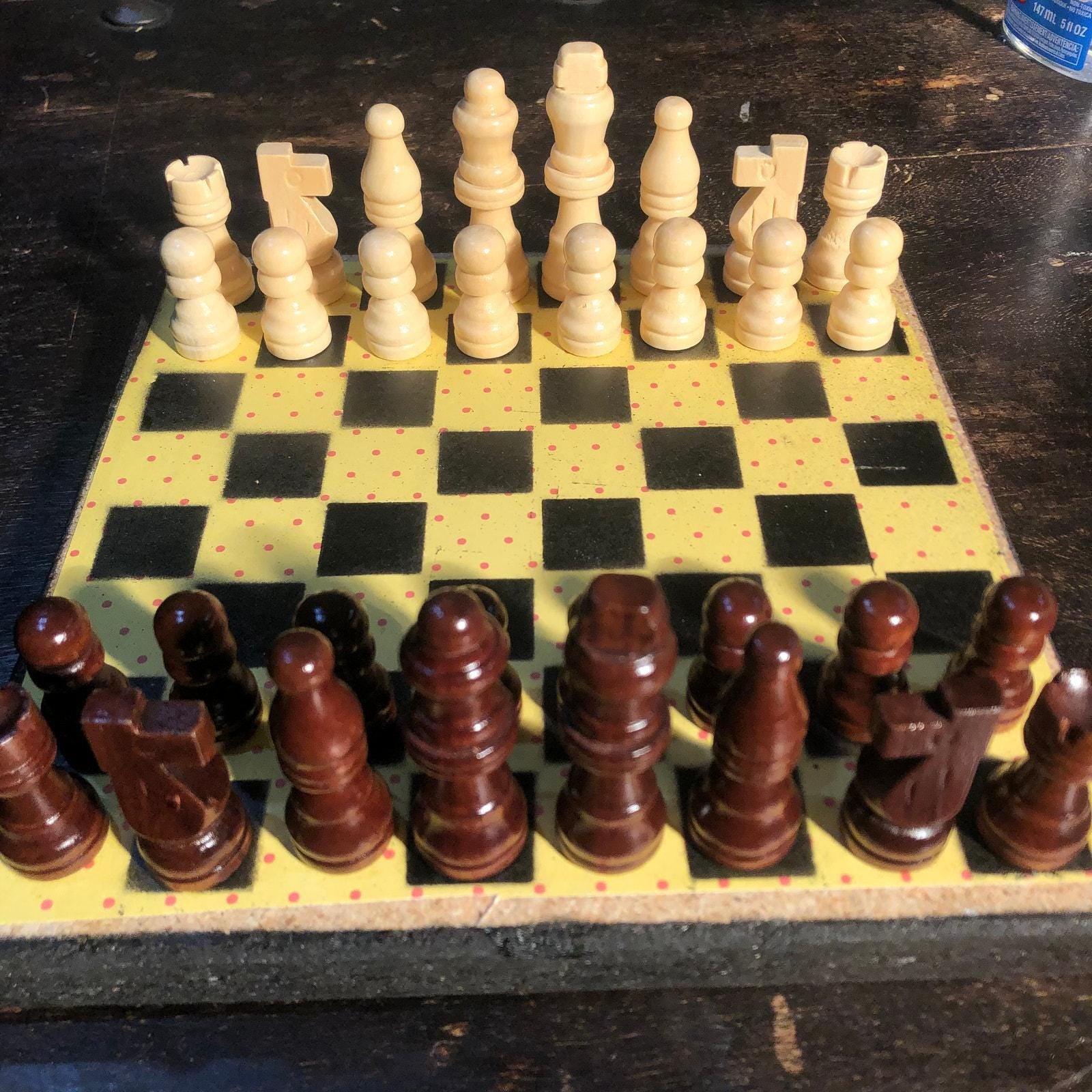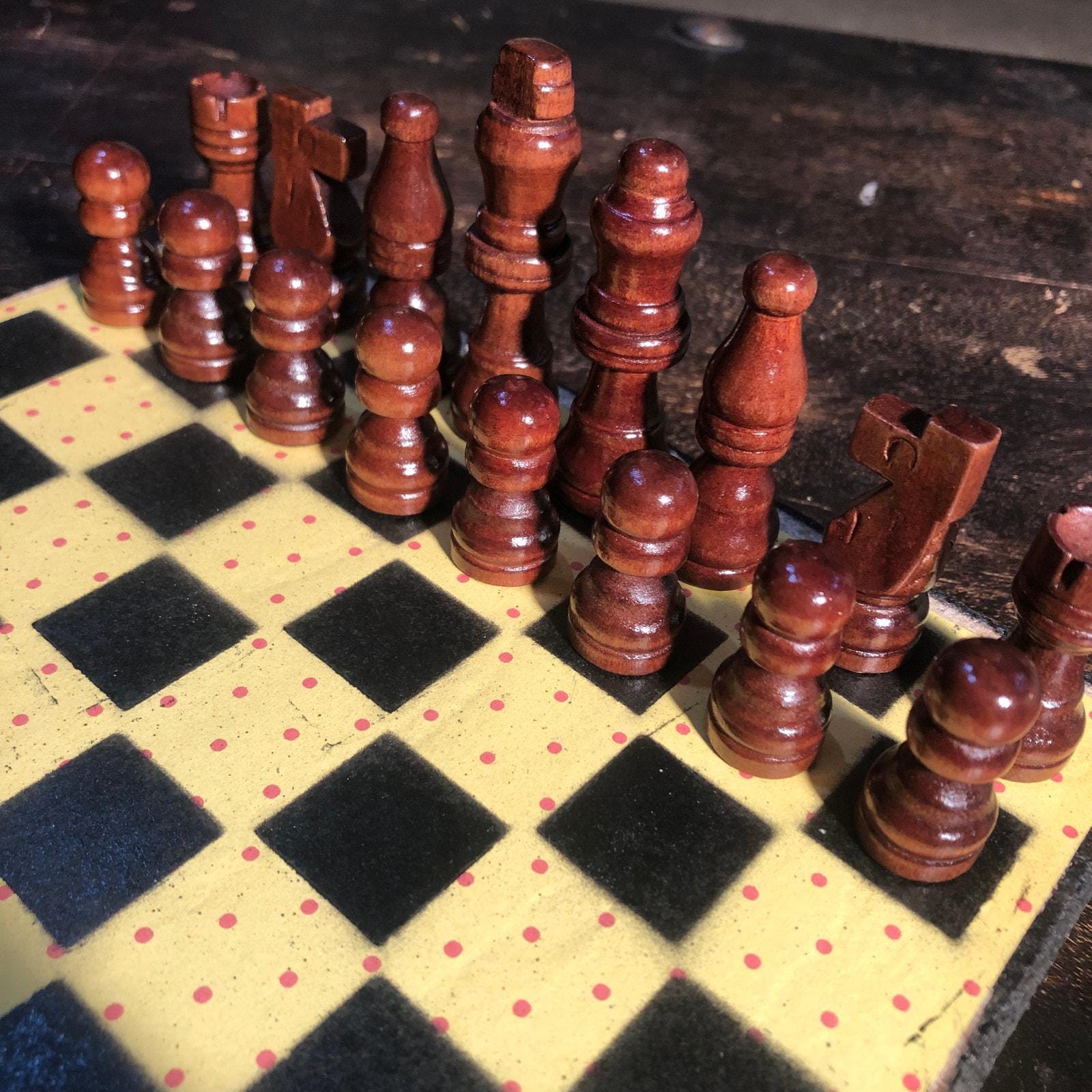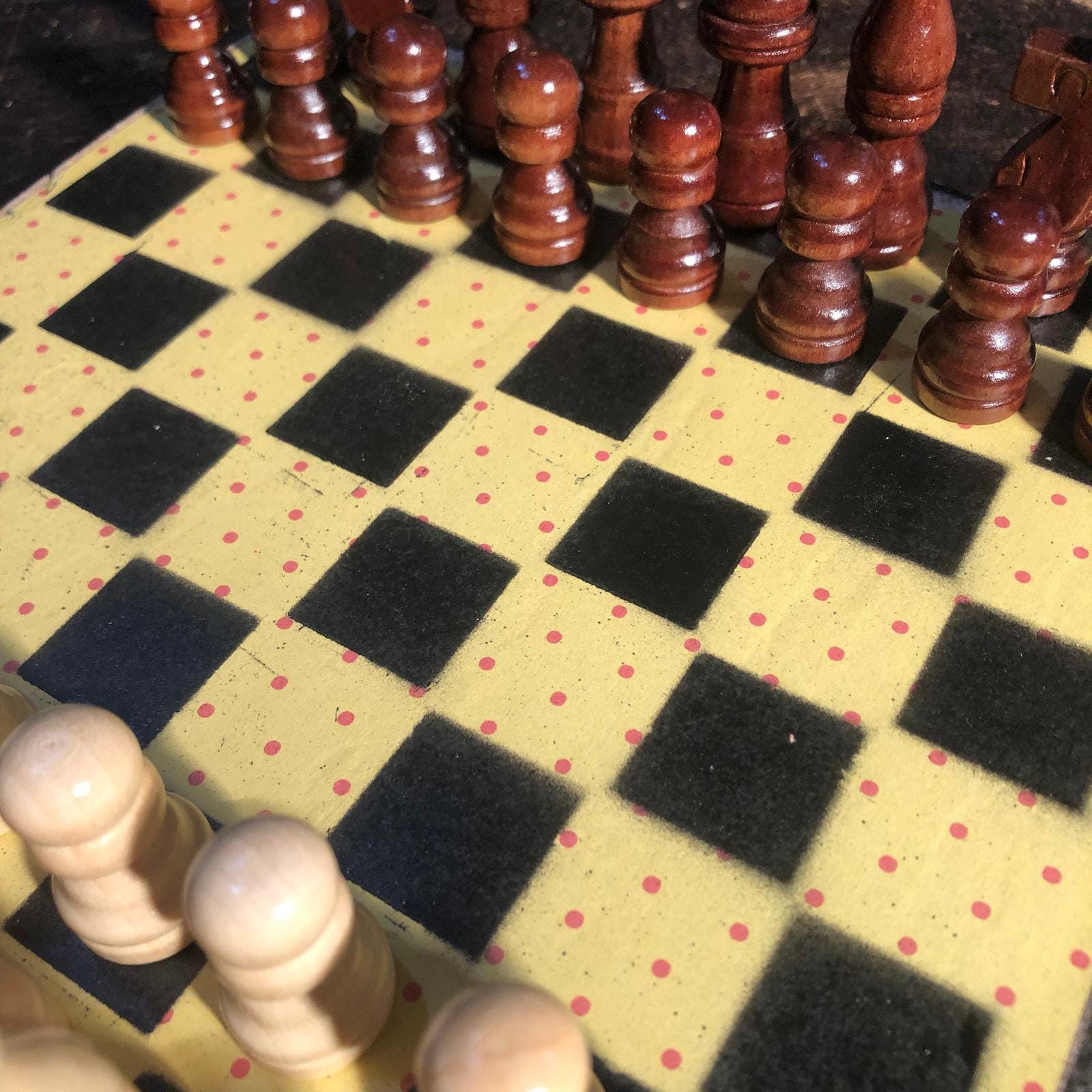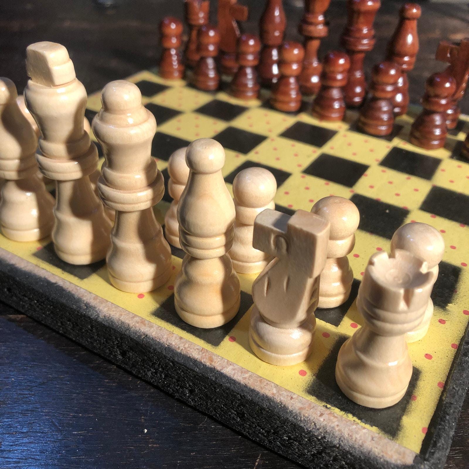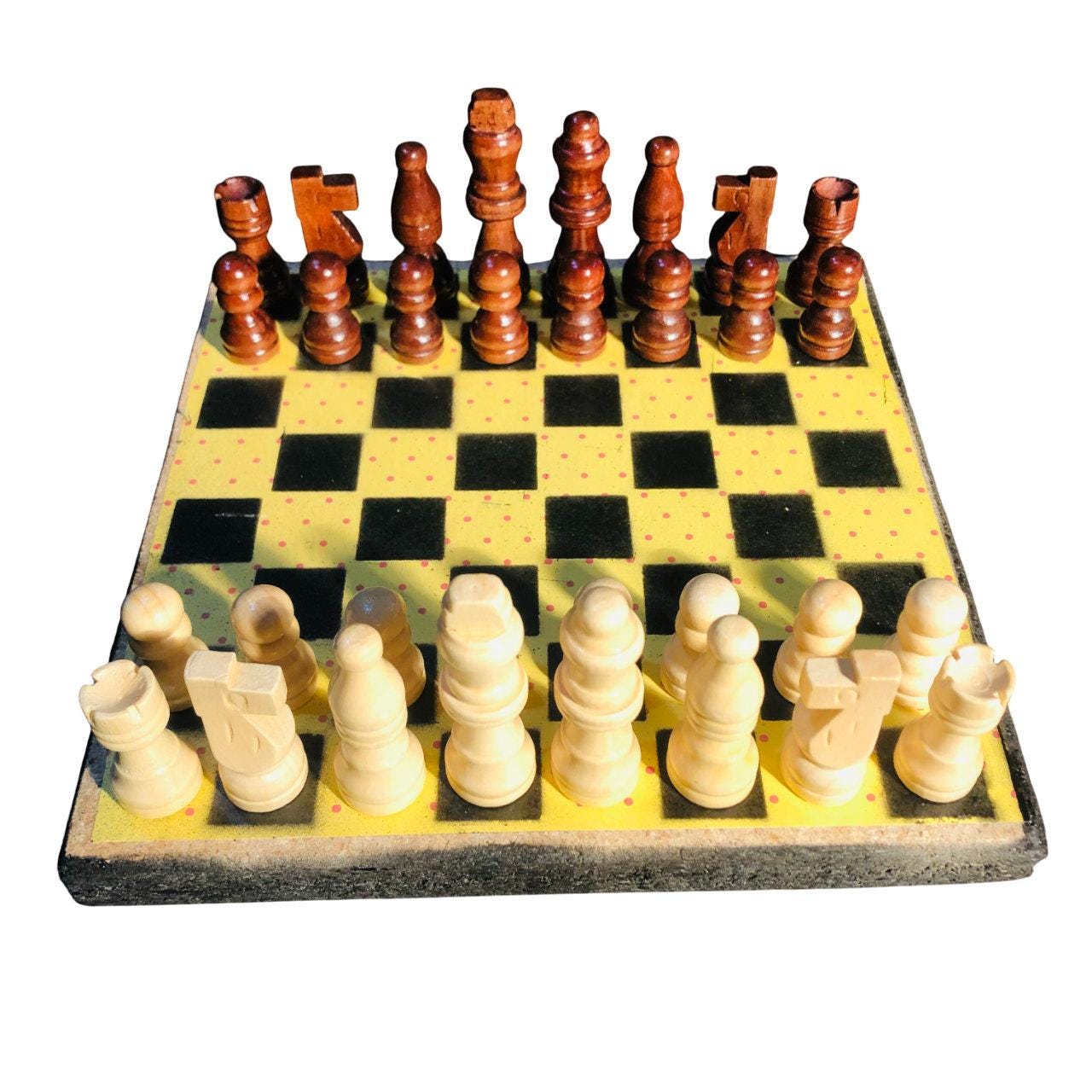 Introducing our exclusive Handcrafted Wooden Chess Set, meticulously designed with precision and care. Measuring 8 inches by 8 inches, this chess set features a beautifully painted particle board layered with a sheet of scrapbook paper board that doubles as a work of art. Each set is a unique, one-of-a-kind creation, crafted by hand to ensure that no two sets are alike. Elevate your gaming experience with this exceptional chess set that combines vibrant design with the touch of artisan craftsmanship. This chess board comes with chess pieces and is handcrafted as a one of one