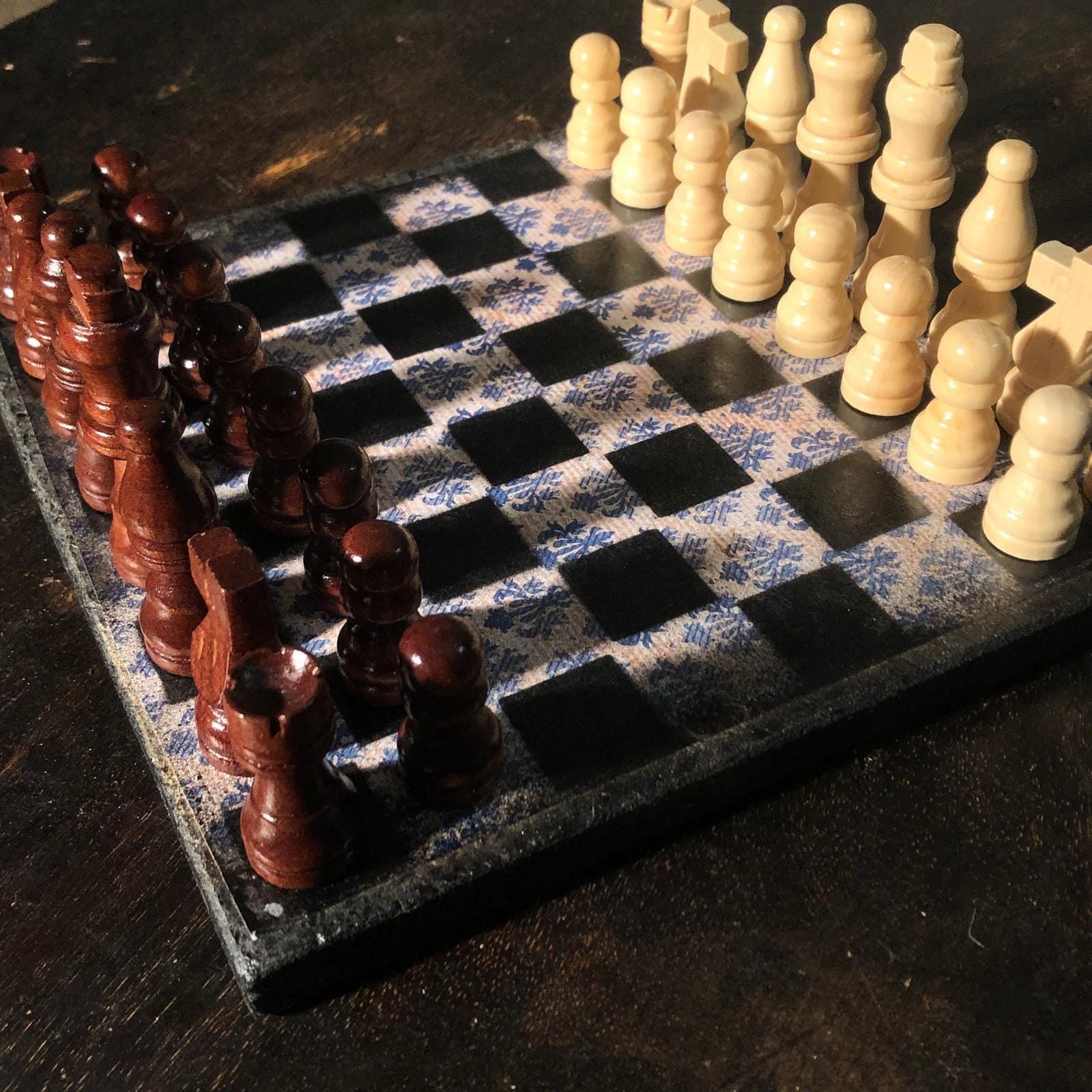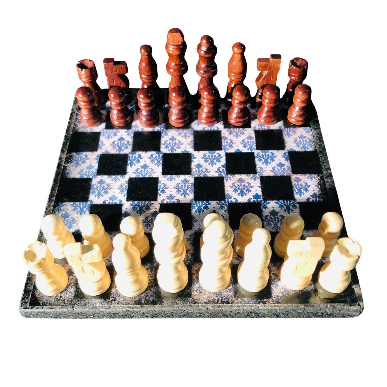 Introducing our exclusive Handcrafted Wooden Chess Set, meticulously designed with precision and care. Measuring 8 inches by 8 inches, this chess set features a beautifully painted particle board layered with a sheet of scrapbook paper board that doubles as a work of art. Each set is a unique, one-of-a-kind creation, crafted by hand to ensure that no two sets are alike. Elevate your gaming experience with this exceptional chess set that combines vibrant design with the touch of artisan craftsmanship. This chess board comes with chess pieces and is handcrafted as a one of one