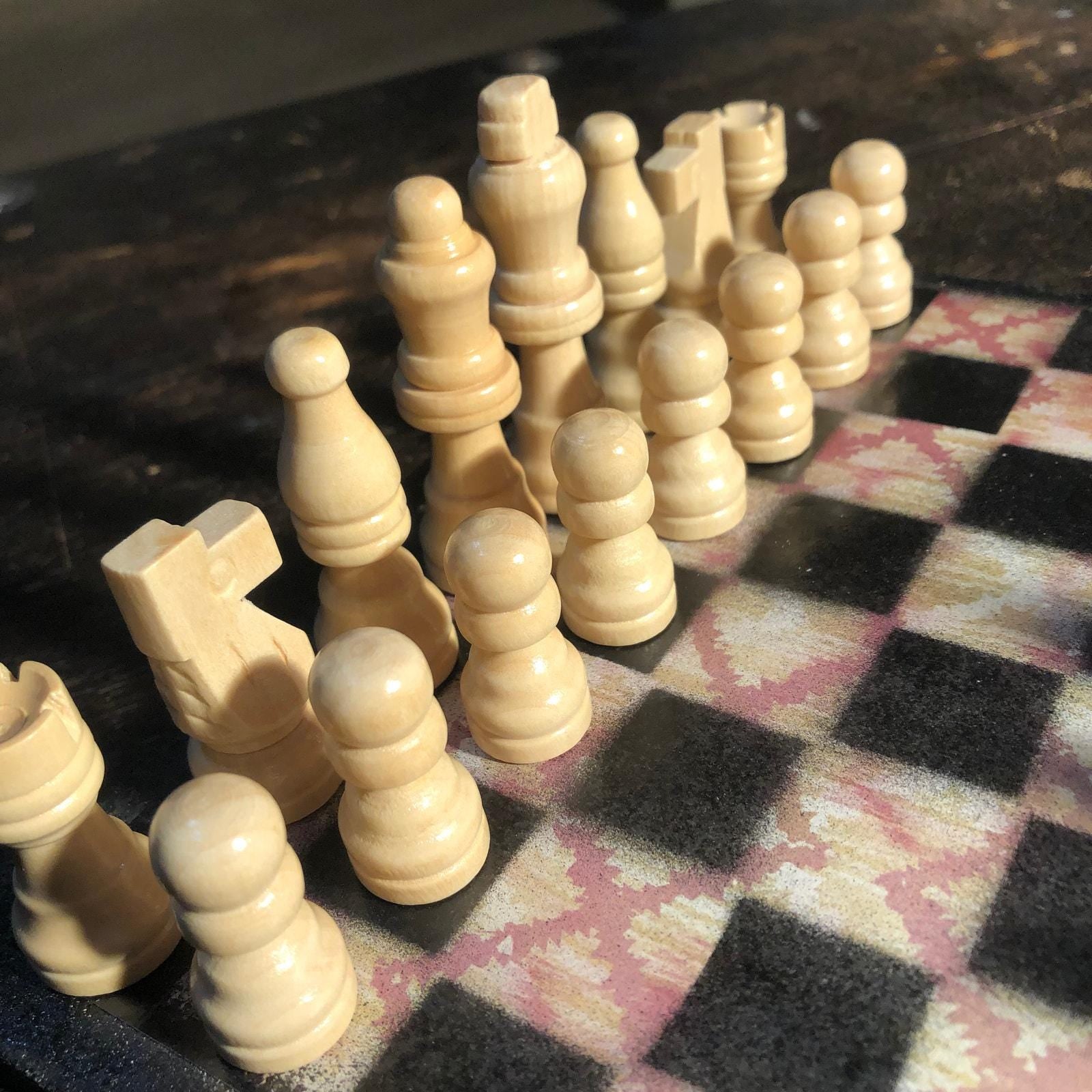 Introducing our exclusive Handcrafted Wooden Chess Set, meticulously designed with precision and care. Measuring 8 inches by 8 inches, this chess set features a beautifully painted particle board layered with a sheet of scrapbook paper board that doubles as a work of art. Each set is a unique, one-of-a-kind creation, crafted by hand to ensure that no two sets are alike. Elevate your gaming experience with this exceptional chess set that combines vibrant design with the touch of artisan craftsmanship. This chess board comes with chess pieces and is handcrafted as a one of one