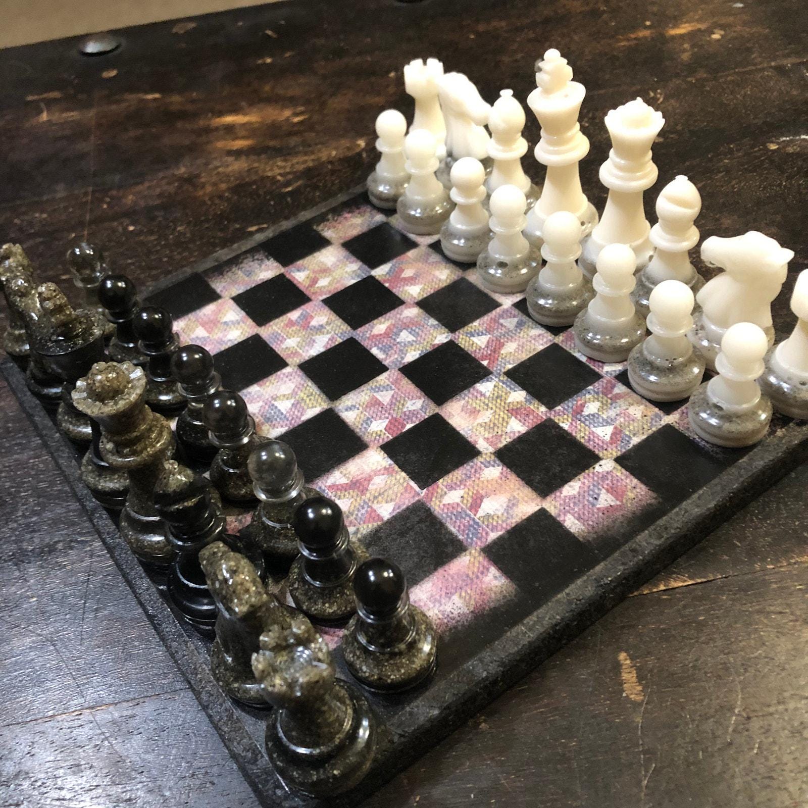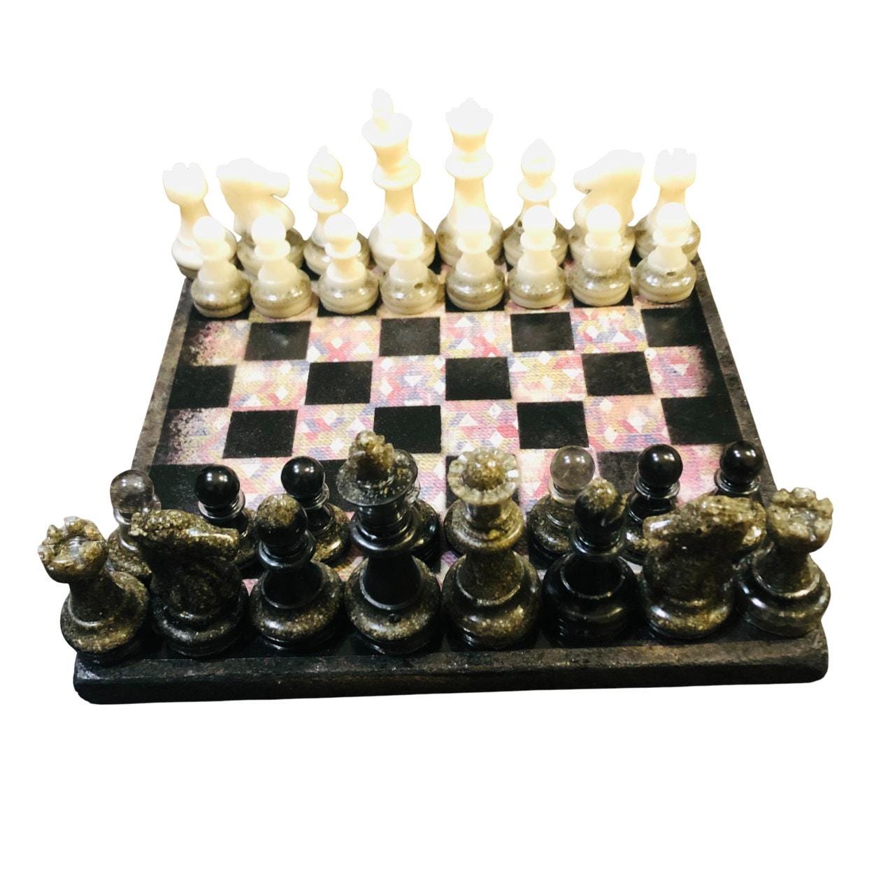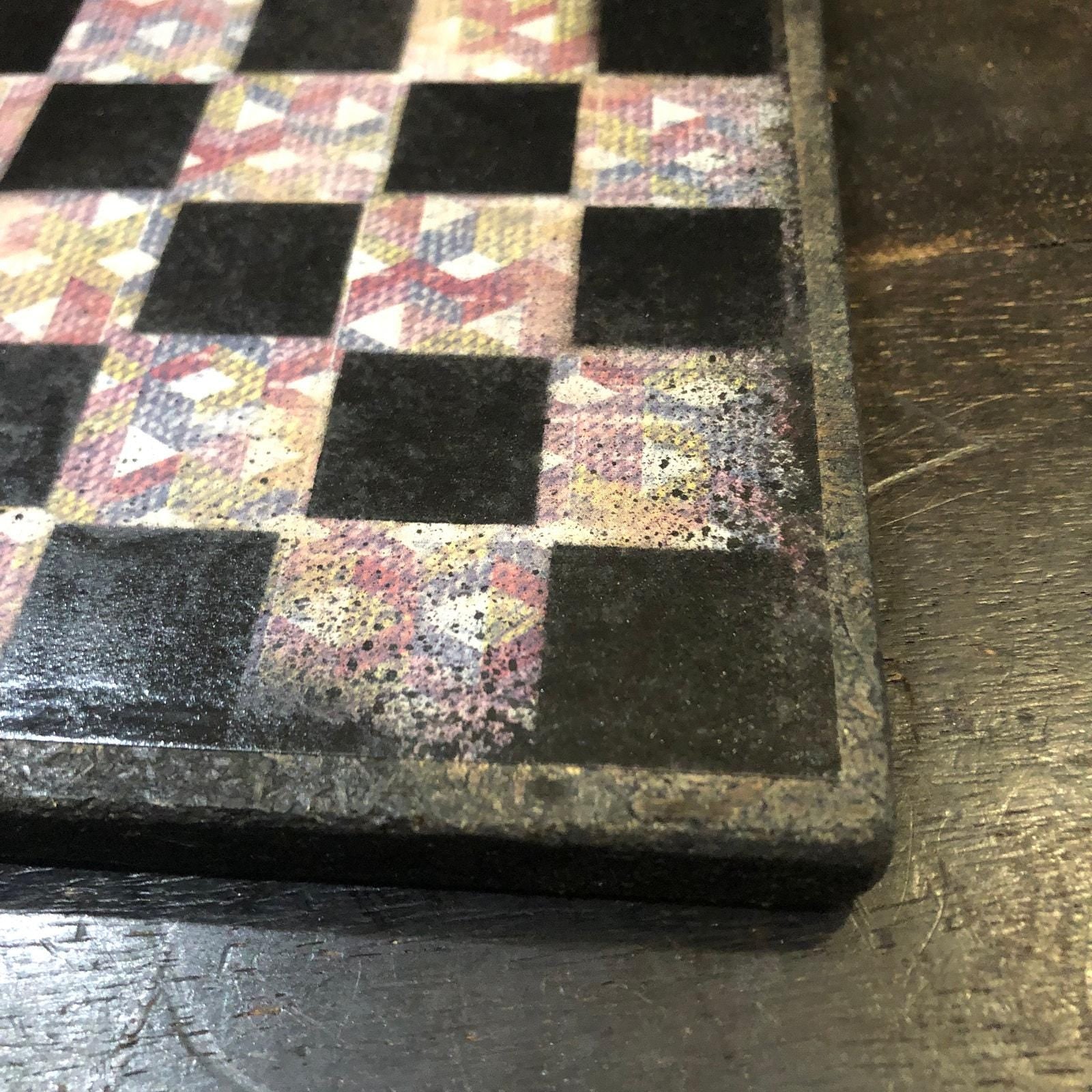 Introducing our exclusive Handcrafted Wooden Chess Set, meticulously designed with precision and care. Measuring 8 inches by 8 inches, this chess set features a beautifully painted particle board layered with a sheet of scrapbook paper board that doubles as a work of art. Each set is a unique, one-of-a-kind creation, crafted by hand to ensure that no two sets are alike. Elevate your gaming experience with this exceptional chess set that combines vibrant design with the touch of artisan craftsmanship. This chess board comes with chess pieces and is handcrafted as a one of one