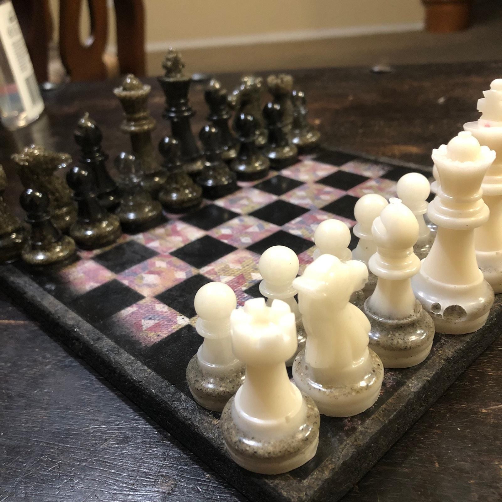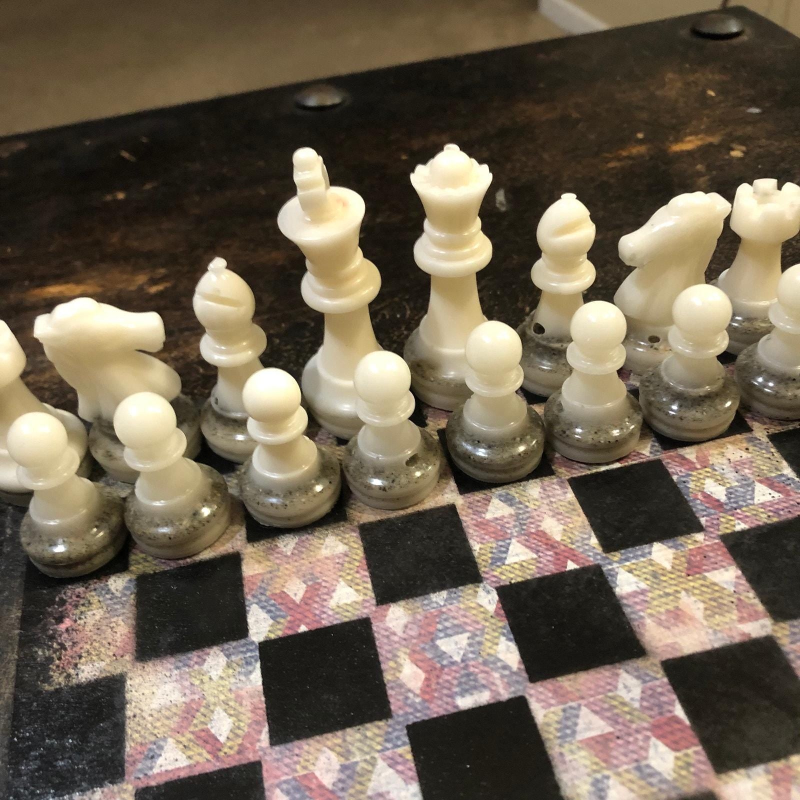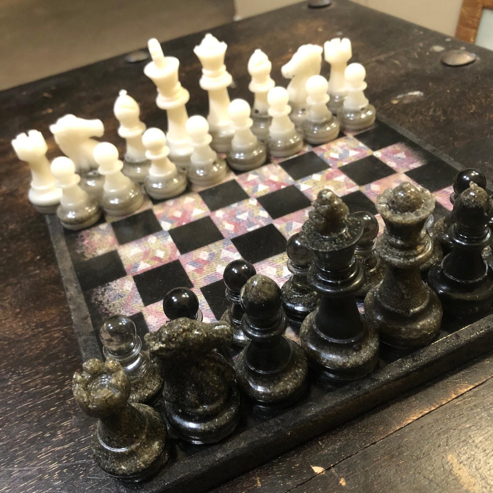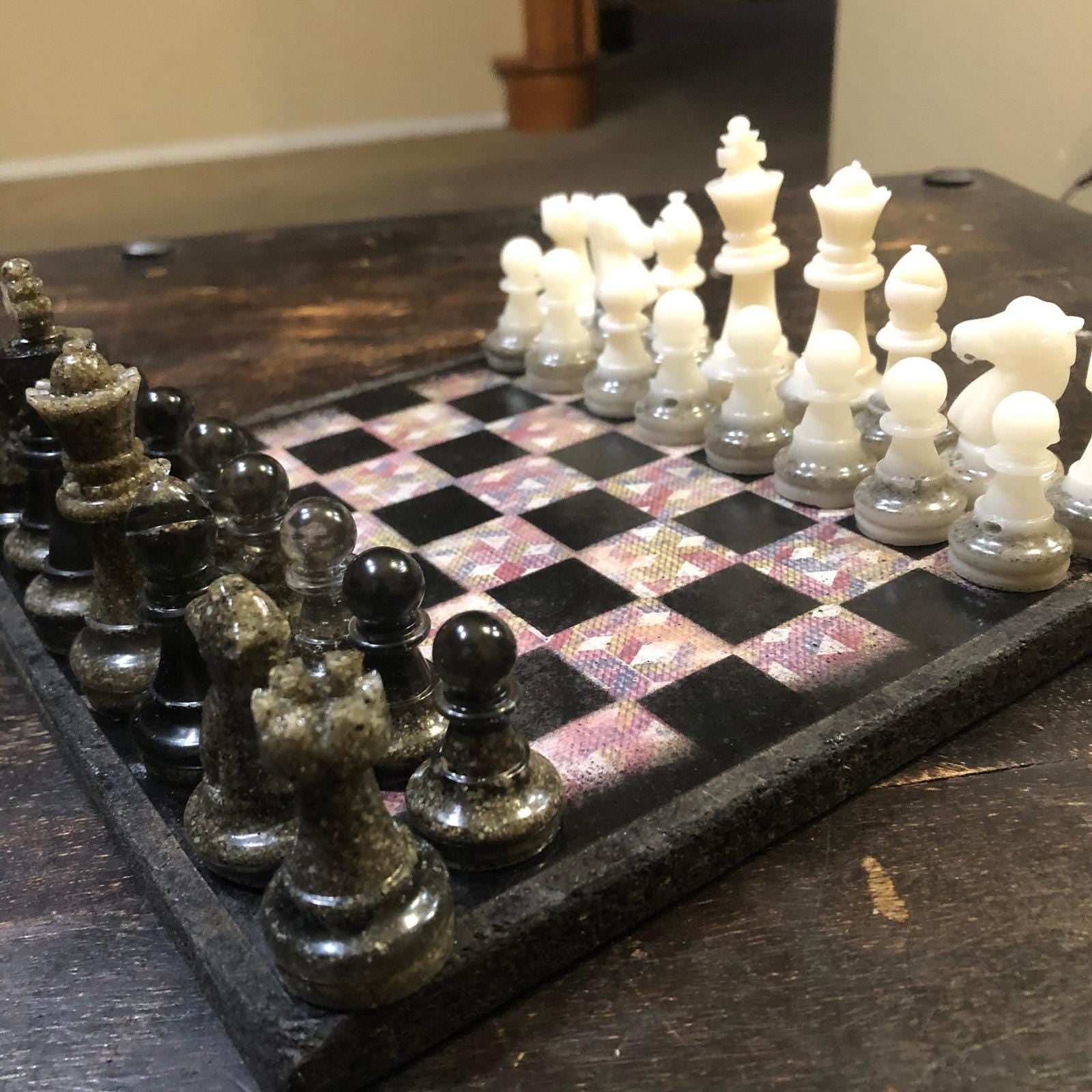 Introducing our exclusive Handcrafted Wooden Chess Set, meticulously designed with precision and care. Measuring 8 inches by 8 inches, this chess set features a beautifully painted particle board layered with a sheet of scrapbook paper board that doubles as a work of art. Each set is a unique, one-of-a-kind creation, crafted by hand to ensure that no two sets are alike. Elevate your gaming experience with this exceptional chess set that combines vibrant design with the touch of artisan craftsmanship. This chess board comes with chess pieces and is handcrafted as a one of one
