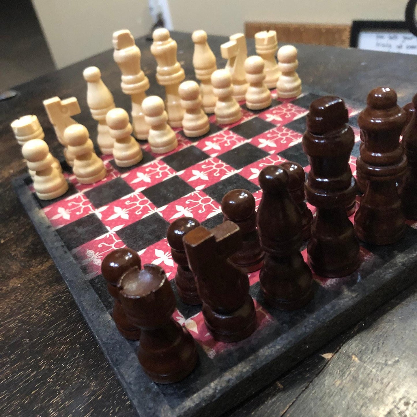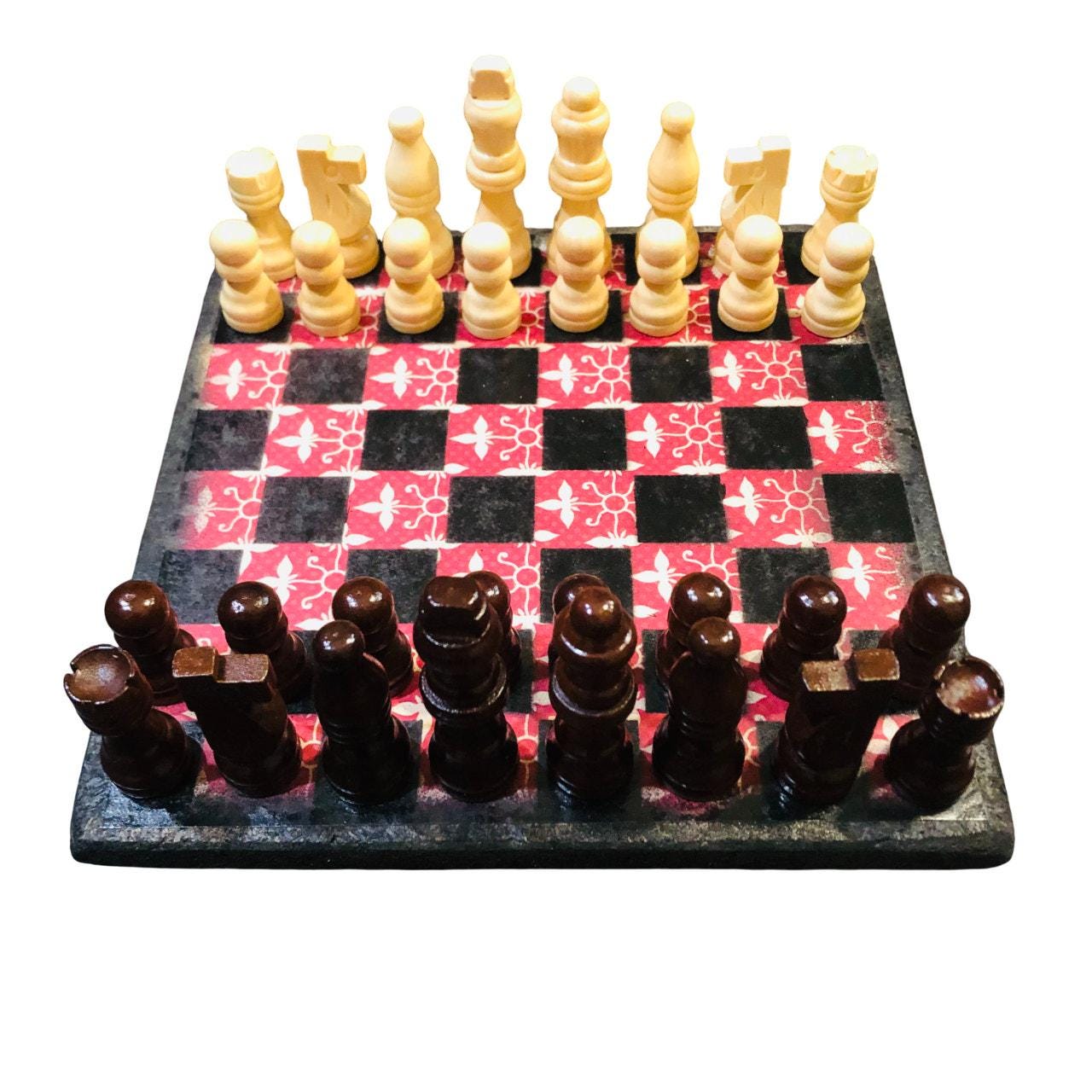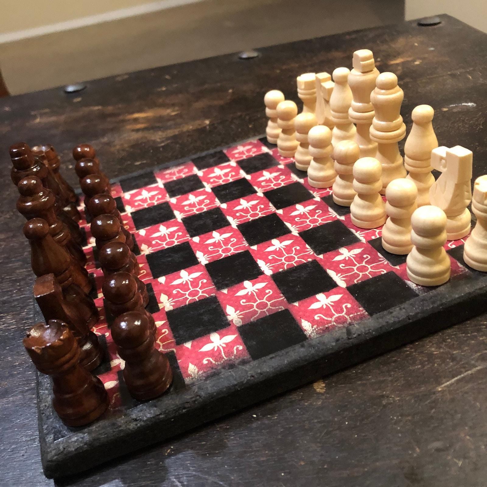 Introducing our exclusive Handcrafted Wooden Chess Set, meticulously designed with precision and care. Measuring 8 inches by 8 inches, this chess set features a beautifully painted particle board layered with a sheet of scrapbook paper board that doubles as a work of art. Each set is a unique, one-of-a-kind creation, crafted by hand to ensure that no two sets are alike. Elevate your gaming experience with this exceptional chess set that combines vibrant design with the touch of artisan craftsmanship. This chess board comes with chess pieces and is handcrafted as a one of one