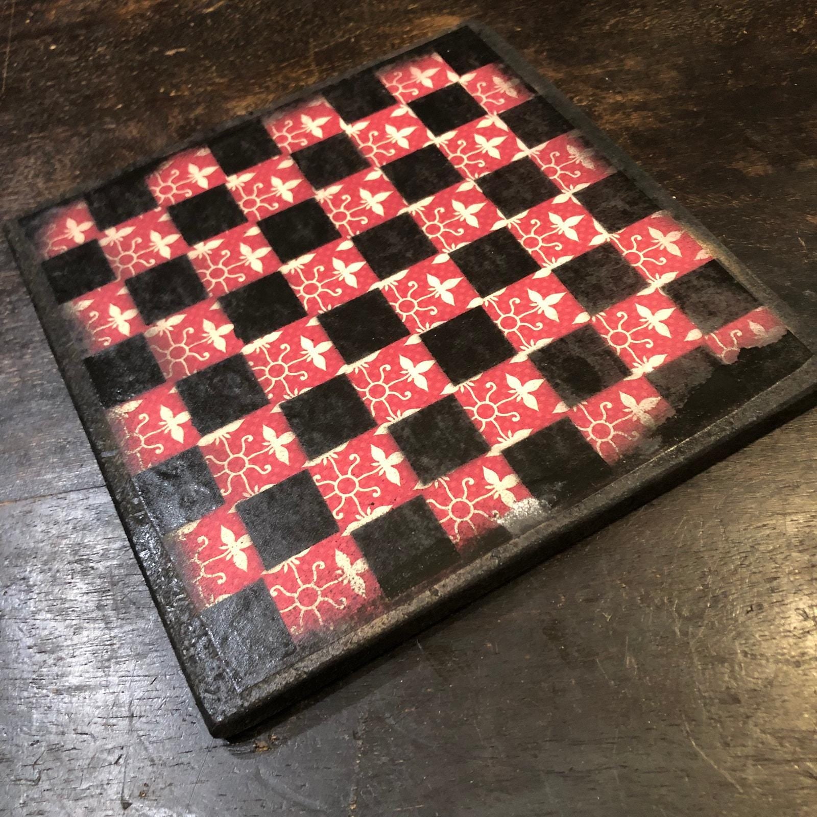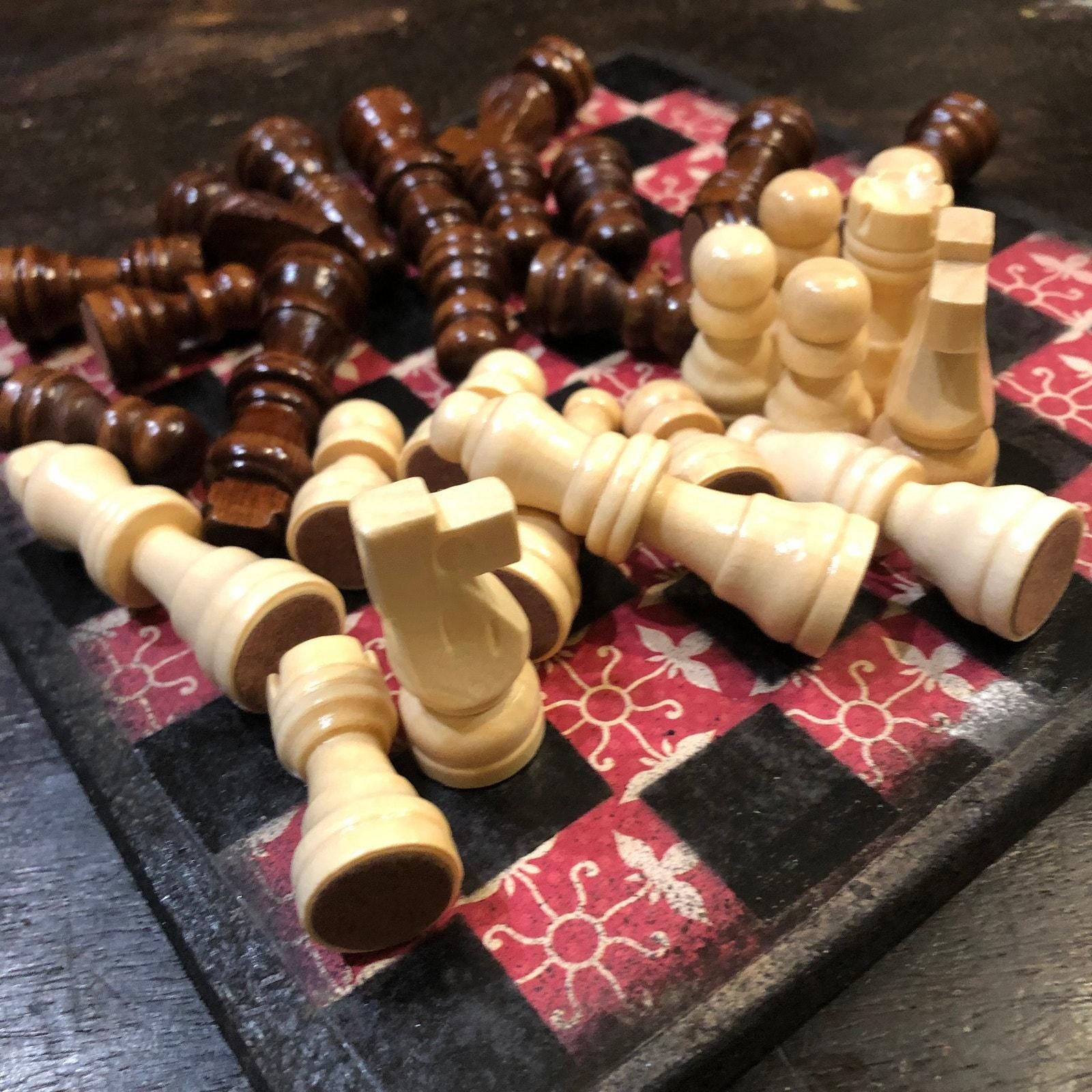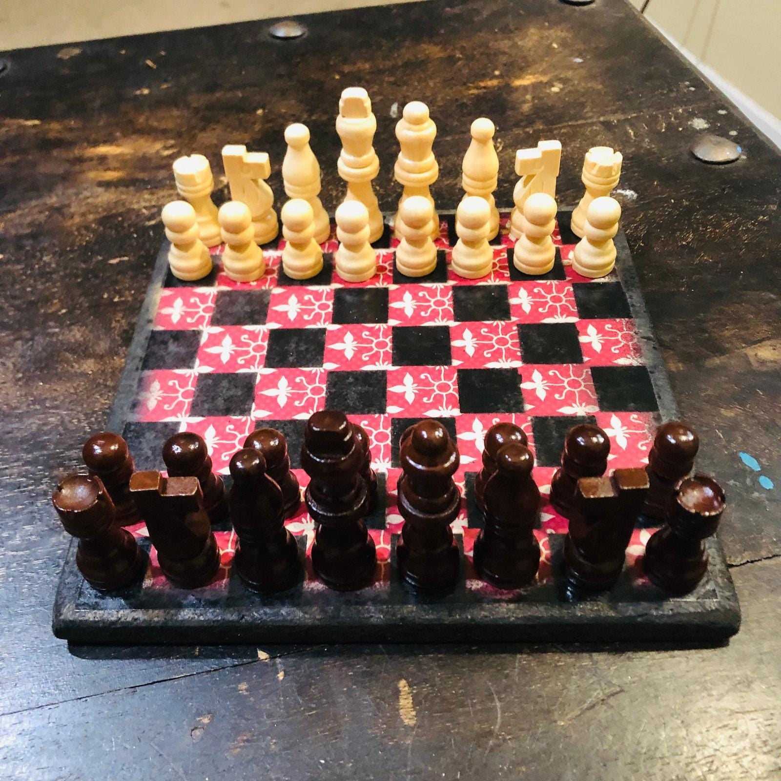 Introducing our exclusive Handcrafted Wooden Chess Set, meticulously designed with precision and care. Measuring 8 inches by 8 inches, this chess set features a beautifully painted particle board layered with a sheet of scrapbook paper board that doubles as a work of art. Each set is a unique, one-of-a-kind creation, crafted by hand to ensure that no two sets are alike. Elevate your gaming experience with this exceptional chess set that combines vibrant design with the touch of artisan craftsmanship. This chess board comes with chess pieces and is handcrafted as a one of one