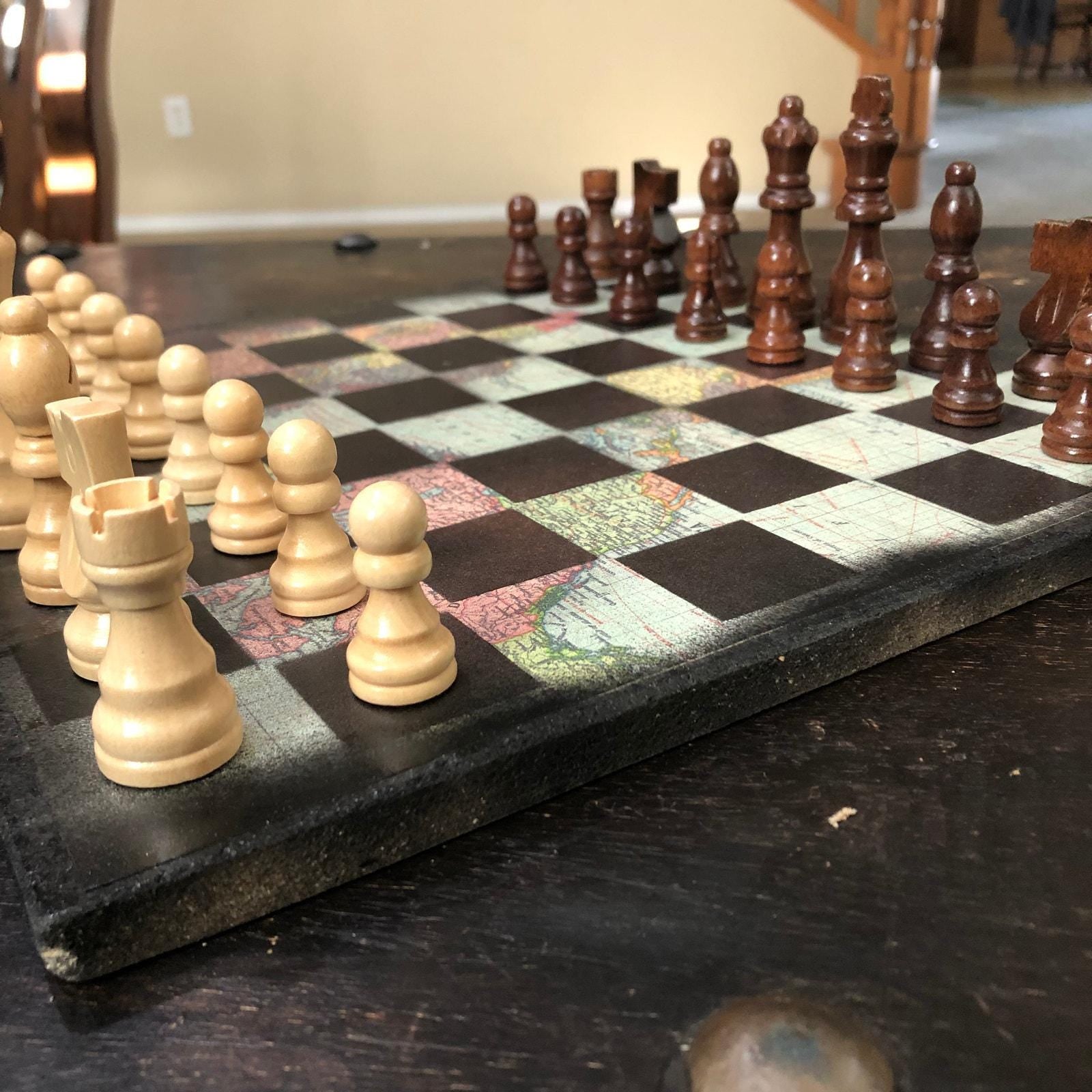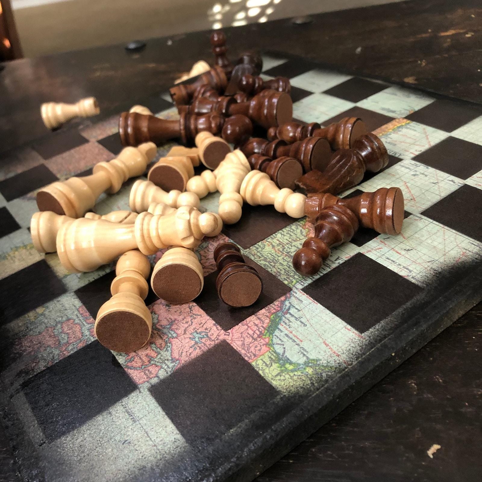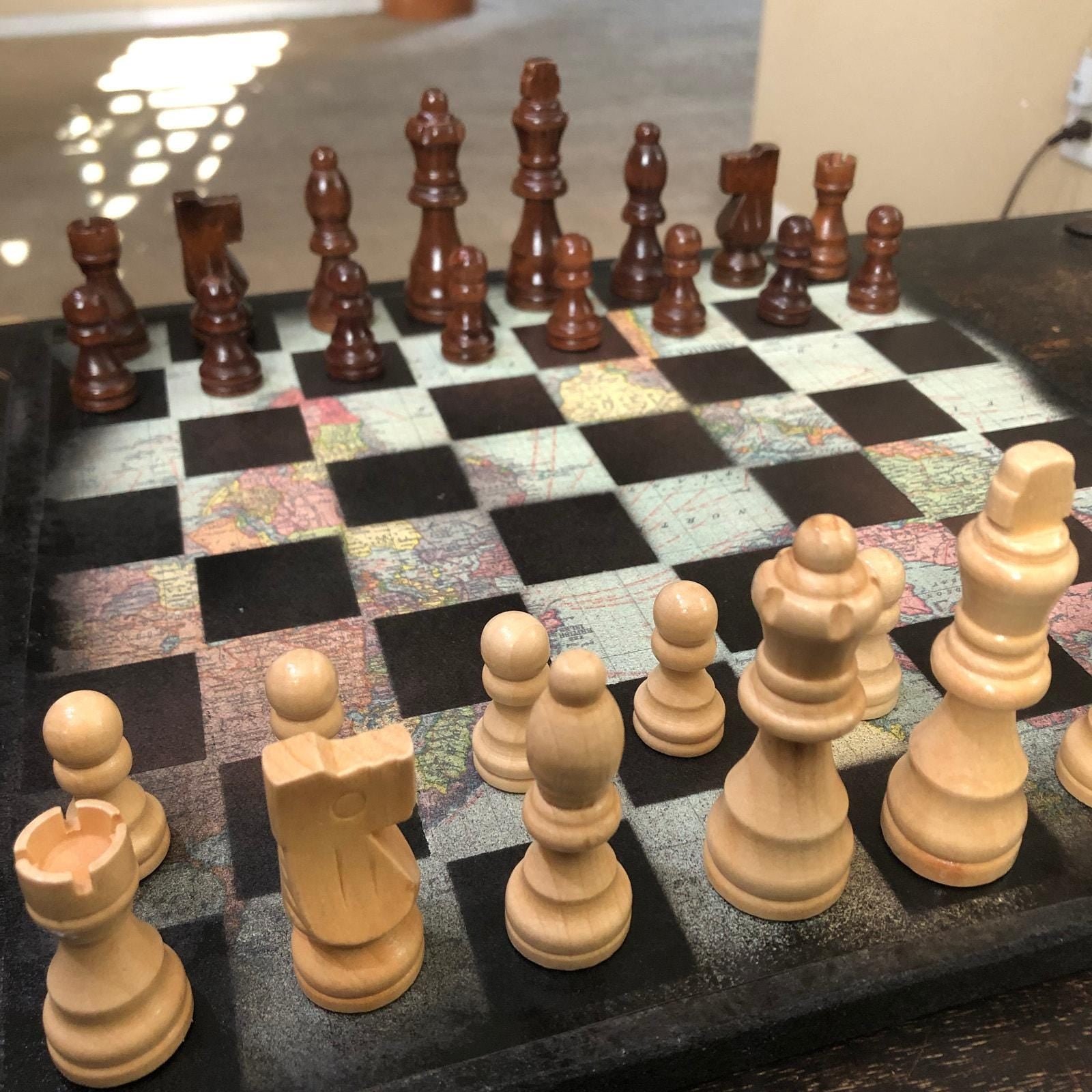 Introducing our exclusive Handcrafted Wooden Chess Set, meticulously designed with precision and care. Measuring 12 inches by 12 inches, this chess set features a beautifully painted particle board layered with a sheet of scrapbook paper board that doubles as a work of art. Each set is a unique, one-of-a-kind creation, crafted by hand to ensure that no two sets are alike. Elevate your gaming experience with this exceptional chess set that combines vibrant design with the touch of artisan craftsmanship. This chess board comes with chess pieces and is handcrafted as a one of one