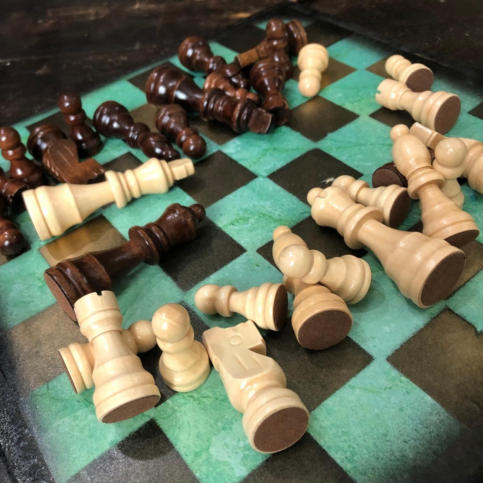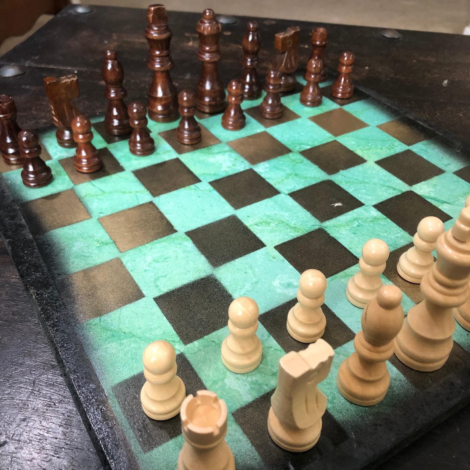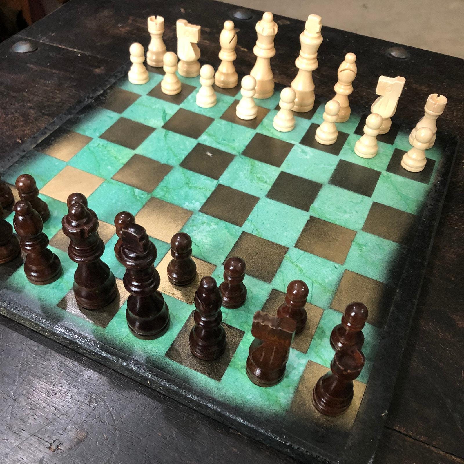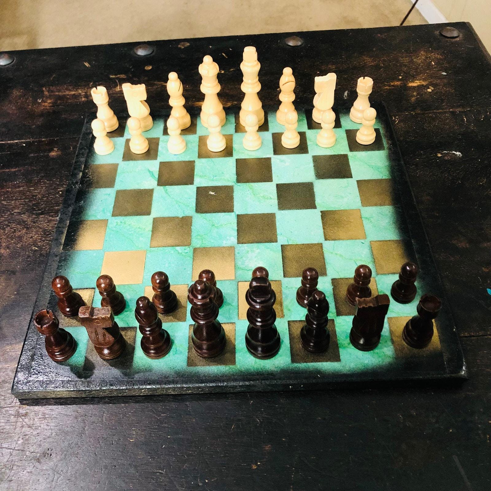 Introducing our exclusive Handcrafted Wooden Chess Set, meticulously designed with precision and care. Measuring 12 inches by 12 inches, this chess set features a beautifully painted particle board layered with a sheet of scrapbook paper board that doubles as a work of art. Each set is a unique, one-of-a-kind creation, crafted by hand to ensure that no two sets are alike. Elevate your gaming experience with this exceptional chess set that combines vibrant design with the touch of artisan craftsmanship. This chess board comes with chess pieces and is handcrafted as a one of one
