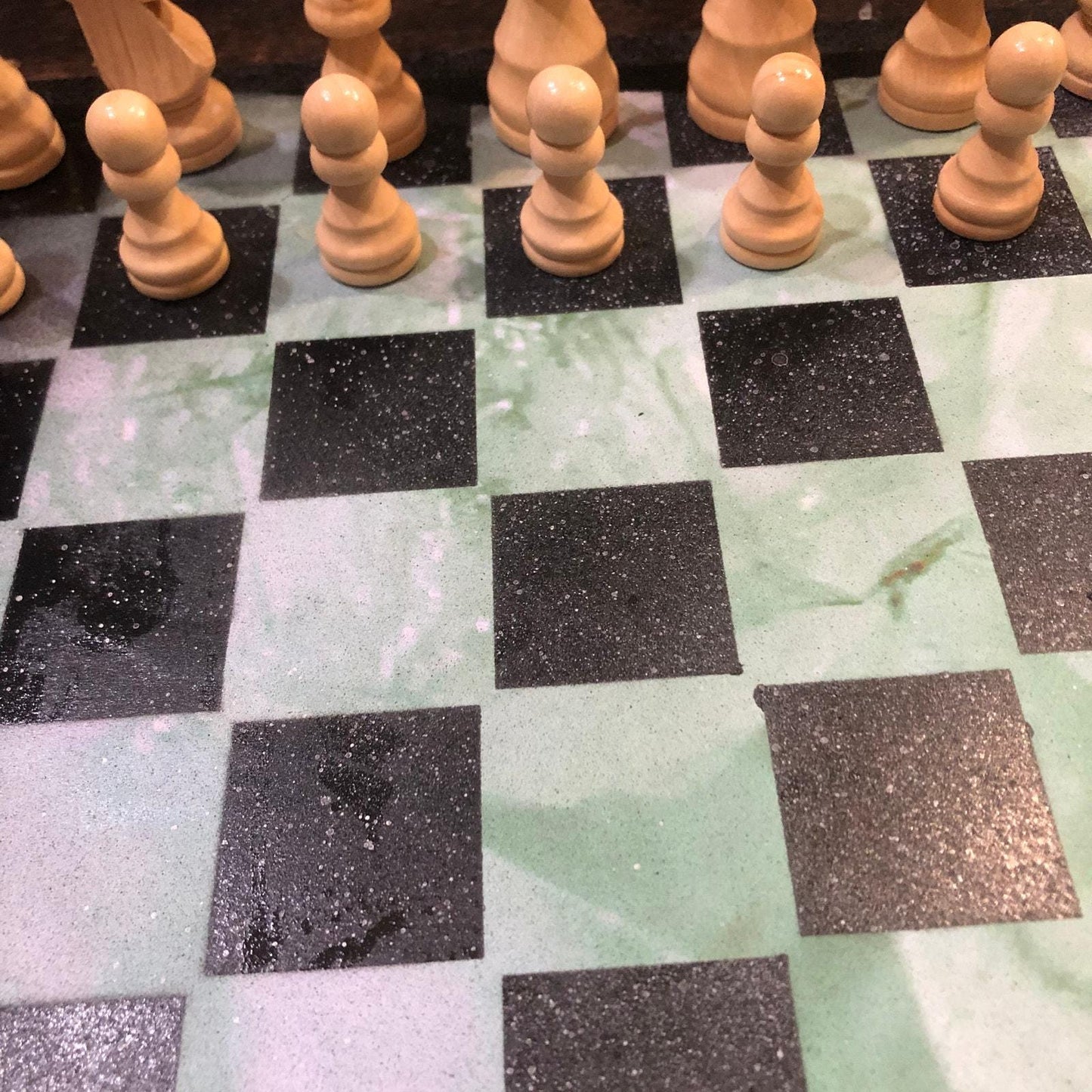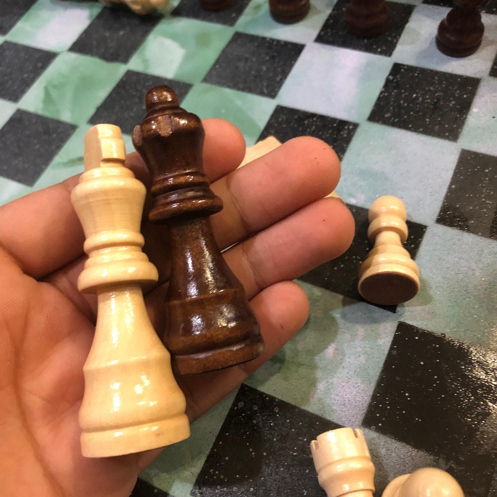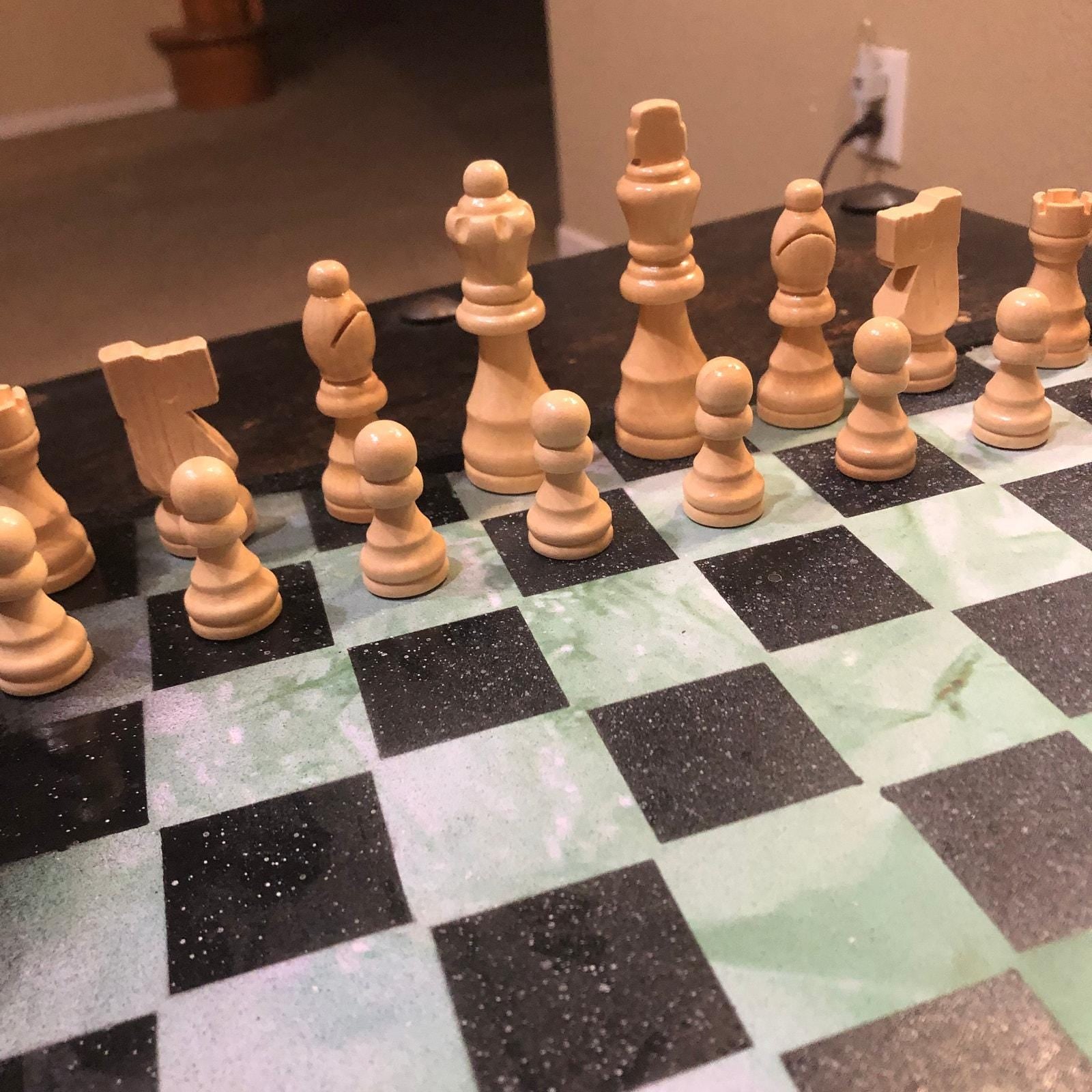 Introducing our exclusive Handcrafted Wooden Chess Set, meticulously designed with precision and care. Measuring 12 inches by 12 inches, this chess set features a beautifully painted particle board layered with a sheet of scrapbook paper board that doubles as a work of art. Each set is a unique, one-of-a-kind creation, crafted by hand to ensure that no two sets are alike. Elevate your gaming experience with this exceptional chess set that combines vibrant design with the touch of artisan craftsmanship. This chess board comes with chess pieces and is handcrafted as a one of one
