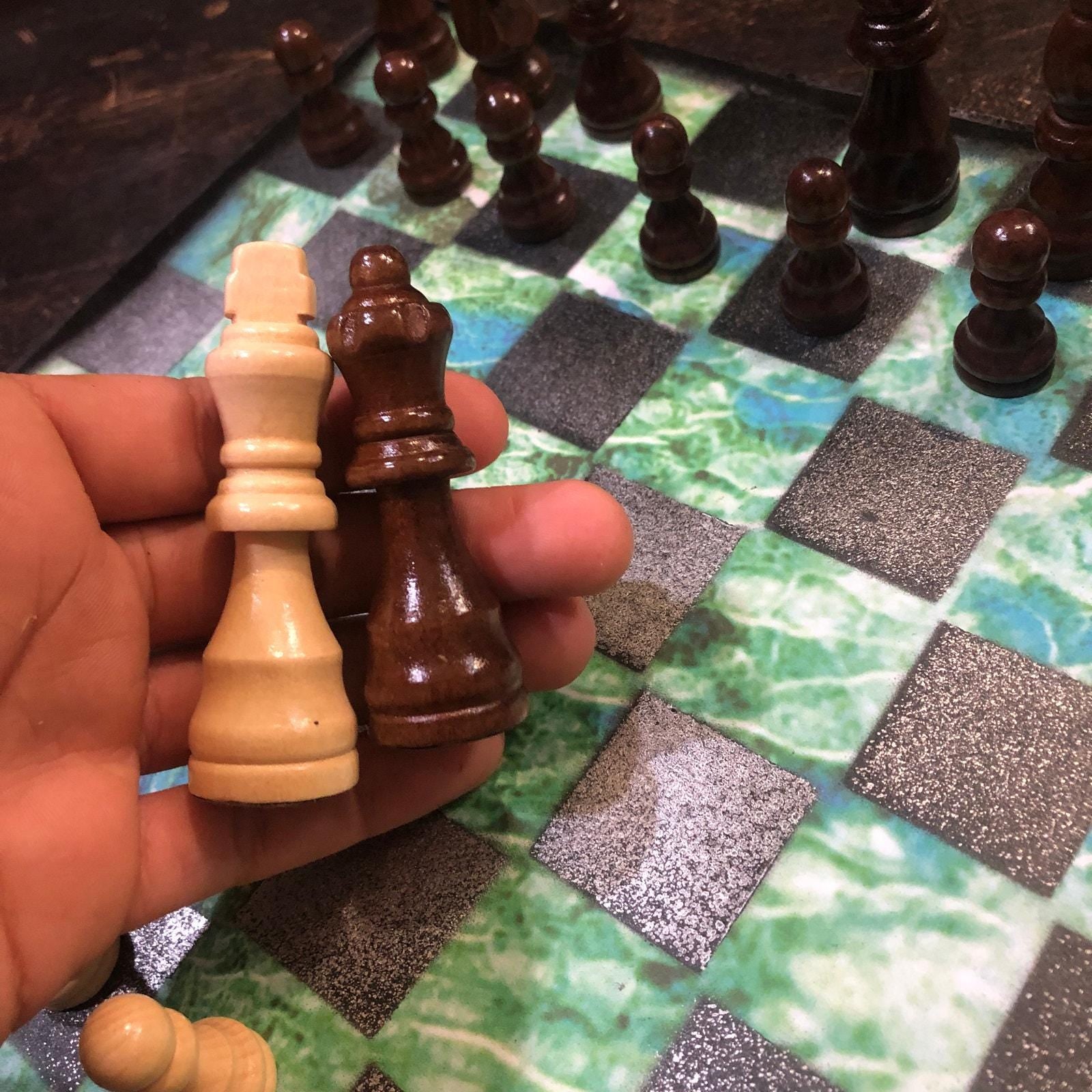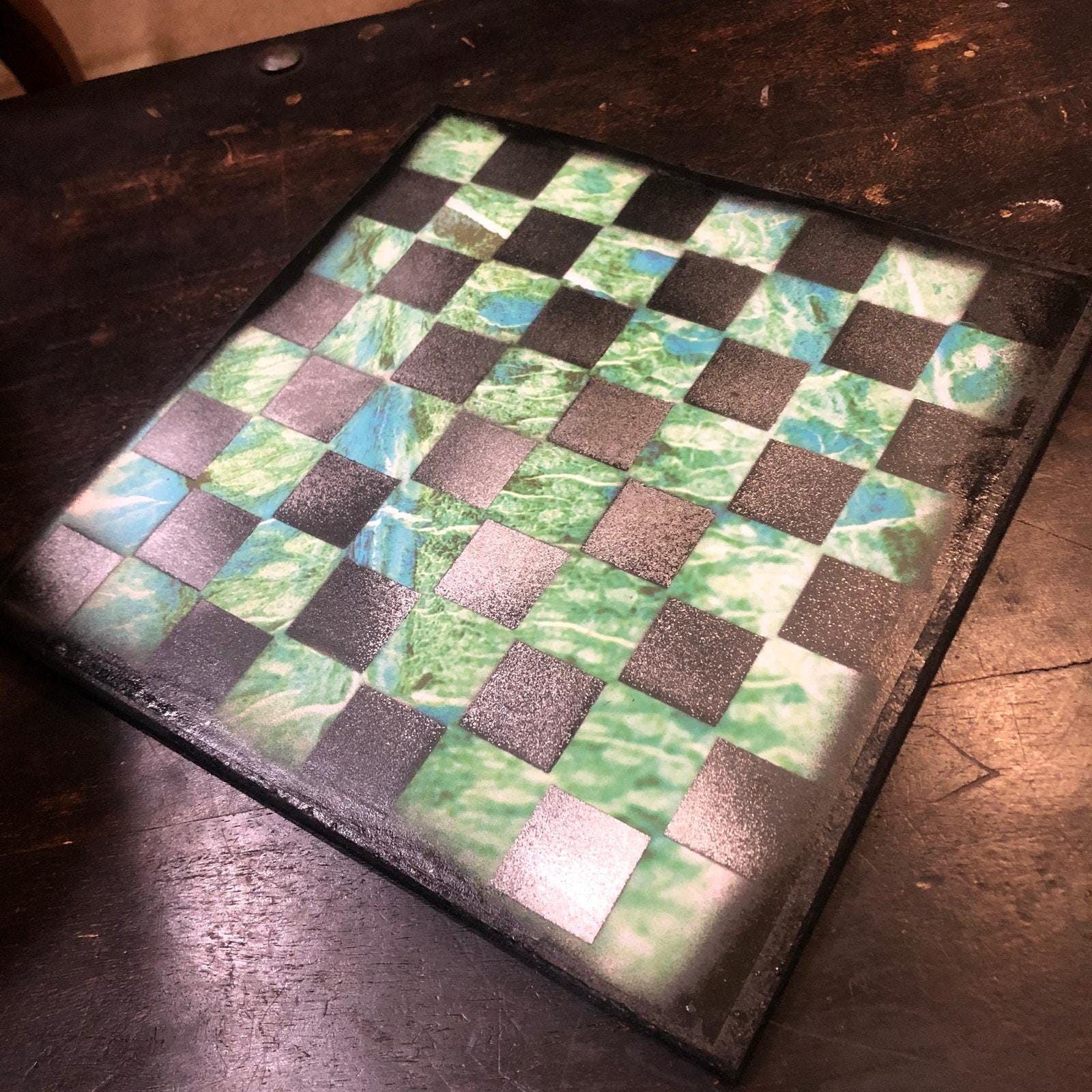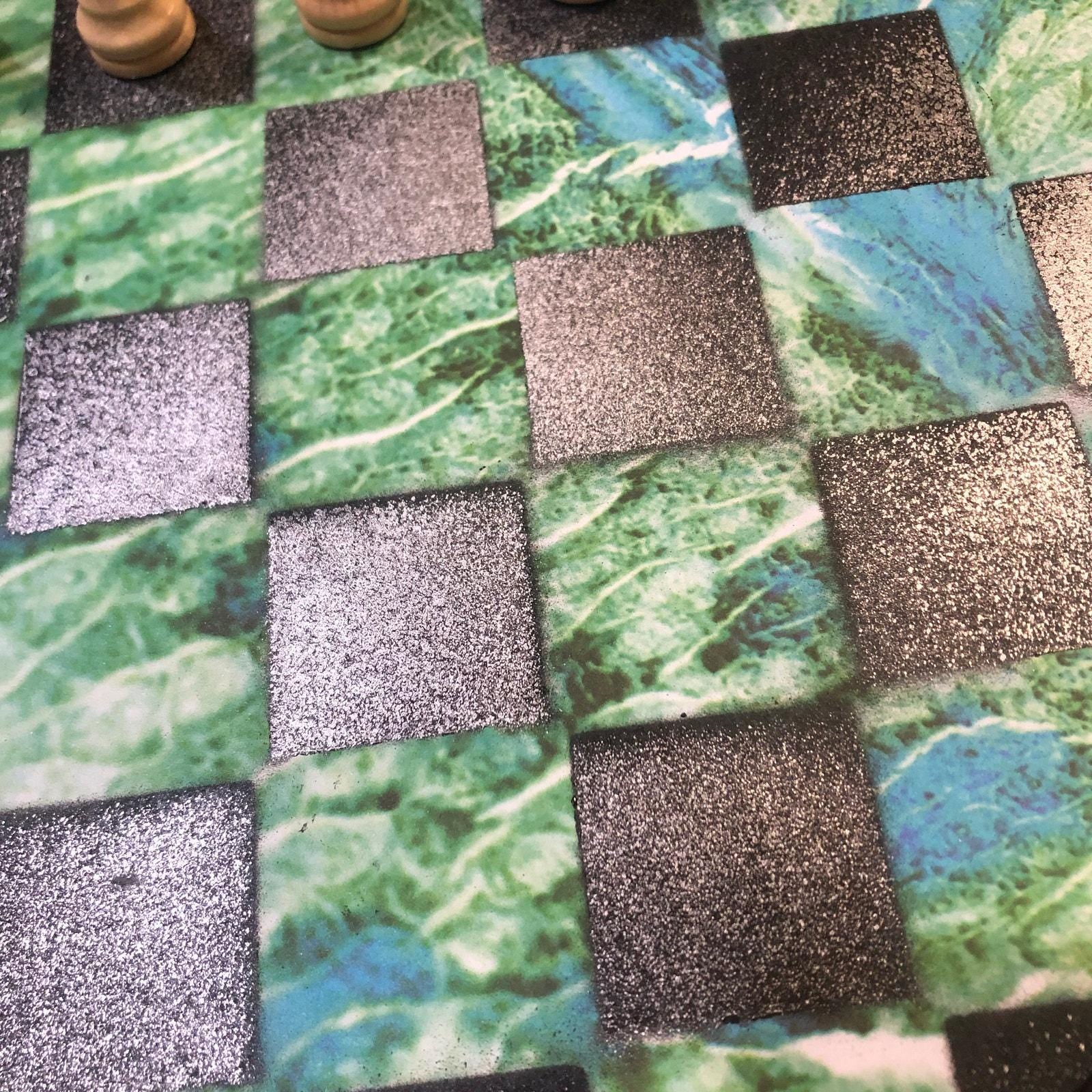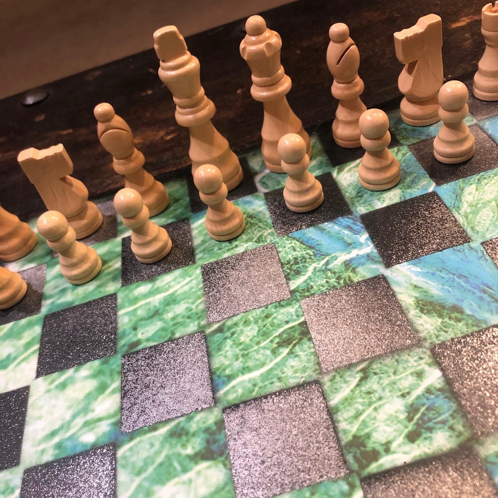 Introducing our exclusive Handcrafted Wooden Chess Set, meticulously designed with precision and care. Measuring 12 inches by 12 inches, this chess set features a beautifully painted particle board layered with a sheet of scrapbook paper board that doubles as a work of art. Each set is a unique, one-of-a-kind creation, crafted by hand to ensure that no two sets are alike. Elevate your gaming experience with this exceptional chess set that combines vibrant design with the touch of artisan craftsmanship. This chess board comes with chess pieces and is handcrafted as a one of one